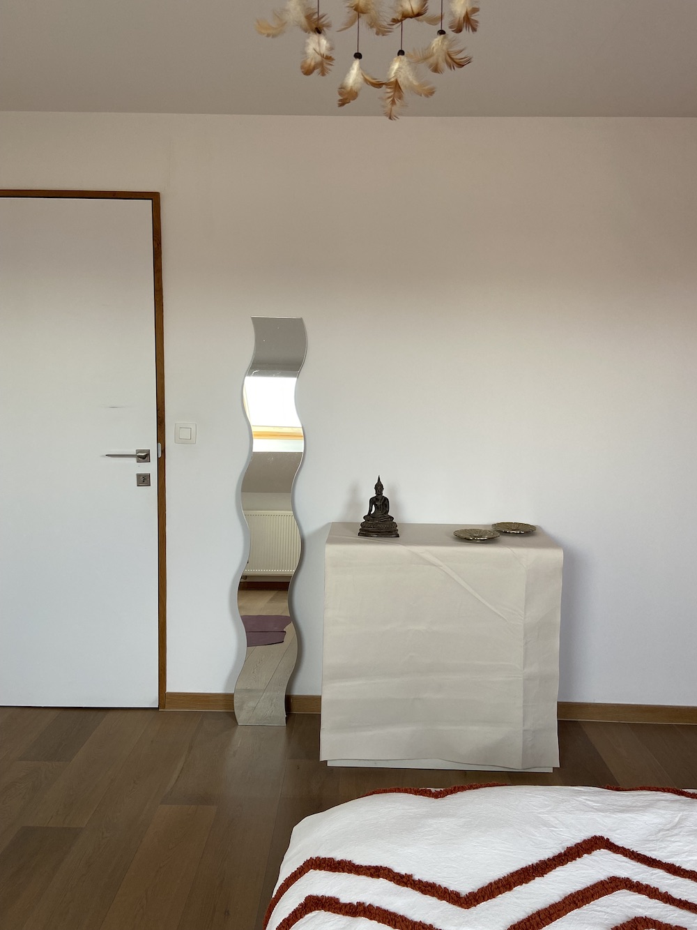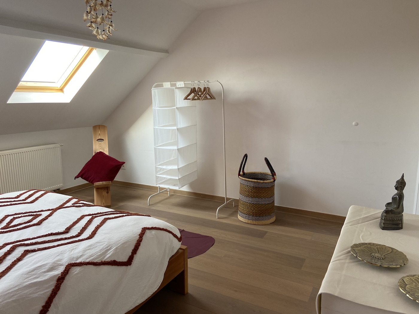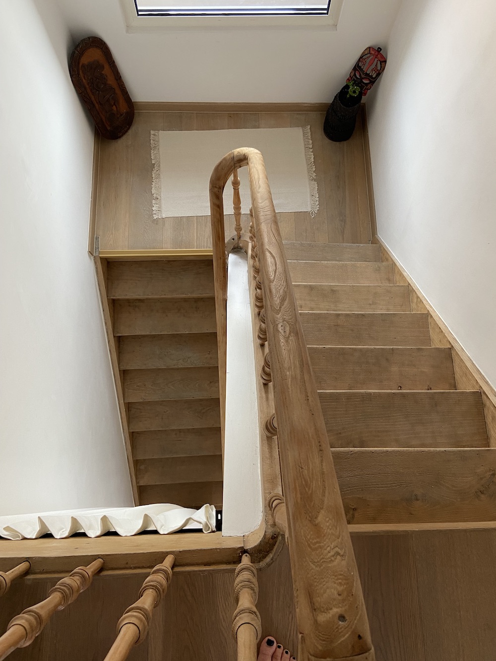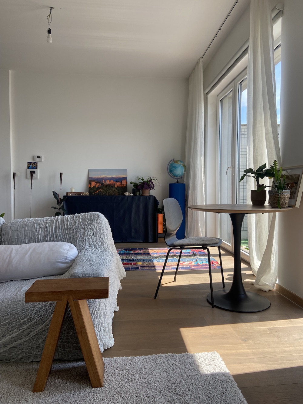 This bright, quiet sanctuary offers ample space to unwind and relax after a full day of sightseeing. The living space is versatile, with various tables and a dedicated desk, perfect for working or engaging in creative projects. You can practice yoga in a serene room or bask in the sunshine in the living room. On sunny days, open the big windows and enjoy the day on the balcony. The large kitchen is ideal for preparing your favorite meals, and the dinner table overlooking the park is perfect for evening conversations. The bedrooms and bathroom are situated upstairs, providing a peaceful retreat to wind down from the day.