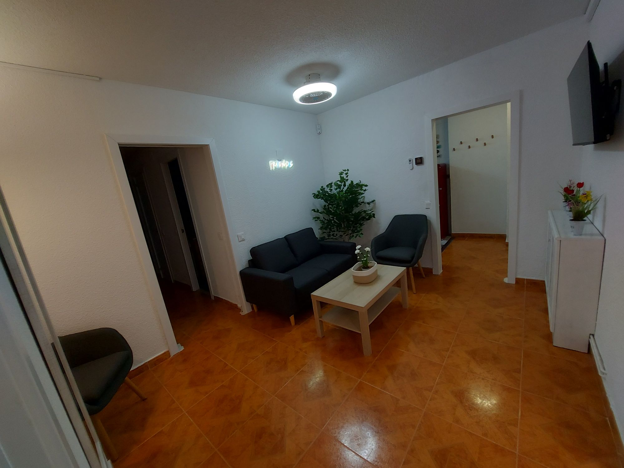 This fully furnished apartment Villaverde, offers a bright and modern living environment in the heart of Madrid. With 100 m² of flexible space, the layout includes four bedrooms with double beds. Ideal for professionals seeking room to live and work comfortably. The open living and dining area features large windows and wooden floors, creating an inviting atmosphere for relaxation or informal meetings. The brand-new kitchen is equipped with a dishwasher, microwave, oven, washing machine, and dryer, ensuring everyday convenience. Two bathrooms, each with both a shower and a bathtub, provide added comfort. Individual air-conditioning units in three of the bedrooms double as heating, allowing climate control year-round. Elevator access makes it easy to reach the first floor, and while there is no private parking, free on-street parking is readily available.