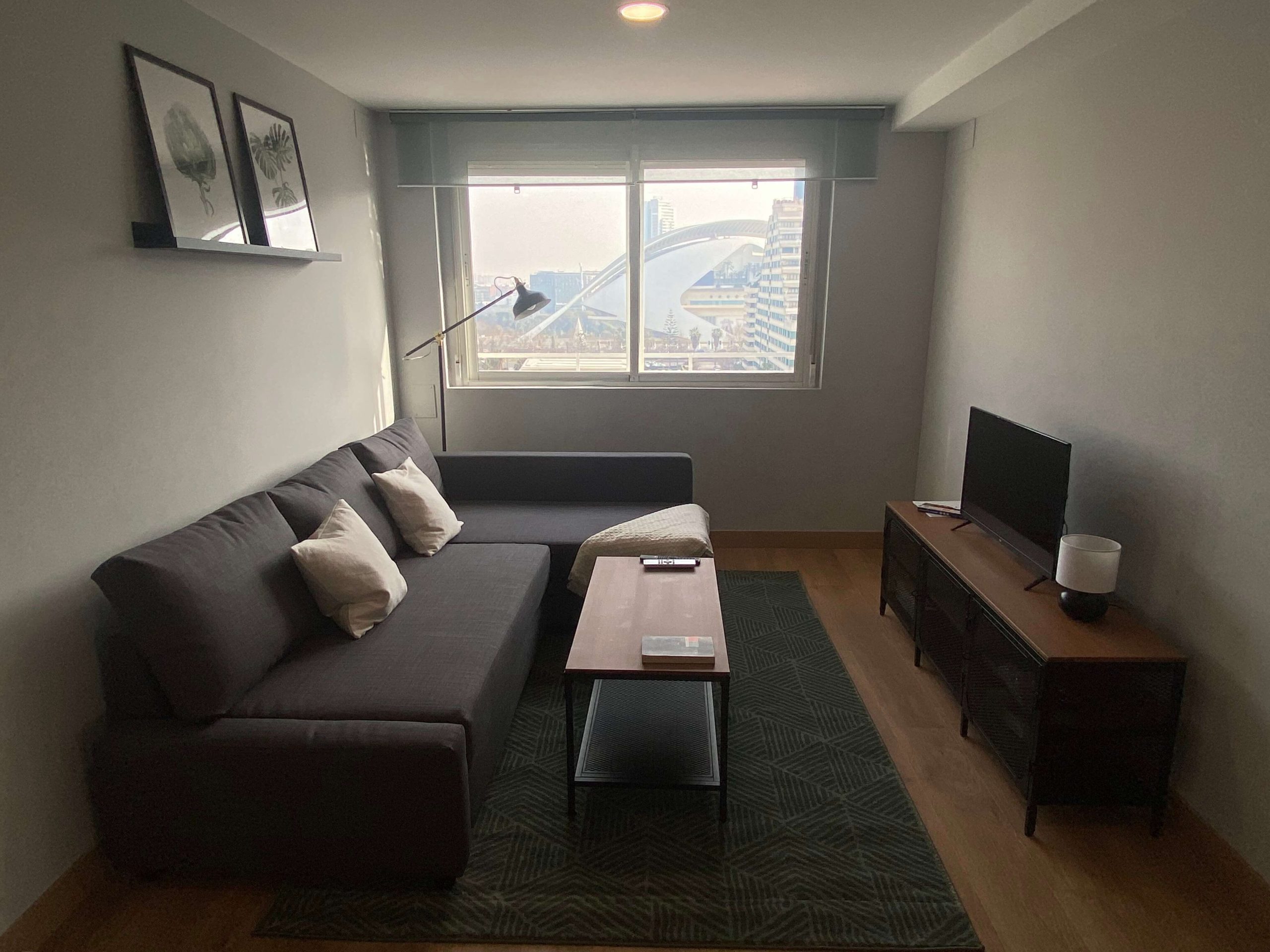 Experience sophisticated and comfortable living in this elegant apartment located on Ambrosio Huici in the vibrant city of Valencia, perfect for expats, business professionals, and digital nomads seeking temporary housing. This fully furnished residence boasts a stylish and open-concept layout, featuring a spacious living and dining area seamlessly connected to a modern kitchen. Enjoy a direct view of the iconic City of Arts and Sciences, creating a stunning backdrop for your daily life. The apartment includes a large double bedroom with a dedicated desk, ideal for productivity, and two individual bedrooms with desks, perfect for accommodating team members or guests. The modern bathroom is equipped with a sleek shower, and the convenience of a washing machine located within the bathroom adds to the functionality of this space. Additional amenities such as air conditioning in the living room, a flat-screen TV, and a kitchen bar with two stools enhance your living experience. With flexible lease terms ranging from 1 to 11 months, this property is tailored to meet your relocation needs with ease.