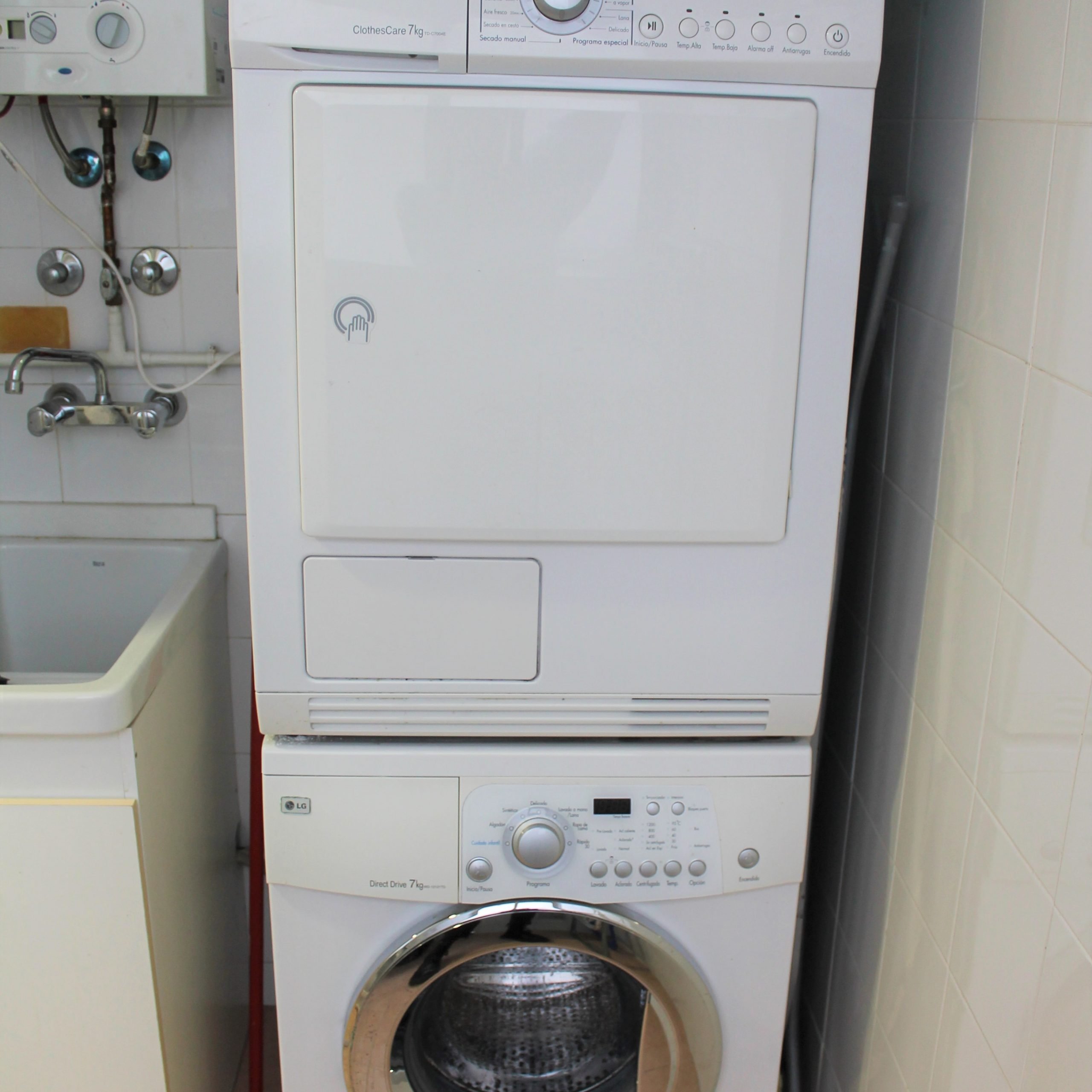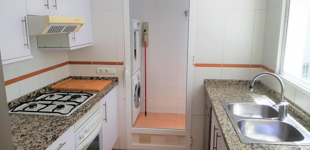 Separate from the living room you have a nicely equipped kitchen with ample working space and all the necessary equipment to cook some nice family meals. No worries about the dishes because of the dishwasher that comes with the apartment. Adjacent to the kitchen, you will find the laundry room that comes with a large washer and dryer.