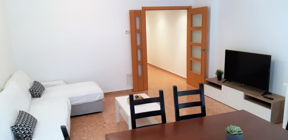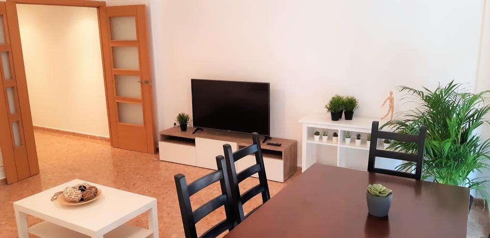 Bernia is a large expat apartment for rent in Valencia. It is a furnished 3 bedroom and 2 bathroom spacious expat apartment in the neighborhood of En Cortes. This apartment is truly a unicorn for expat families. This apartment can easily offer a large family or large group a comfortable stay for a longer period in Valencia. The apartment is unique because it comes with a parking spot in the building which makes it perfect if you need to go to work by car or you plan to explore outside of Valencia. So, forget about the headaches of losing up to an hour to find parking.