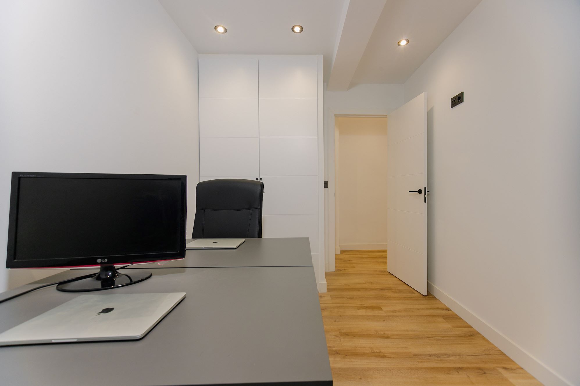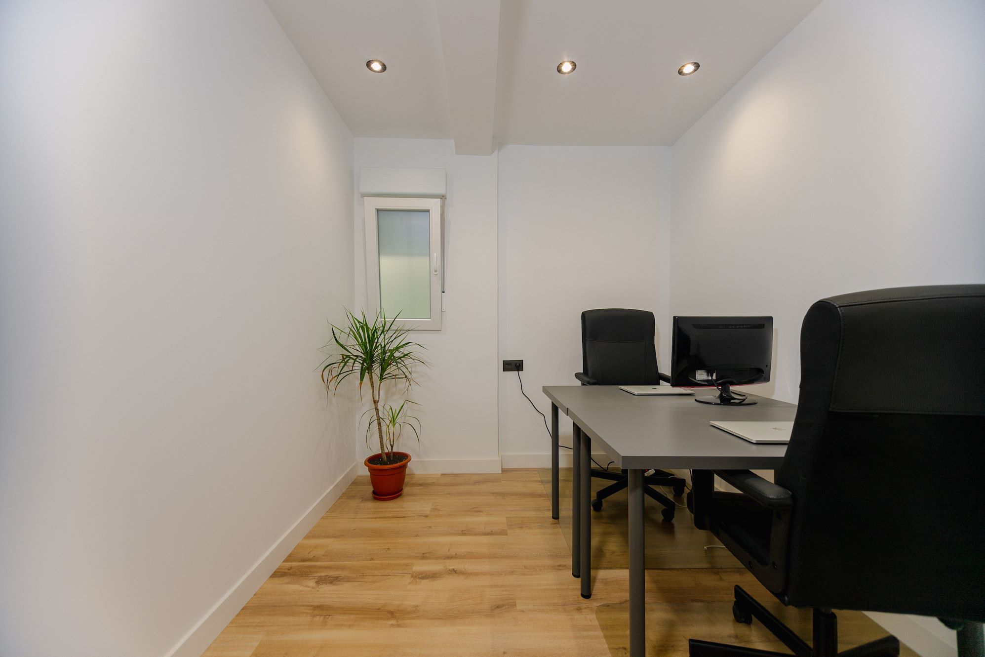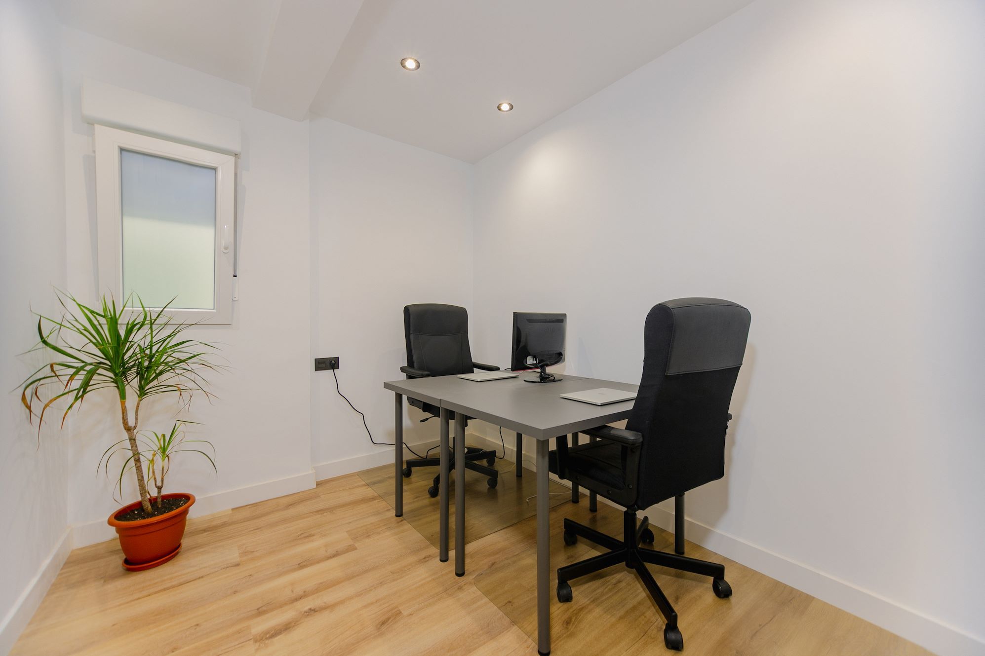 - Office space with two desks and chairs