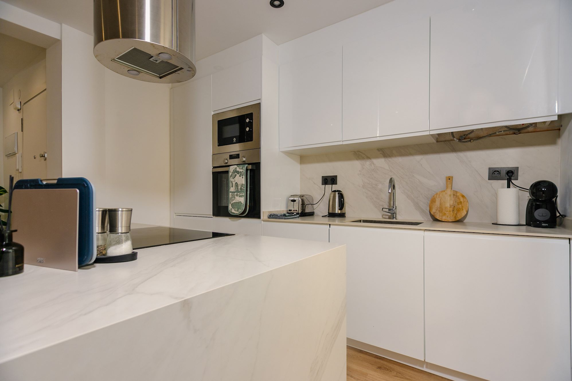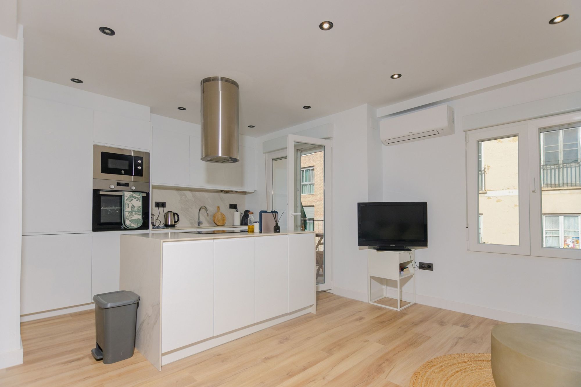 This apartment in the Monteolivete neighborhood is ideal for expats, business professionals, and digital nomads looking for a modern, fully furnished living space during their temporary stay in Valencia. Located just a 10-minute walk from Ruzafa and the City of Arts and Sciences, this apartment offers the perfect blend of convenience and tranquility. It features a spacious and bright living area with a central island in the kitchen, creating a welcoming atmosphere for relaxation and productivity. The apartment also includes a dedicated office space with two desks and chairs, ideal for those working remotely. With modern furnishings and high-end amenities, this property ensures comfort for those relocating to the city.
