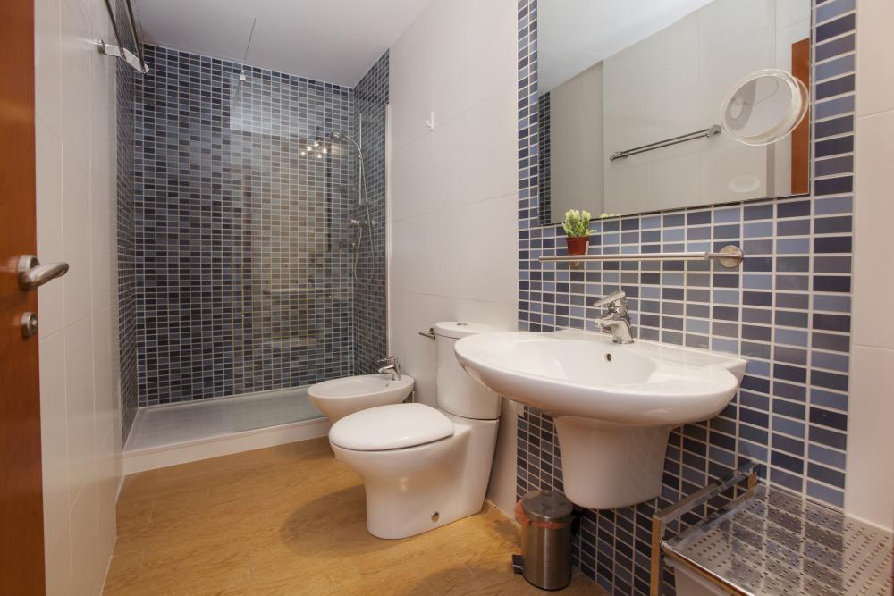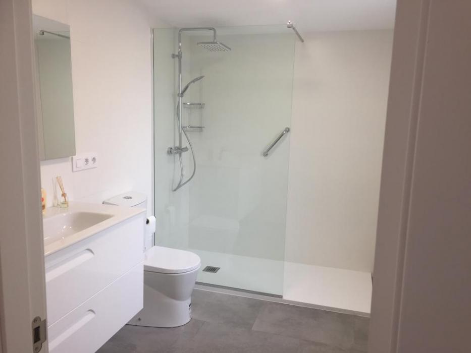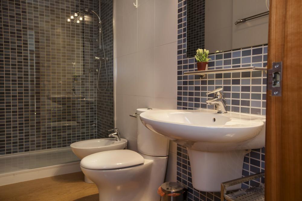 While on the second floor the bedroom has the bathroom en-suite, the downstairs bathroom is just across the hall. Both bathrooms have a sink, toilet and walk-in shower. This is a unique and spacious apartment for rent in Valencia.