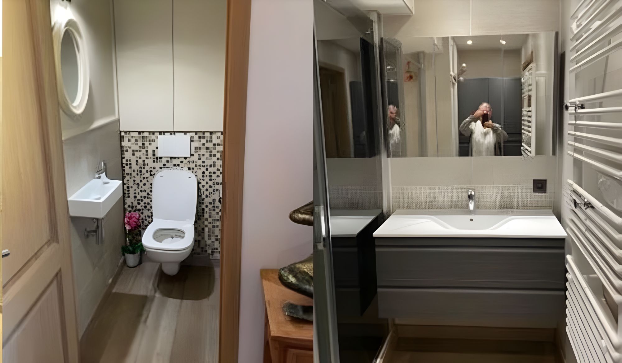 - Modern Bathroom: The luxurious bathroom includes a spacious rain shower for a refreshing experience. The toilet is located in a separate room for added convenience.