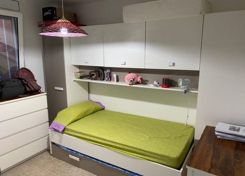 Badalona is a duplex for rent near Barcelona, furnished apartment for rent in Badalona. It has two bedrooms. One of the bedrooms has a double bed. The second bedroom has a trundle bed. The master bedroom comes with a desk, closet and access to the balcony. The bathroom has a shower, sinks and, of course, a toilet.