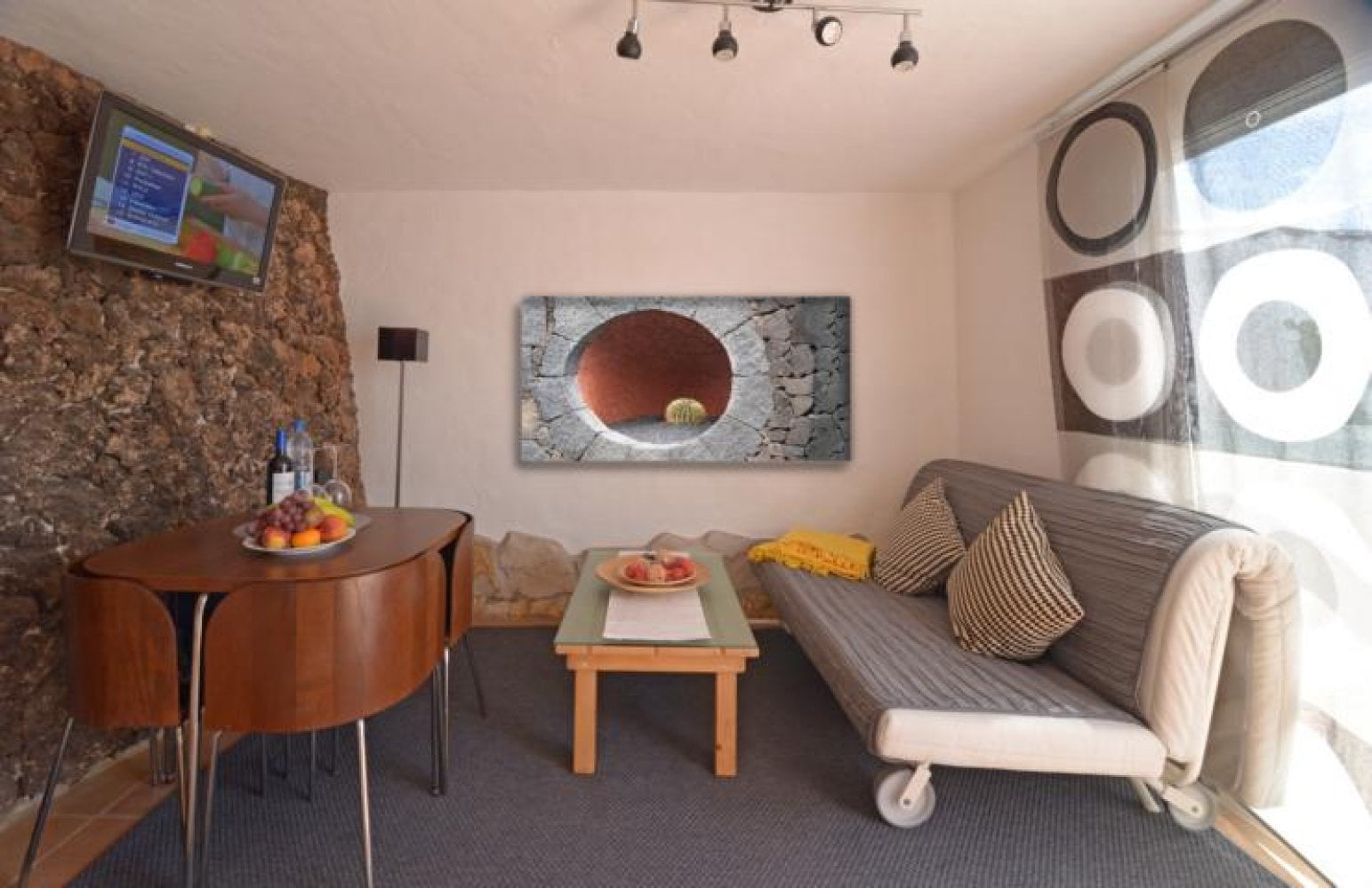 The living room is lovely furnished and bright. You will also find a flat screen TV here, which is ideal to relax and watch your favourite series or movies. From the living room you have direct access to the beautiful terrace. This terrace comes with a table, as mentioned before, and sunbeds. This is perfect to enjoy the perfect climate of Fuerteventura.