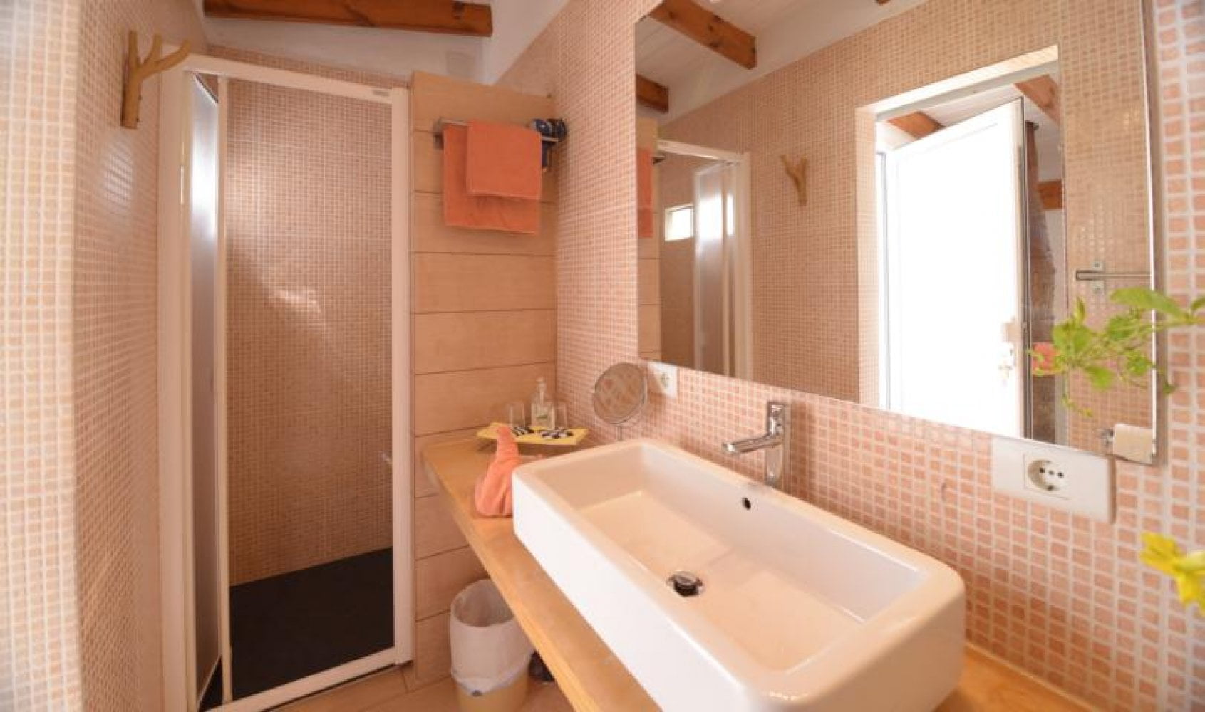 The kitchen of this place is open and fully equipped with everything that you may need during your stay here. Time to bring out your cooking skills and indulge yourself in the Spanish kitchen! Afterwards you can eat your home cooked meals at the dining table that can sit up to four people. You can choose between the table in the dining area or the table on the terrace, where you can eat your meals with a stunning view.