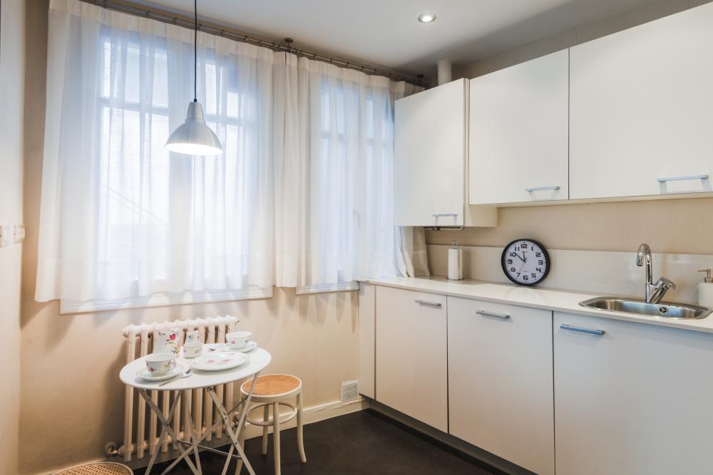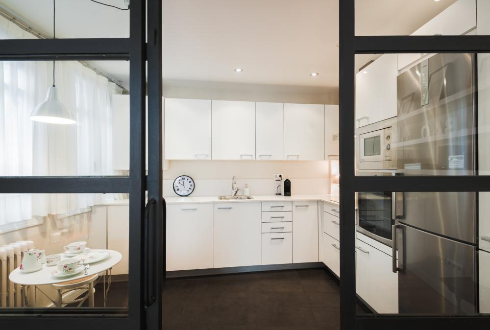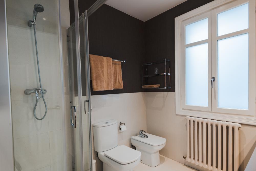 Moving on to the kitchen: complete with all the utensils, pots and pans, the fully equipped kitchen will provide all the tools you need for your dinner parties. The Nespresso machine is there to help you make a cup of gourmet coffee on those Monday mornings. In the kitchen, and located throughout the entirety of the flat, there are radiators to keep it nice and warm on those cold Basque winter mornings and evenings.