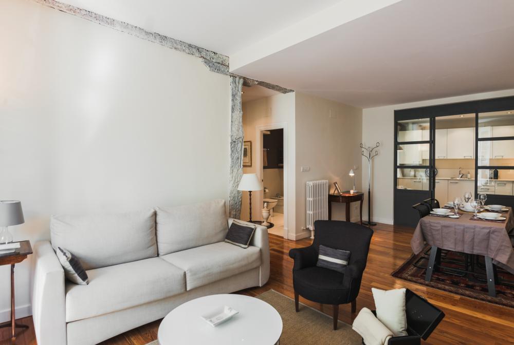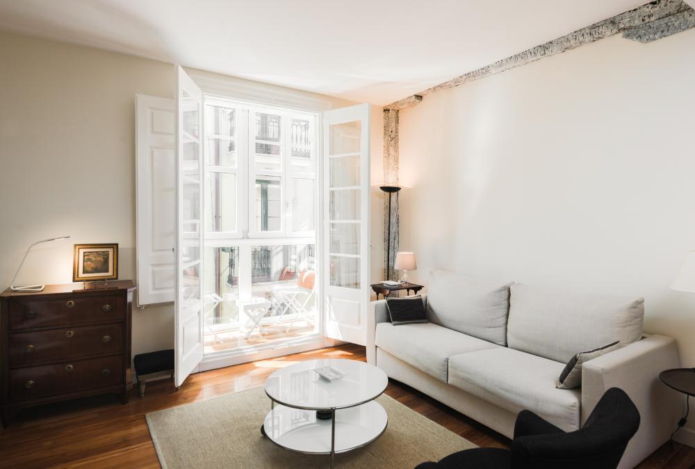 Jardines is a Bilbao expat luxury rental apartment. Newly renovated and full of bright natural sunlight, this southern-facing flat is an expat’s dream home, whether you are looking for a short or mid-term stay. The elegant, neutral coloured furniture can be easily decorated to call this house a home. Appropriately called Jardines, which means garden, the apartment gives a cosy home feel while being in the heart of a legendary city. Located in Casco Viejo, the old medieval centre of Bilbao, the narrow streets that lead up to the front door are full of local shops and traditional Basque taverns.