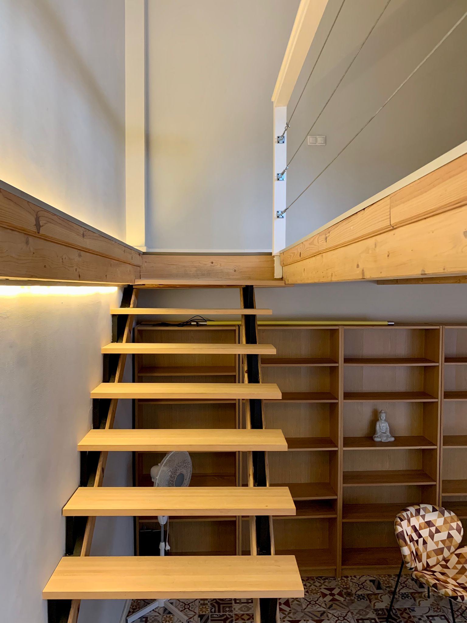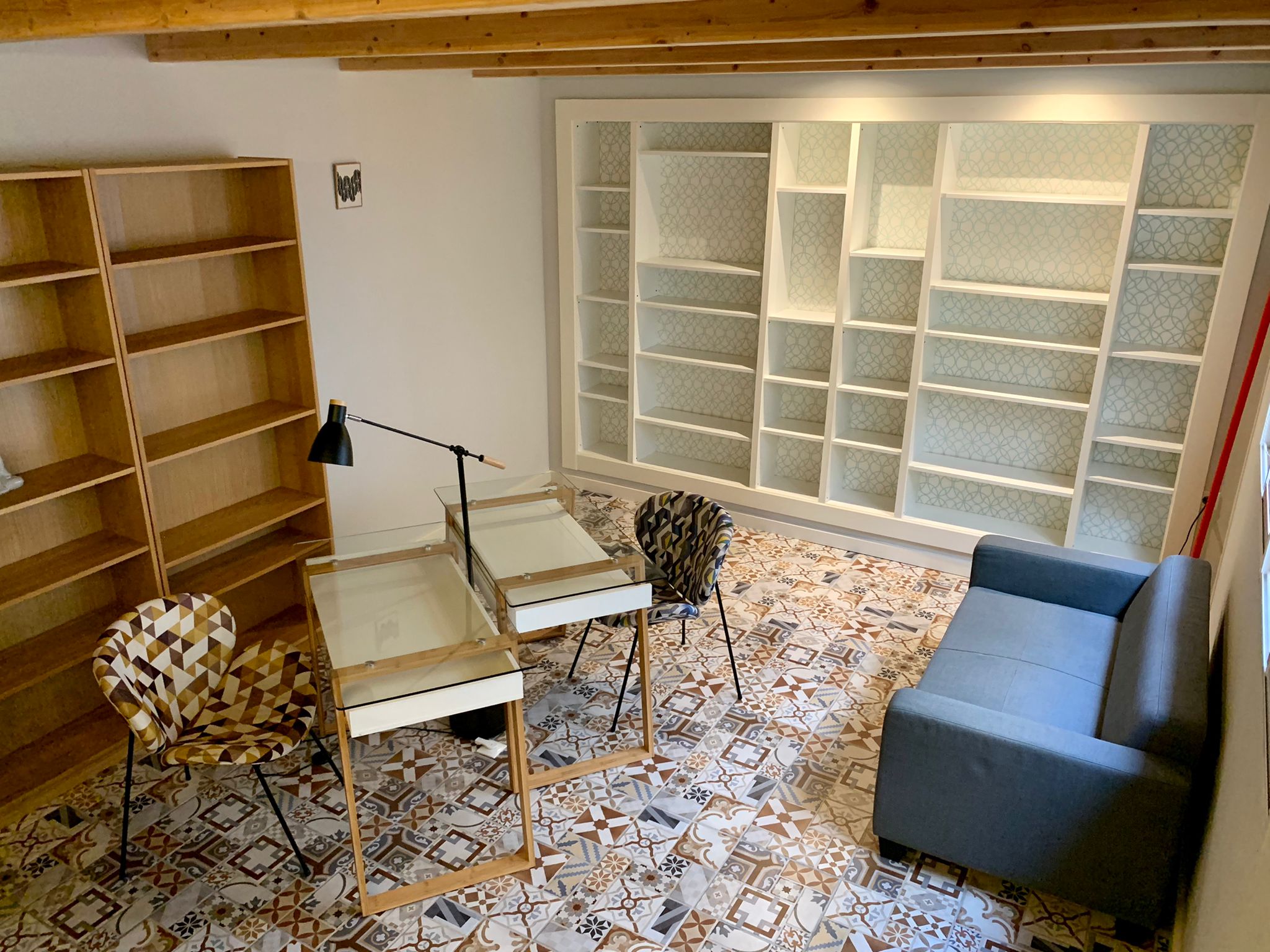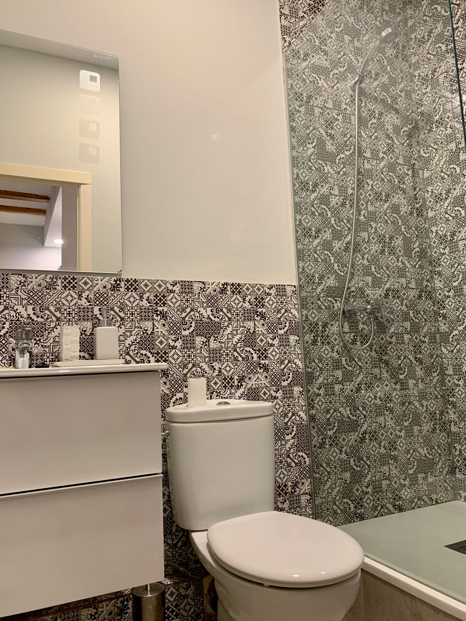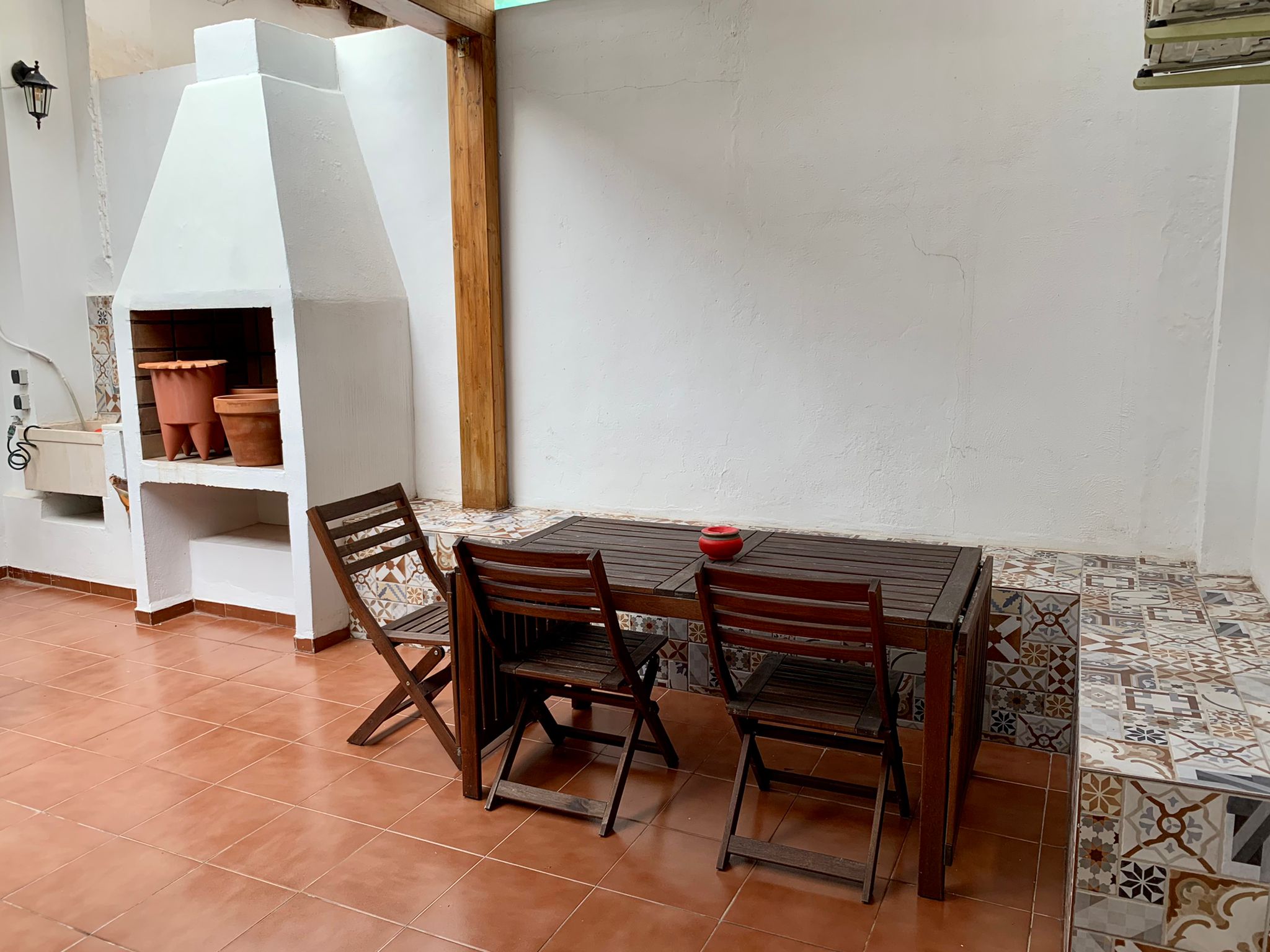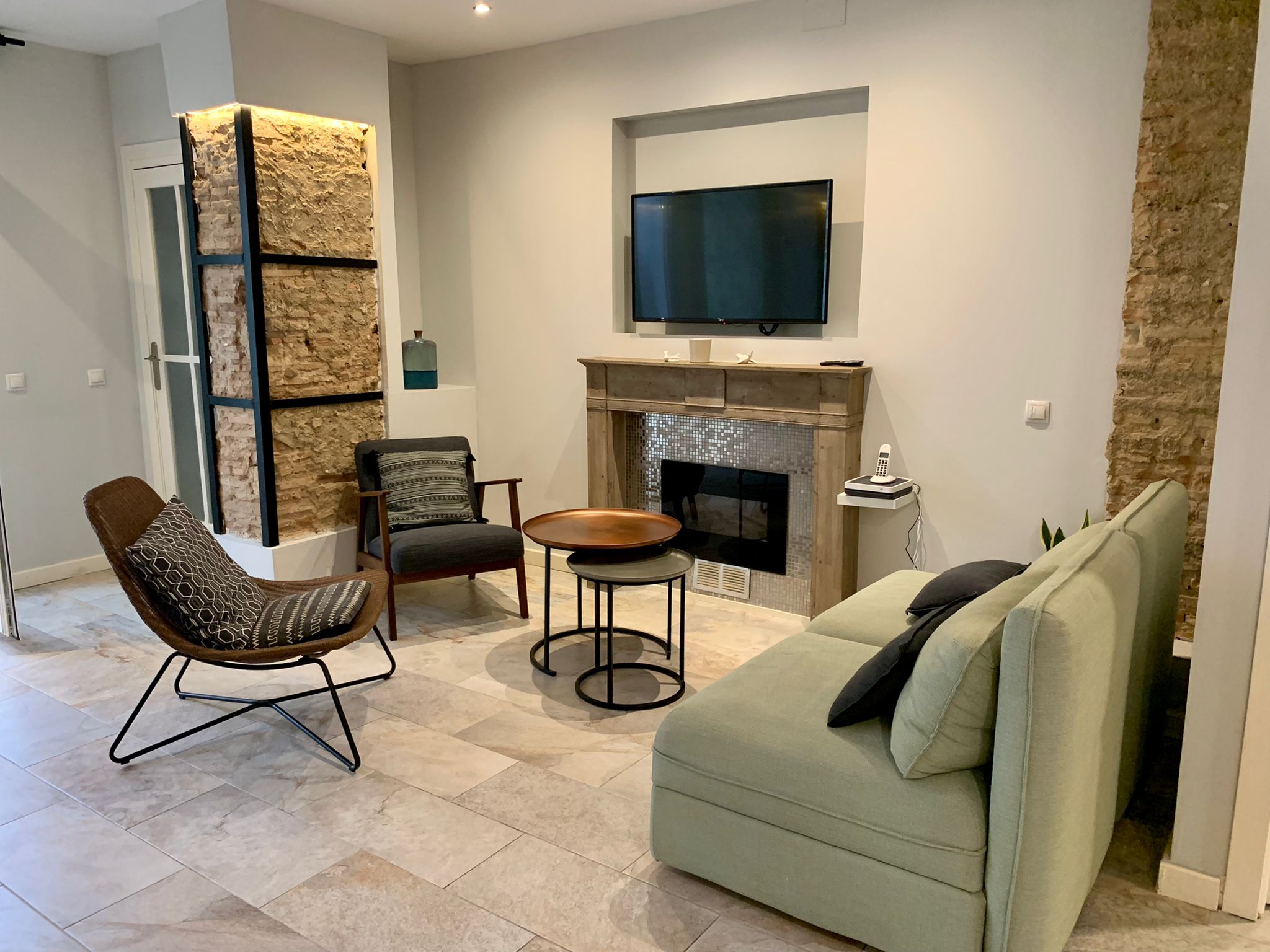 The entire flat is bright and catches plenty of natural light. The old elements like the beams in the ceiling etc have been kept but everything has been renovated in a modern way. This gives the flat a lot of charm. You will feel at home here from the moment you enter. Also, the mosaic floors, give the apartment character and style.