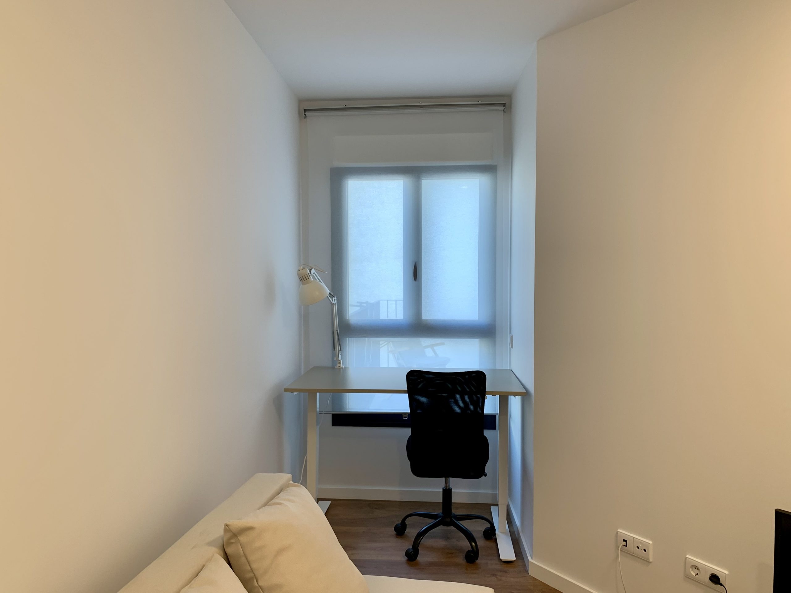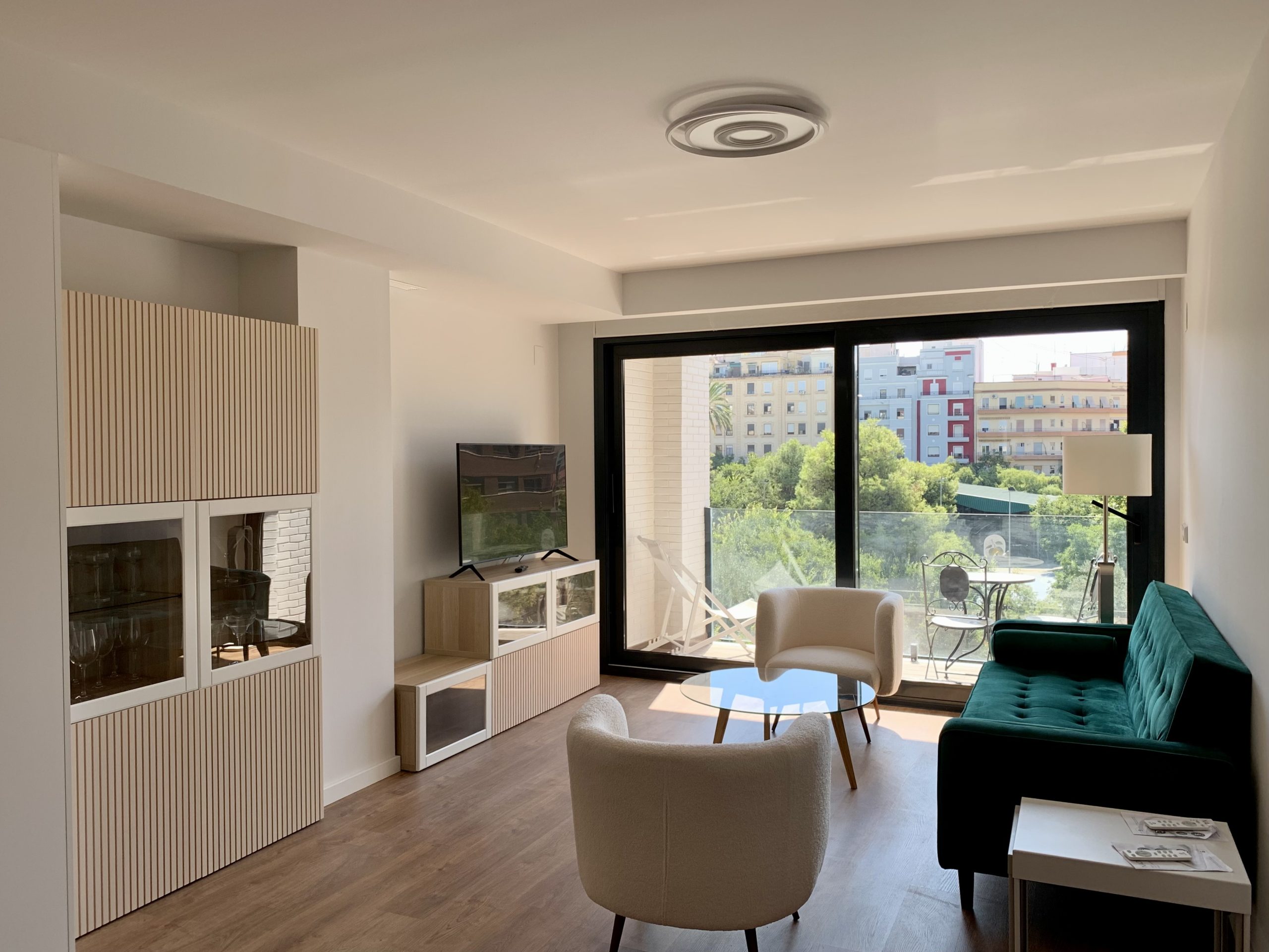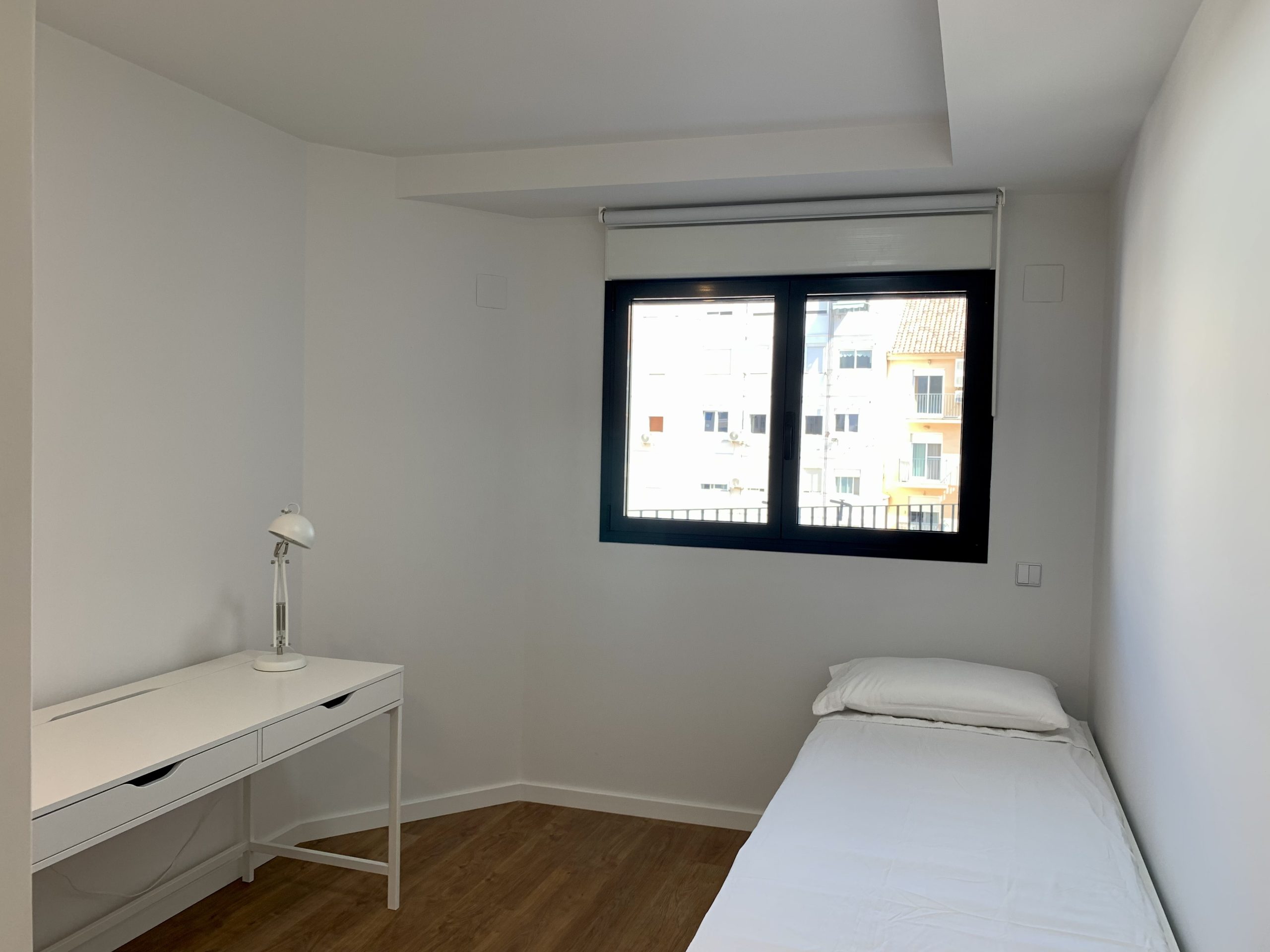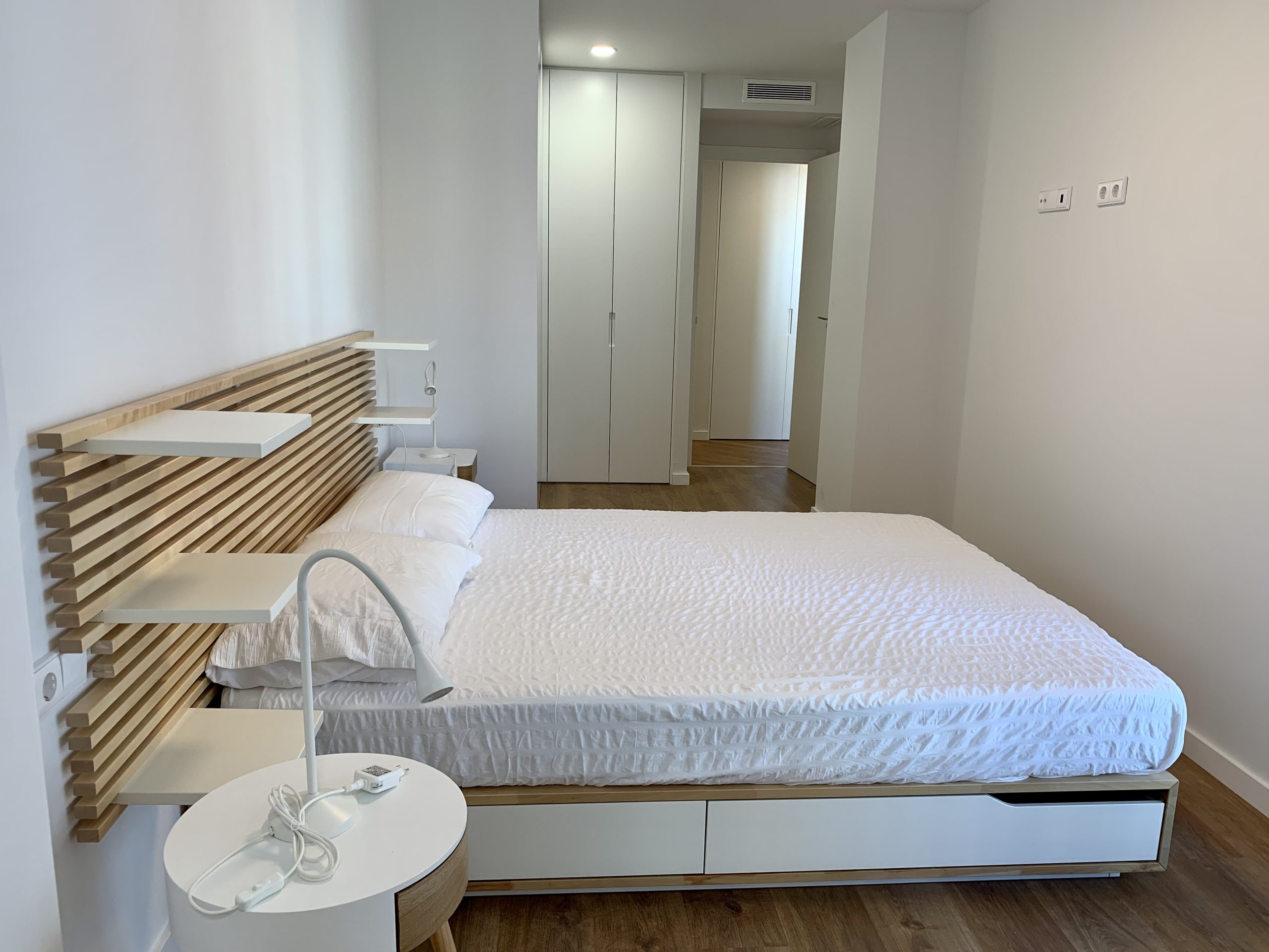 Palleter is an exclusive apartment for rent in Valencia. The flat has two bedrooms and two bathrooms. The master bedroom has a double bed and a bathroom. The second bedroom has two single beds and a desk. You will find plenty of built-in wardrobes in both rooms, as in the rest of the flat. There is also a third extra room with a sofa bed and a desk.