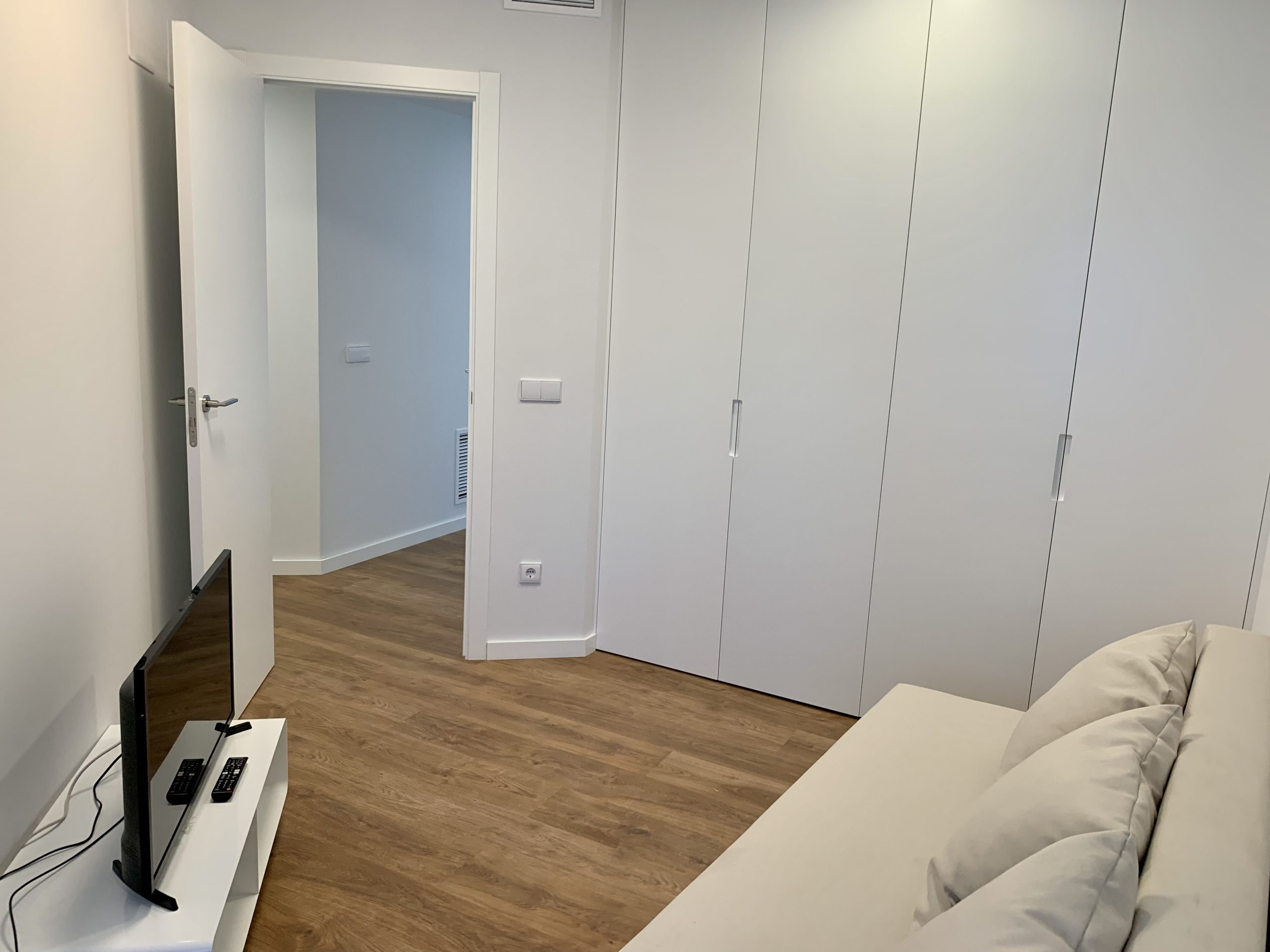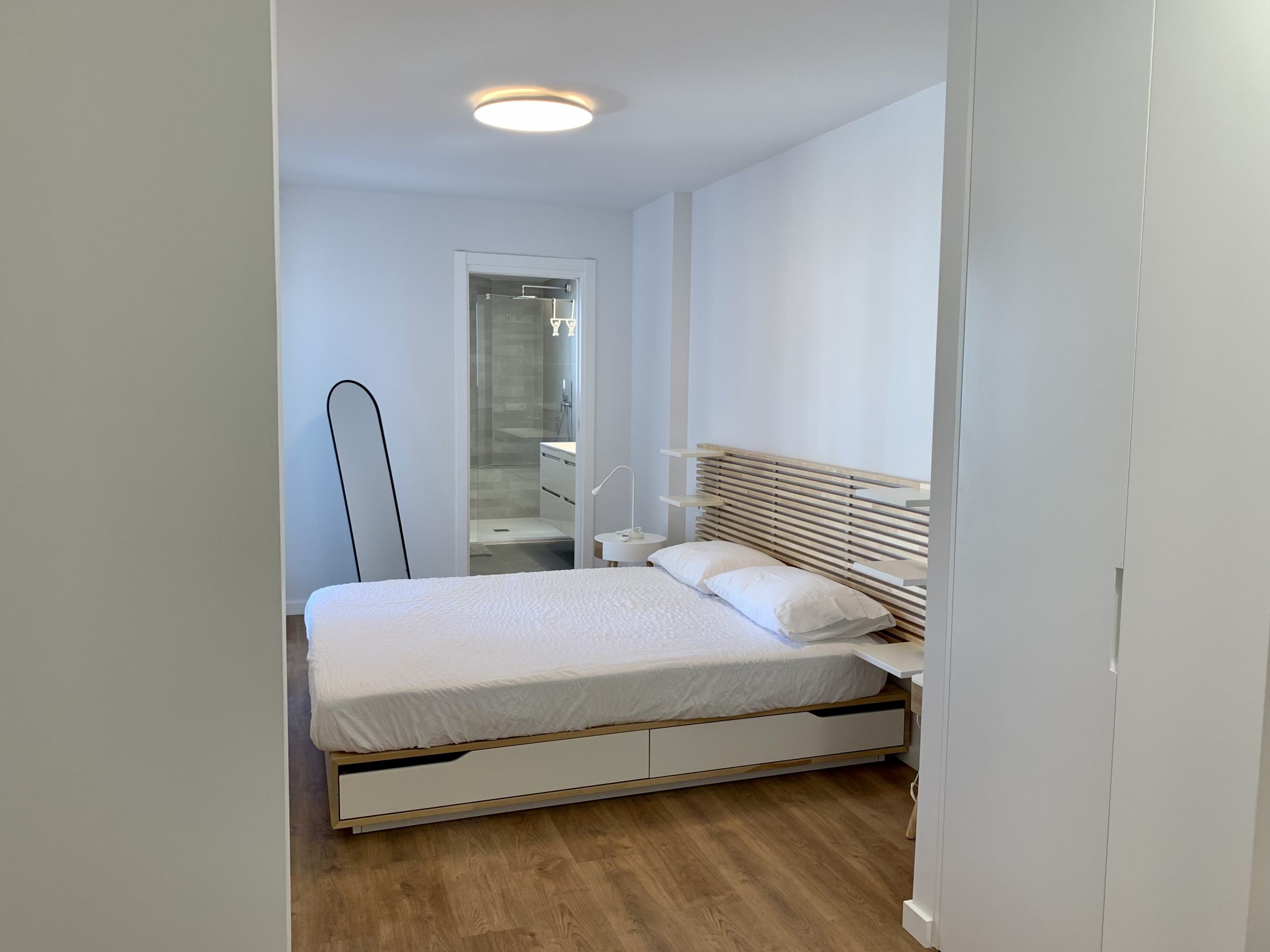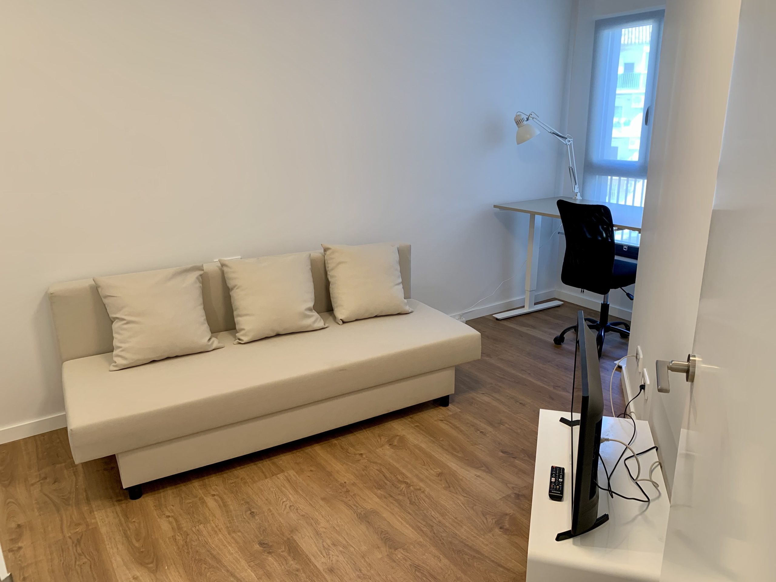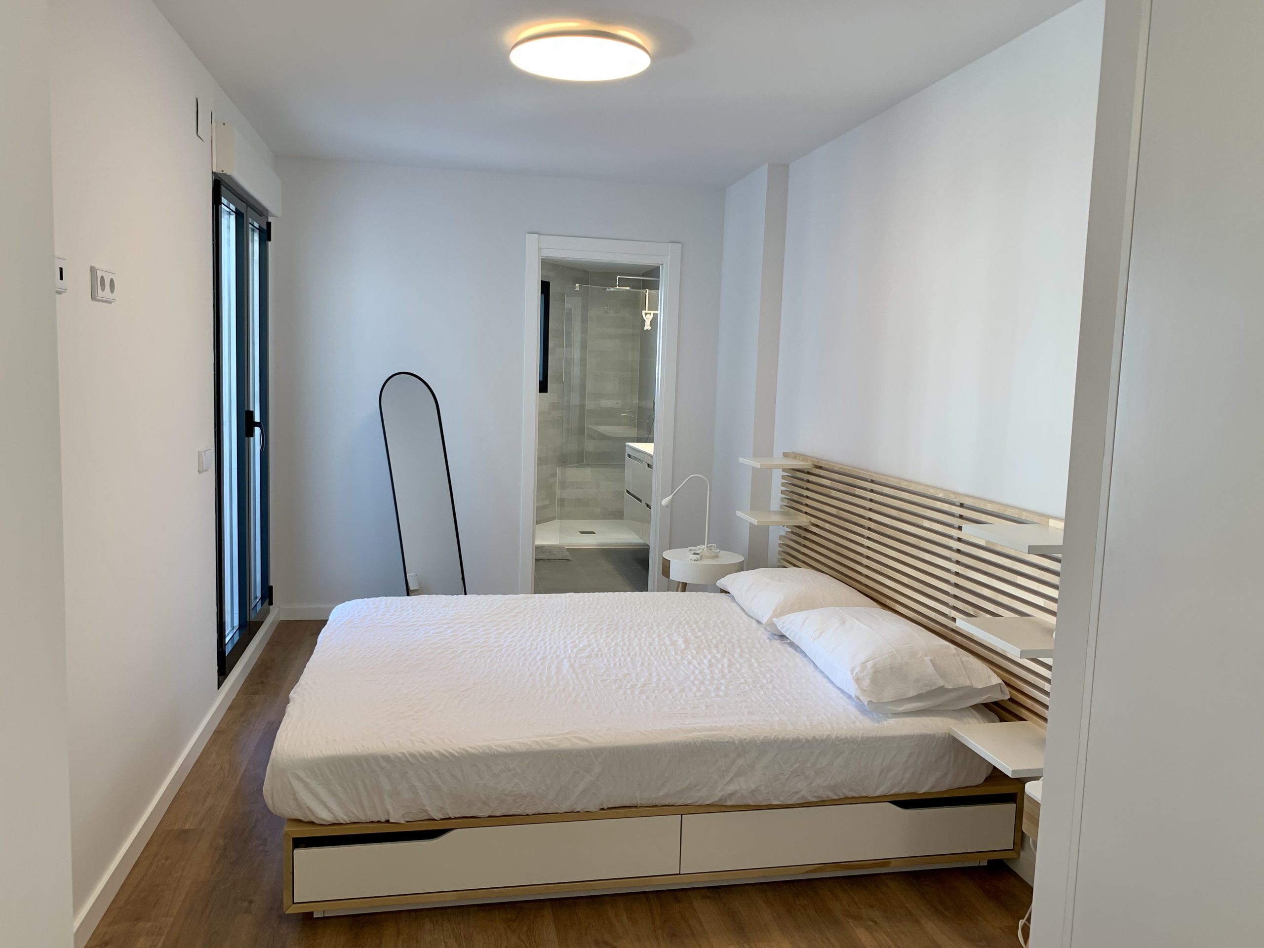 Palleter is an exclusive apartment for rent in Valencia. The flat has two bedrooms and two bathrooms. The master bedroom has a double bed and a bathroom. The second bedroom has two single beds and a desk. You will find plenty of built-in wardrobes in both rooms, as in the rest of the flat. There is also a third extra room with a sofa bed and a desk.