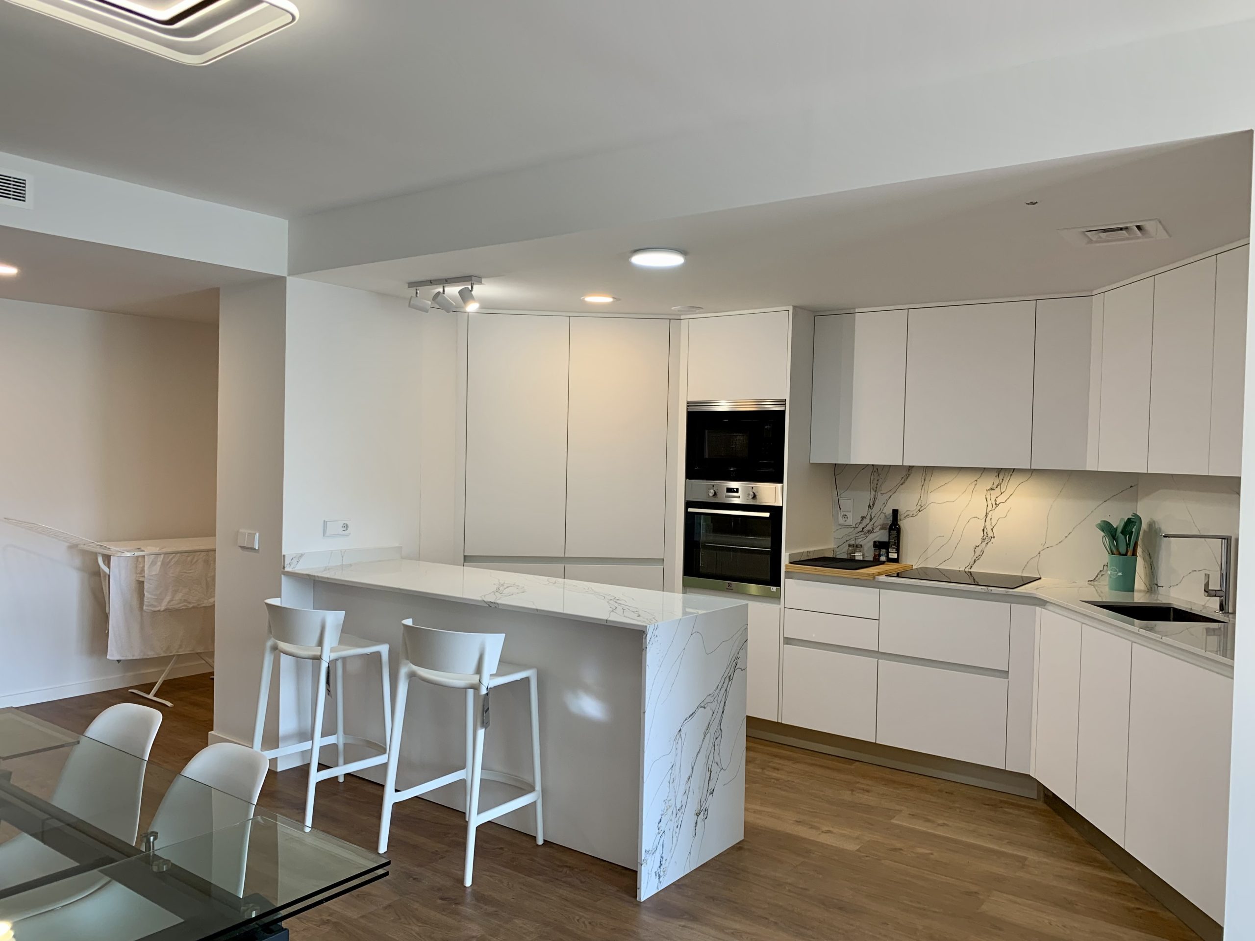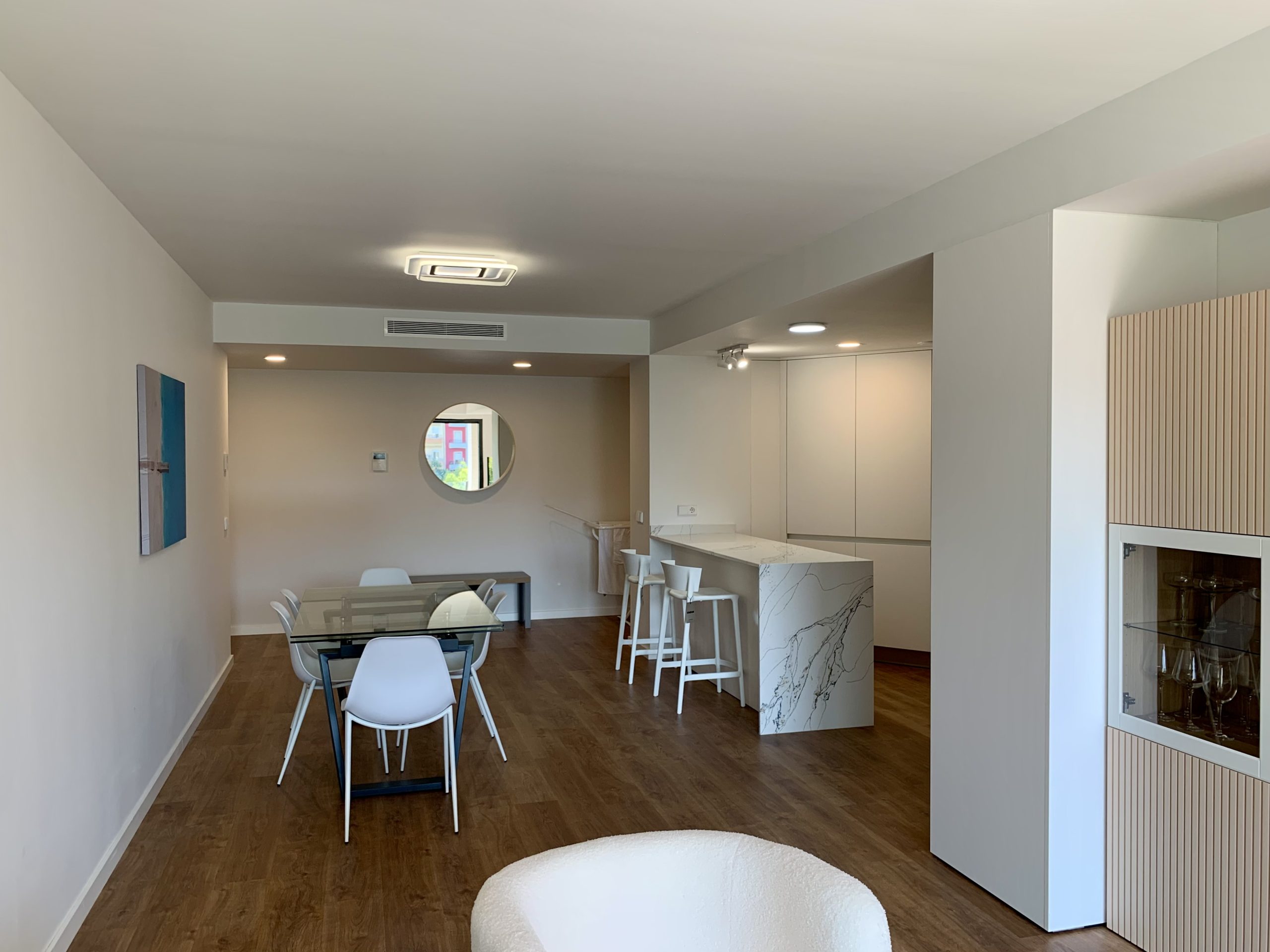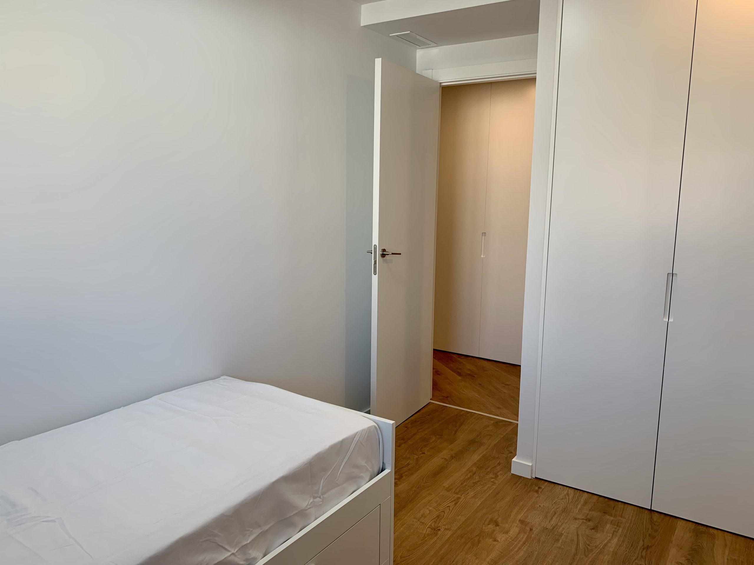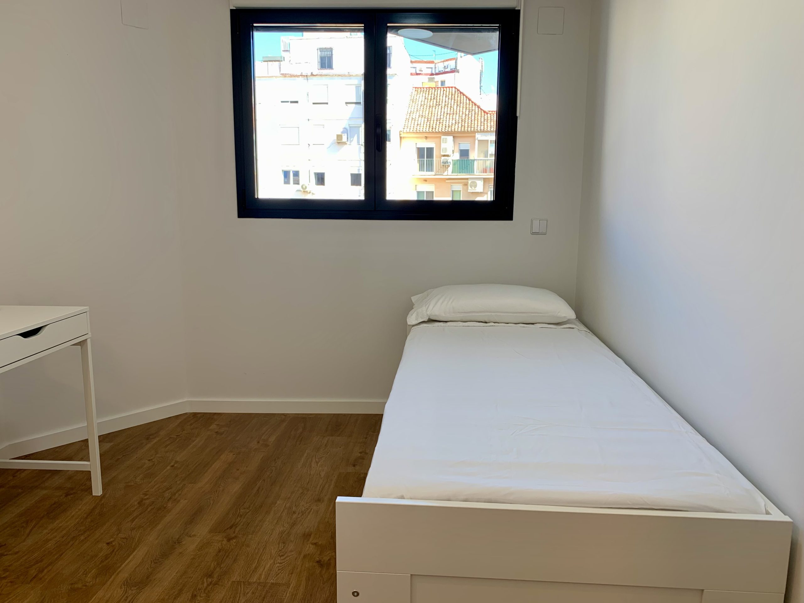 Palleter is an exclusive apartment for rent in Valencia. The flat has two bedrooms and two bathrooms. The master bedroom has a double bed and a bathroom. The second bedroom has two single beds and a desk. You will find plenty of built-in wardrobes in both rooms, as in the rest of the flat. There is also a third extra room with a sofa bed and a desk.