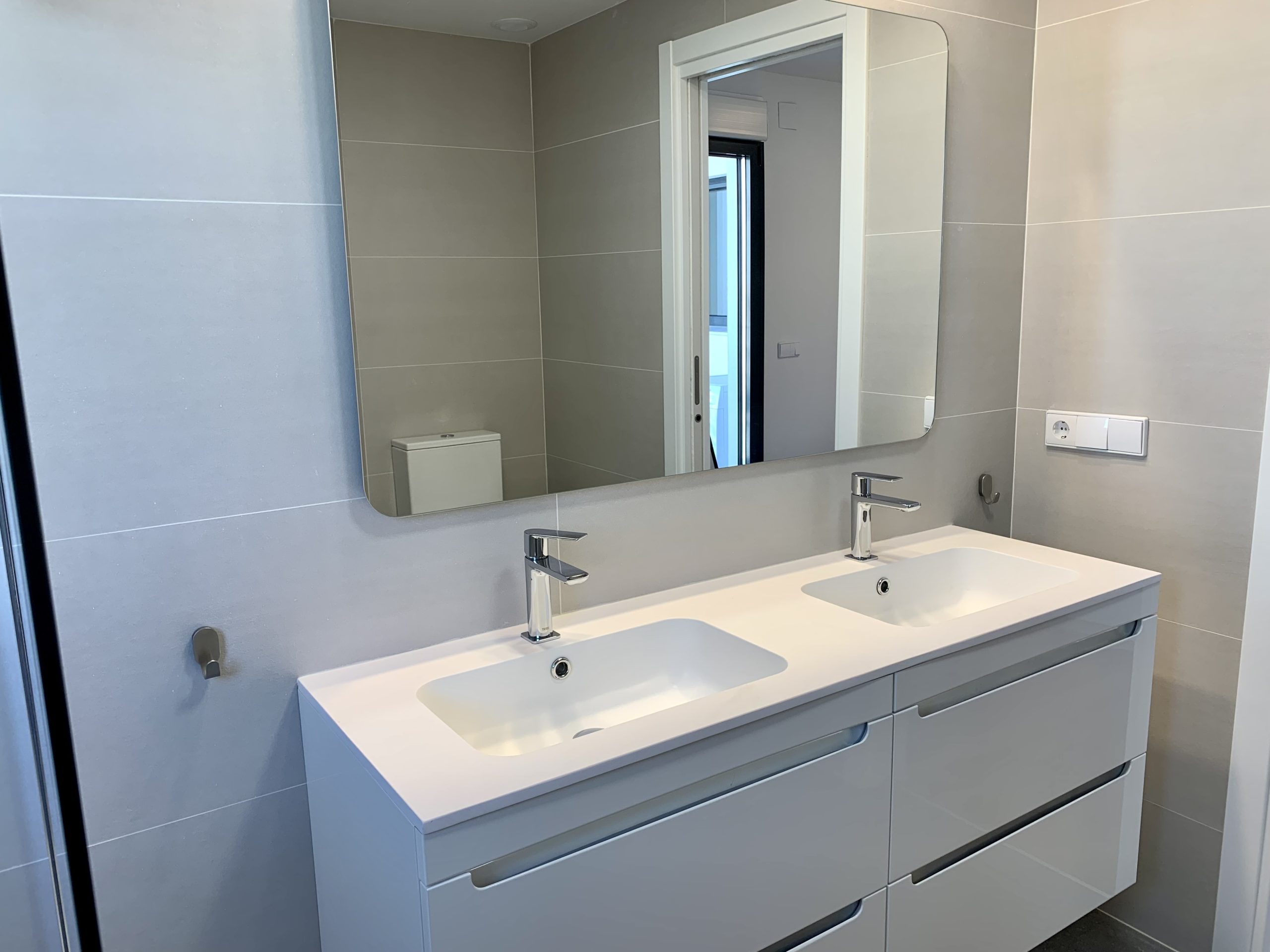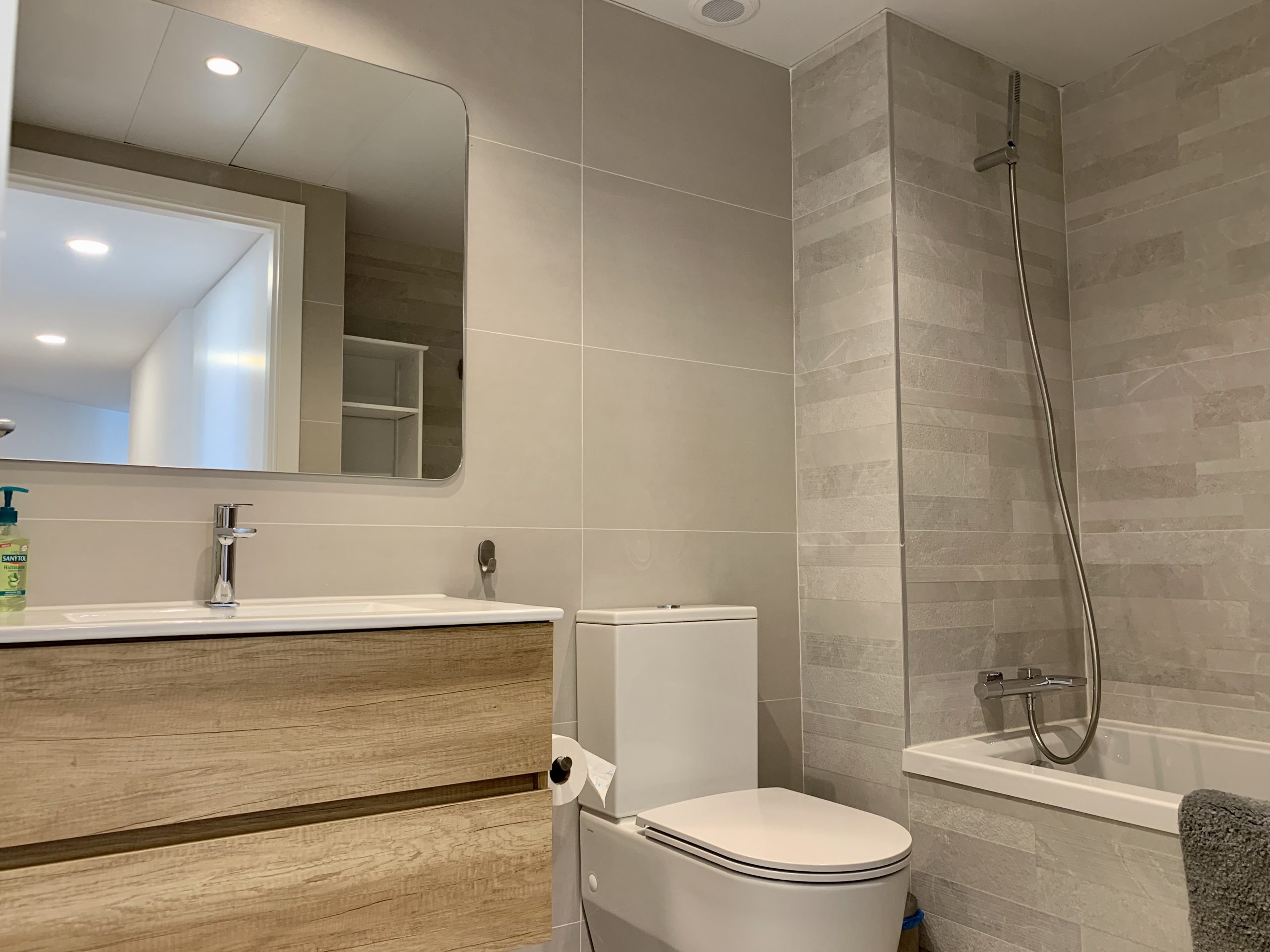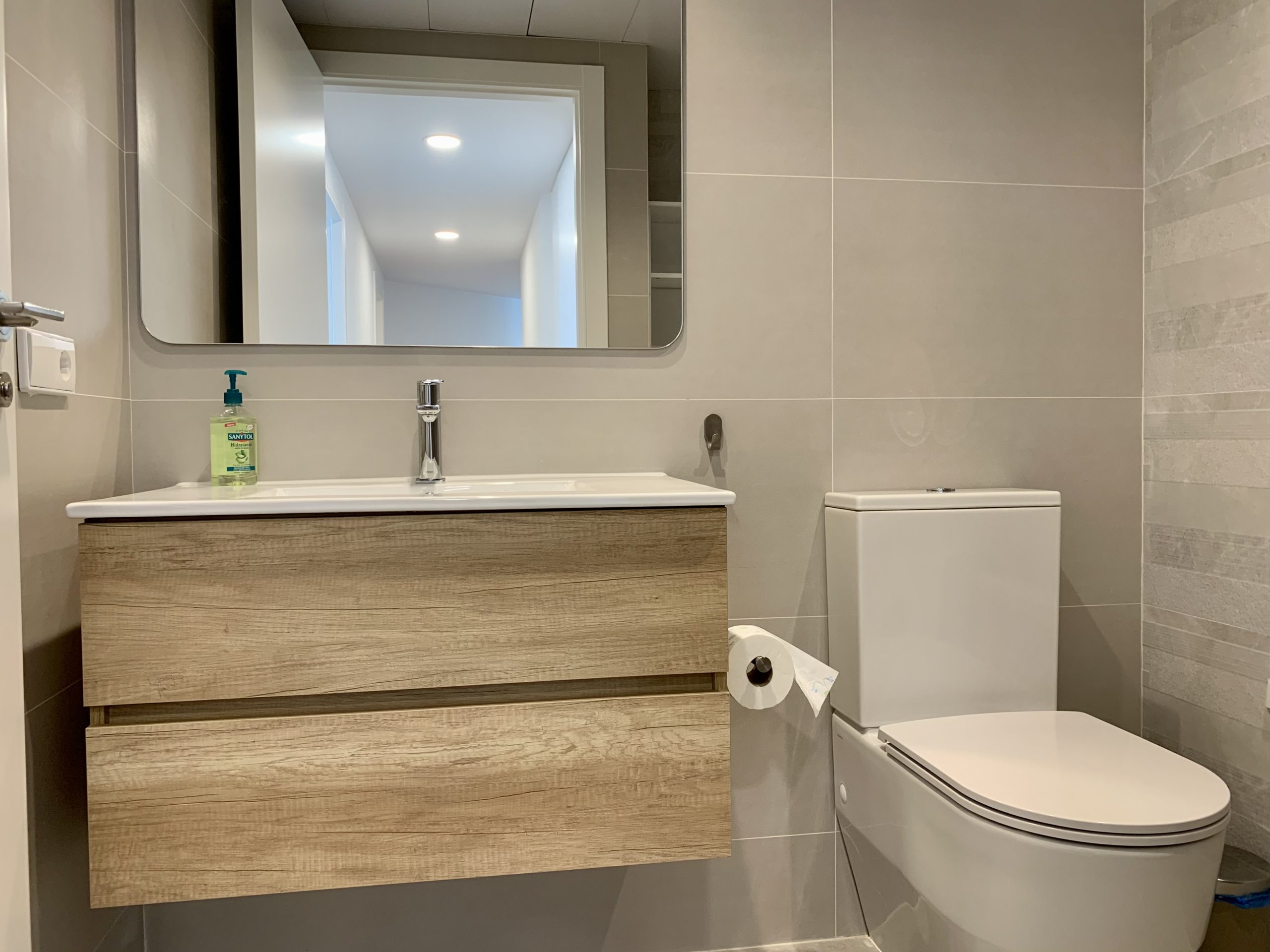 The living room is spacious and catches a lot of natural light. There is a comfortable sofa and also a TV. This is the ideal spot to relax after a long day or at the weekend. You can also access the terrace belonging to the apartment from the living room. The terrace comes with a set of chairs. From the master bedroom, you also have access to a second terrace. Here you will find the washing machine, ideal for washing and drying your clothes right away.