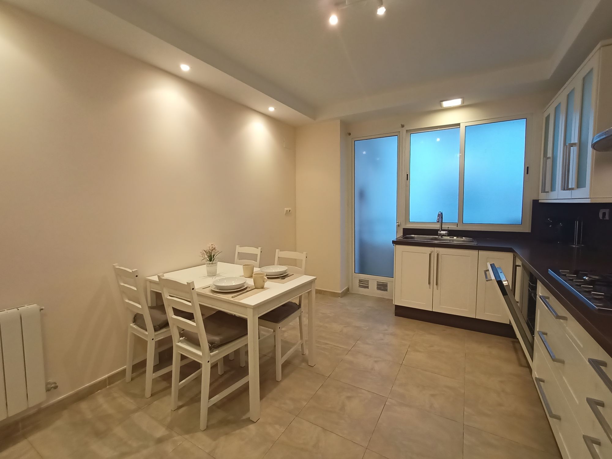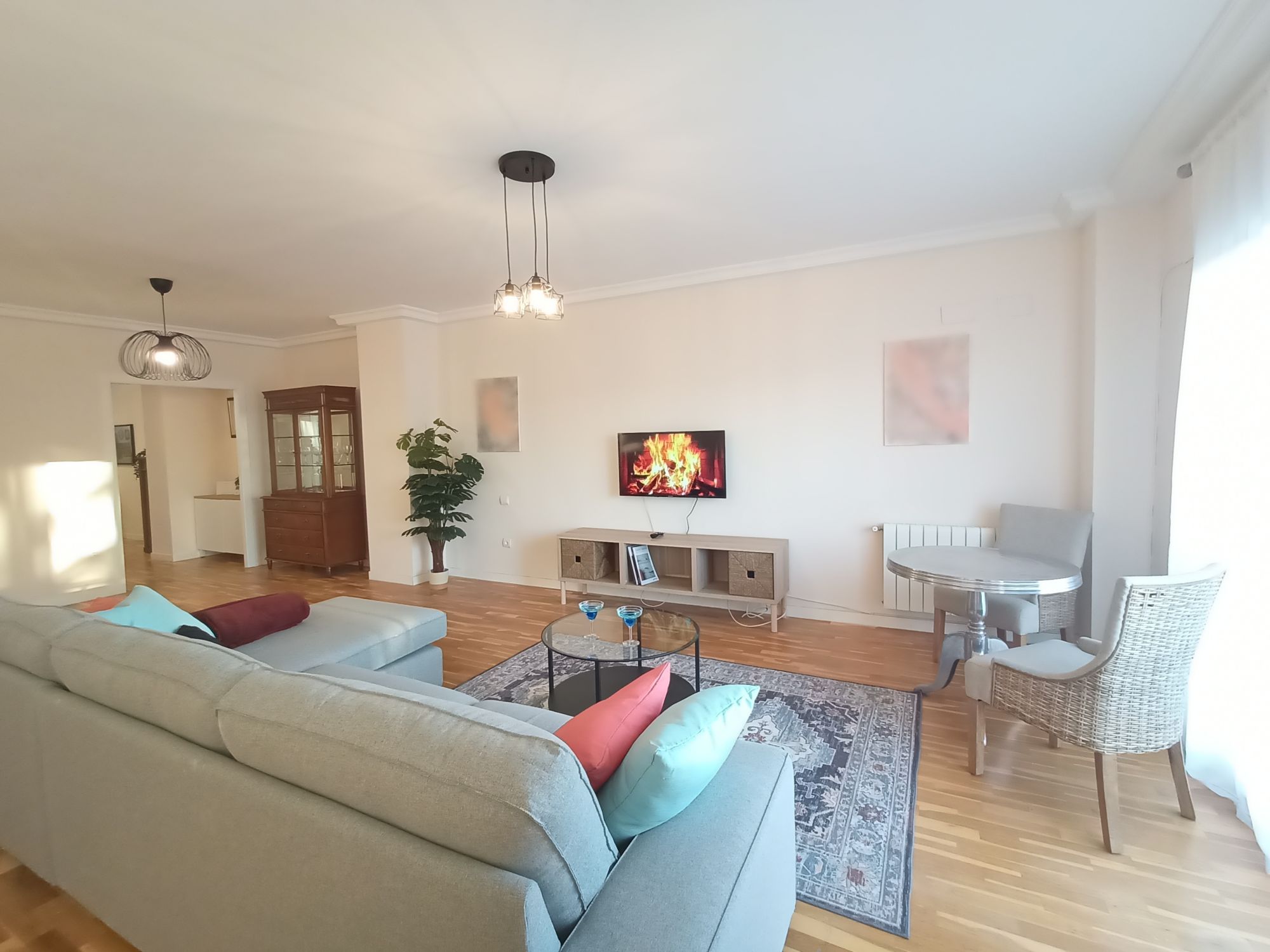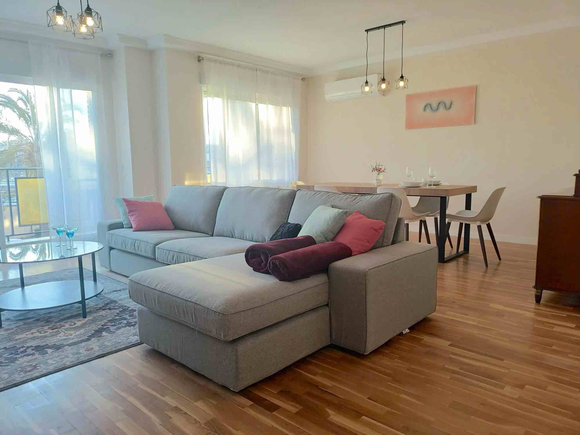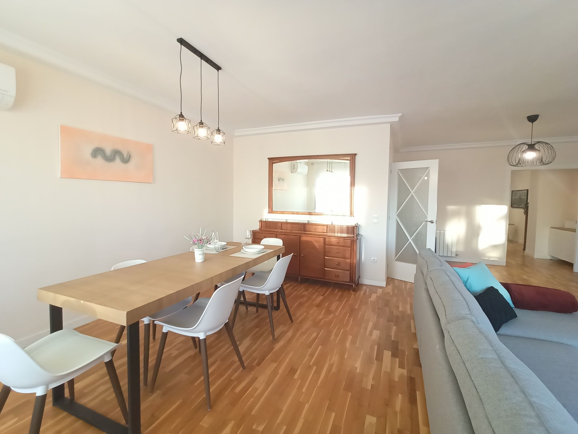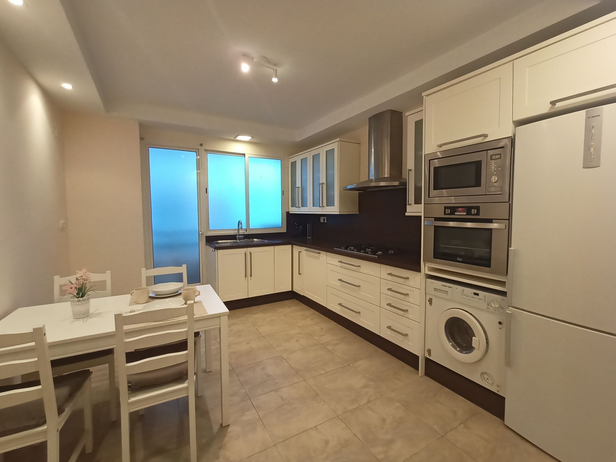 Upon entering this bright apartment on the 2nd floor, you will be stunned by the view and space that this apartment has to offer. The living room has ample floor space. The comfortable couch separates the living area from the dining area. The kitchen is located in a separate room as per Spanish tradition. The kitchen comes fully equipped for all kinds of cooking. Due to the space in the kitchen, it is perfectly possible to work with multiple people in the kitchen, which is very common in the Spanish tradition.