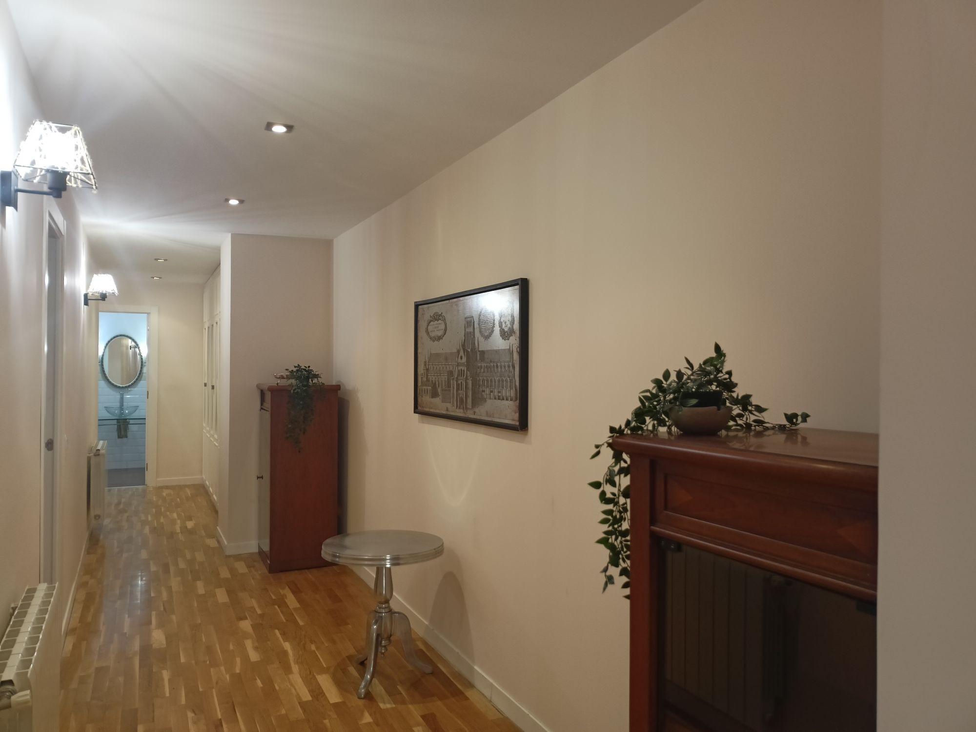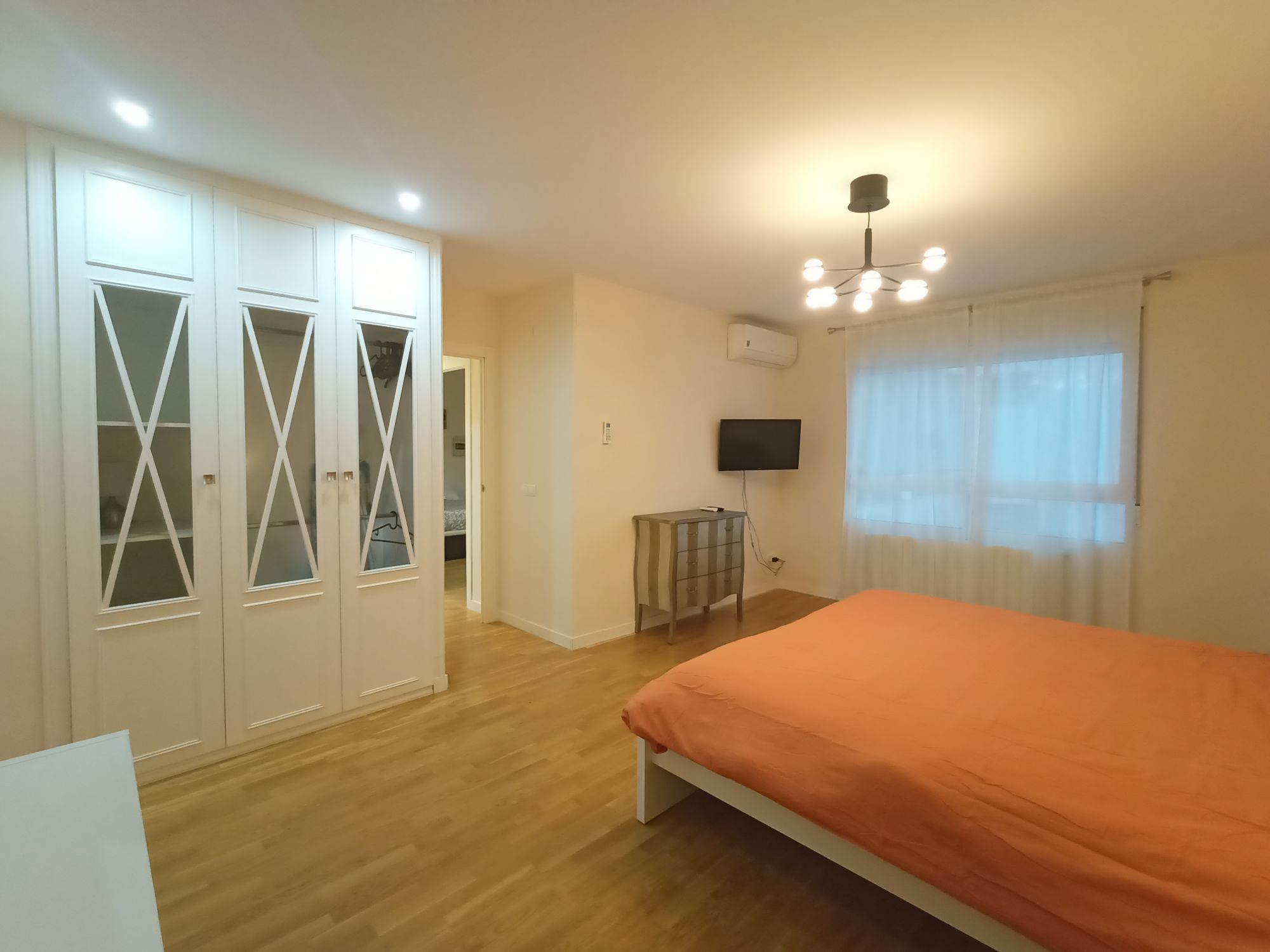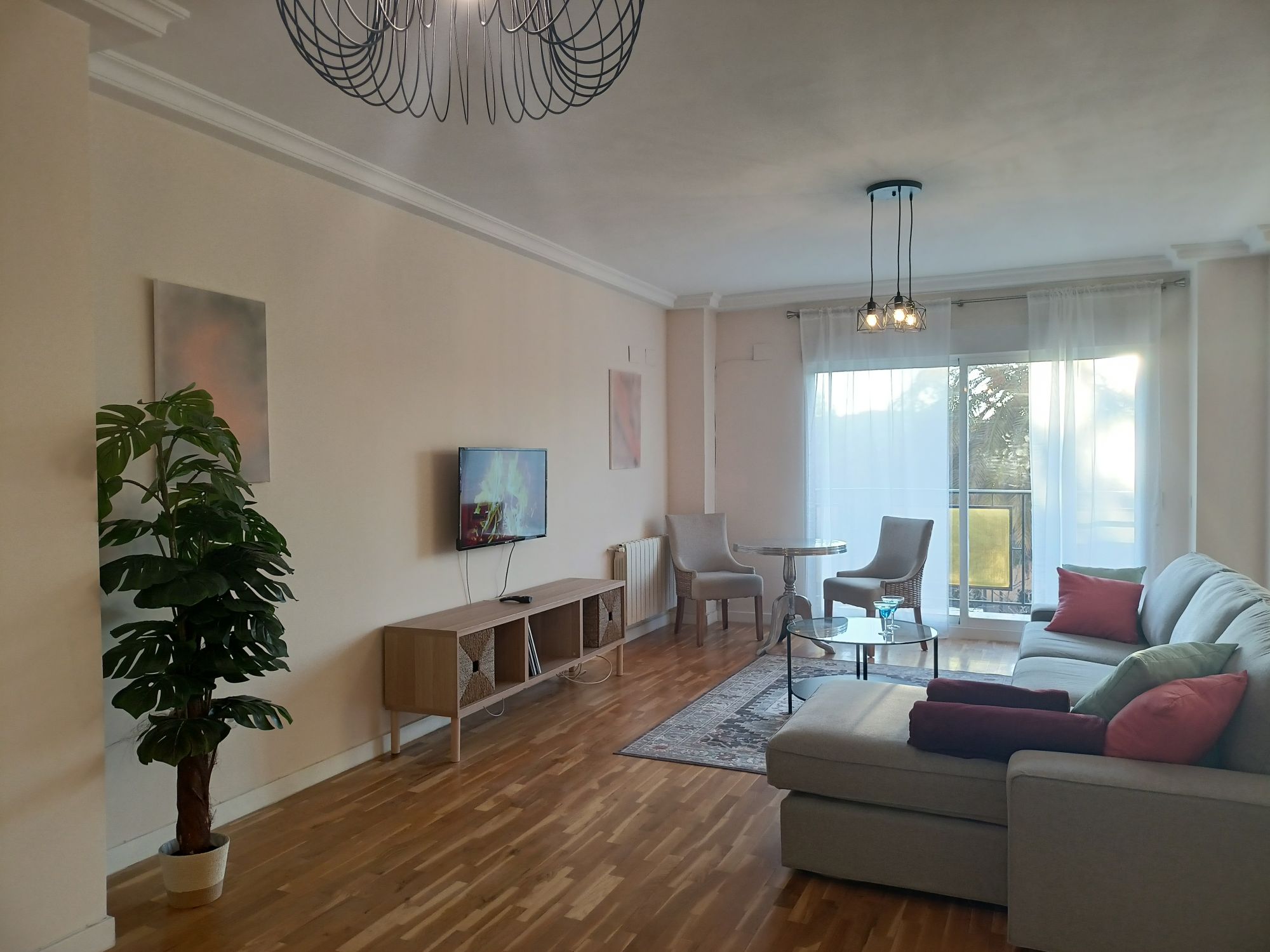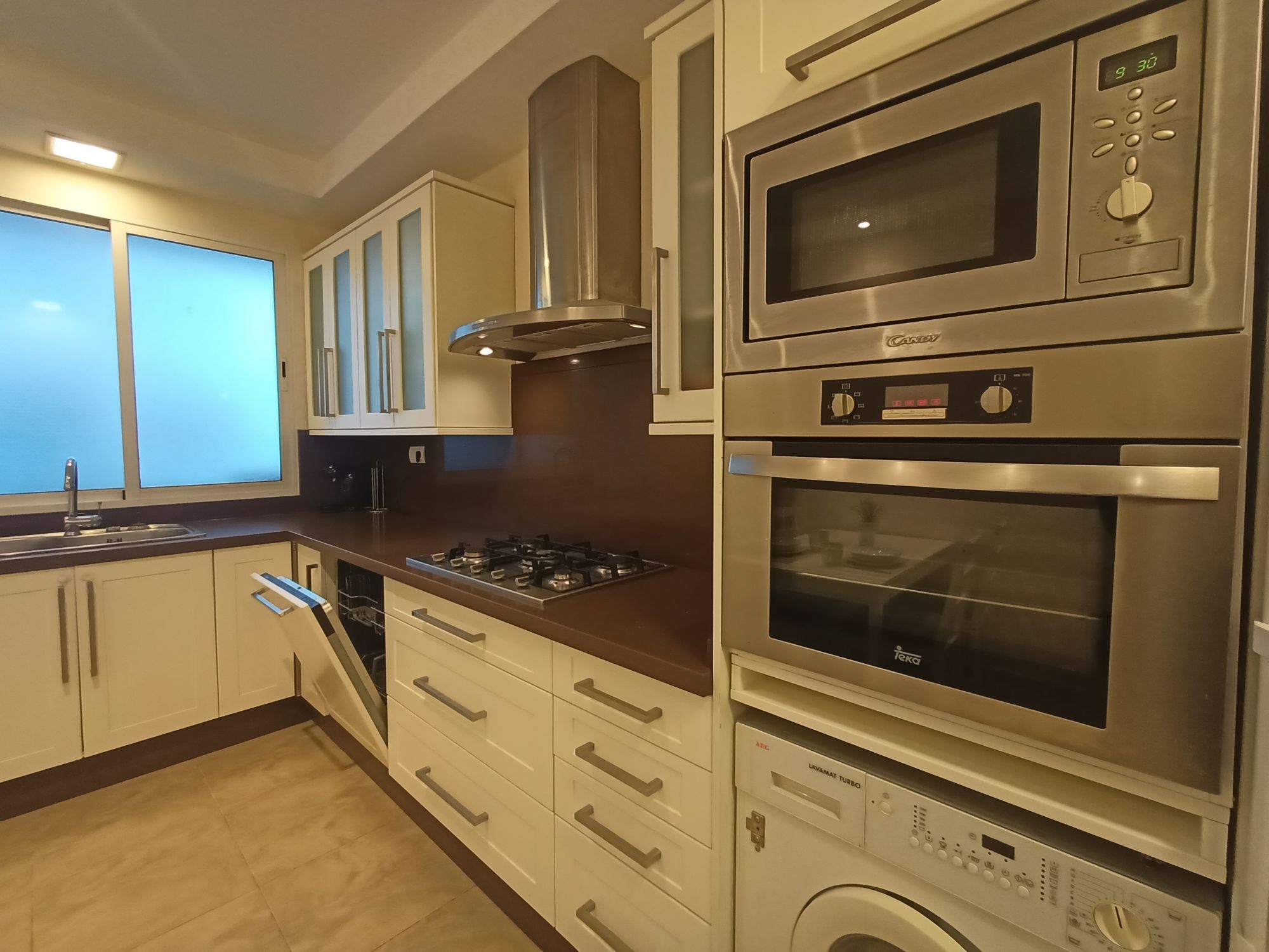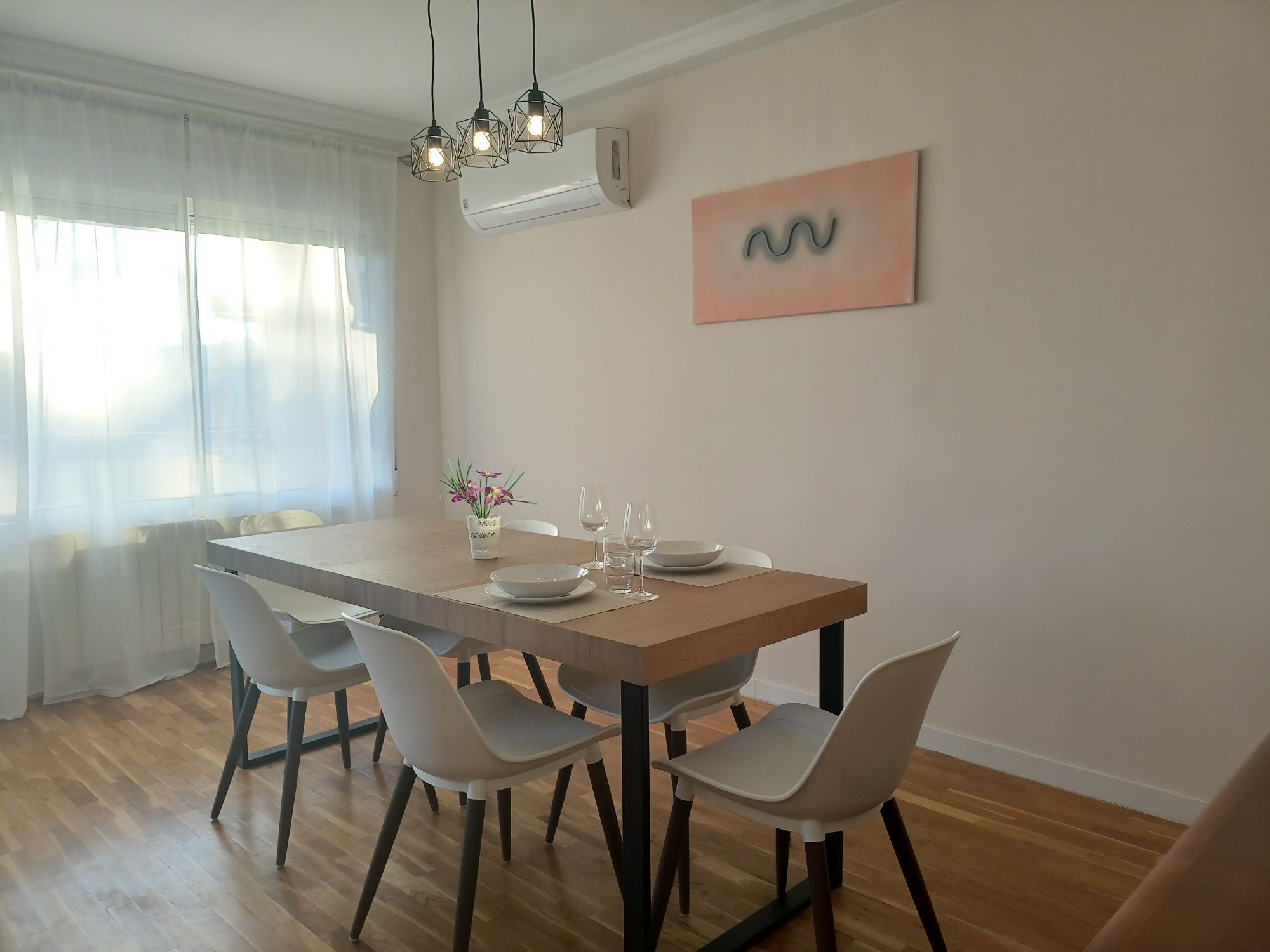 Upon entering this bright apartment on the 2nd floor, you will be stunned by the view and space that this apartment has to offer. The living room has ample floor space. The comfortable couch separates the living area from the dining area. The kitchen is located in a separate room as per Spanish tradition. The kitchen comes fully equipped for all kinds of cooking. Due to the space in the kitchen, it is perfectly possible to work with multiple people in the kitchen, which is very common in the Spanish tradition.