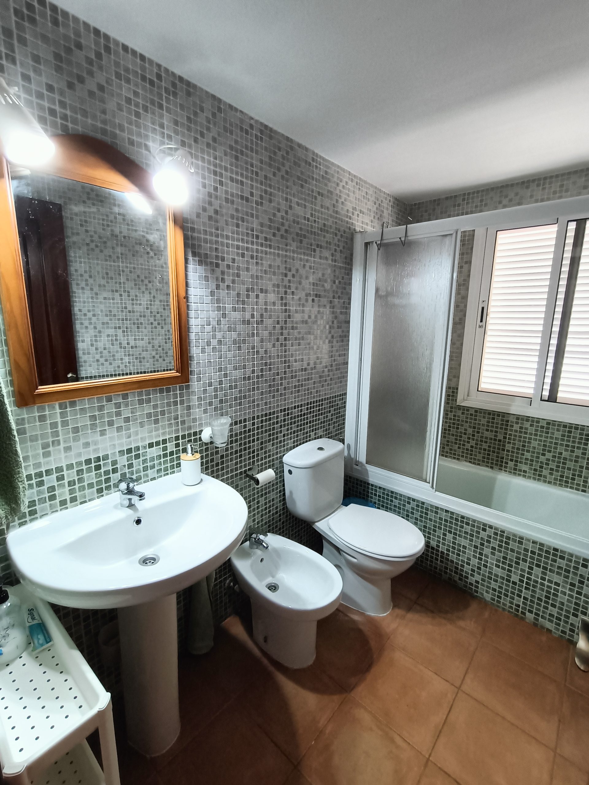 To cater to your relaxation and self-care needs, the apartment is accompanied by a well-appointed bathroom. This bathroom boasts desirable amenities such as a relaxing bath, an invigorating shower, a functional sink, a hygienic toilet, and even a convenient bidet.