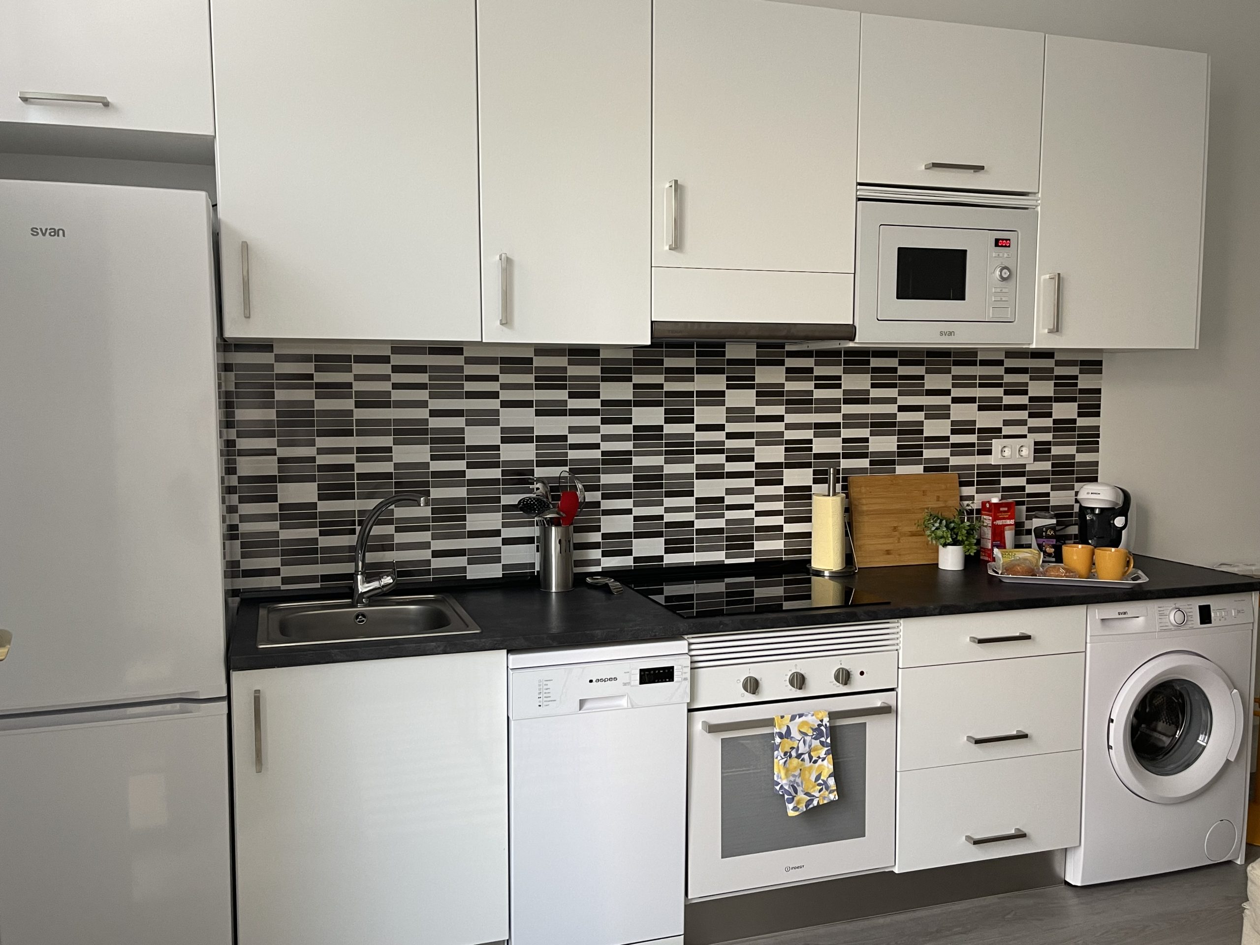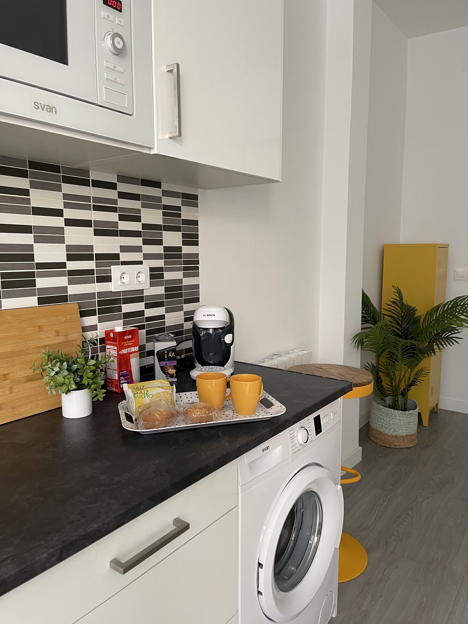 Pico Balaitus is a well-equipped studio that is ready for immediate occupancy. It includes a fully equipped open kitchen and a laundry machine. Additionally, there is a comfortable sofa, a TV, and a coffee table. The studio features a double bed and the bathroom is equipped with a shower. The wooden floors add a cozy and warm ambiance. The studio`s standout characteristic is its convenient location, just 10 minutes away from Sol metro station.