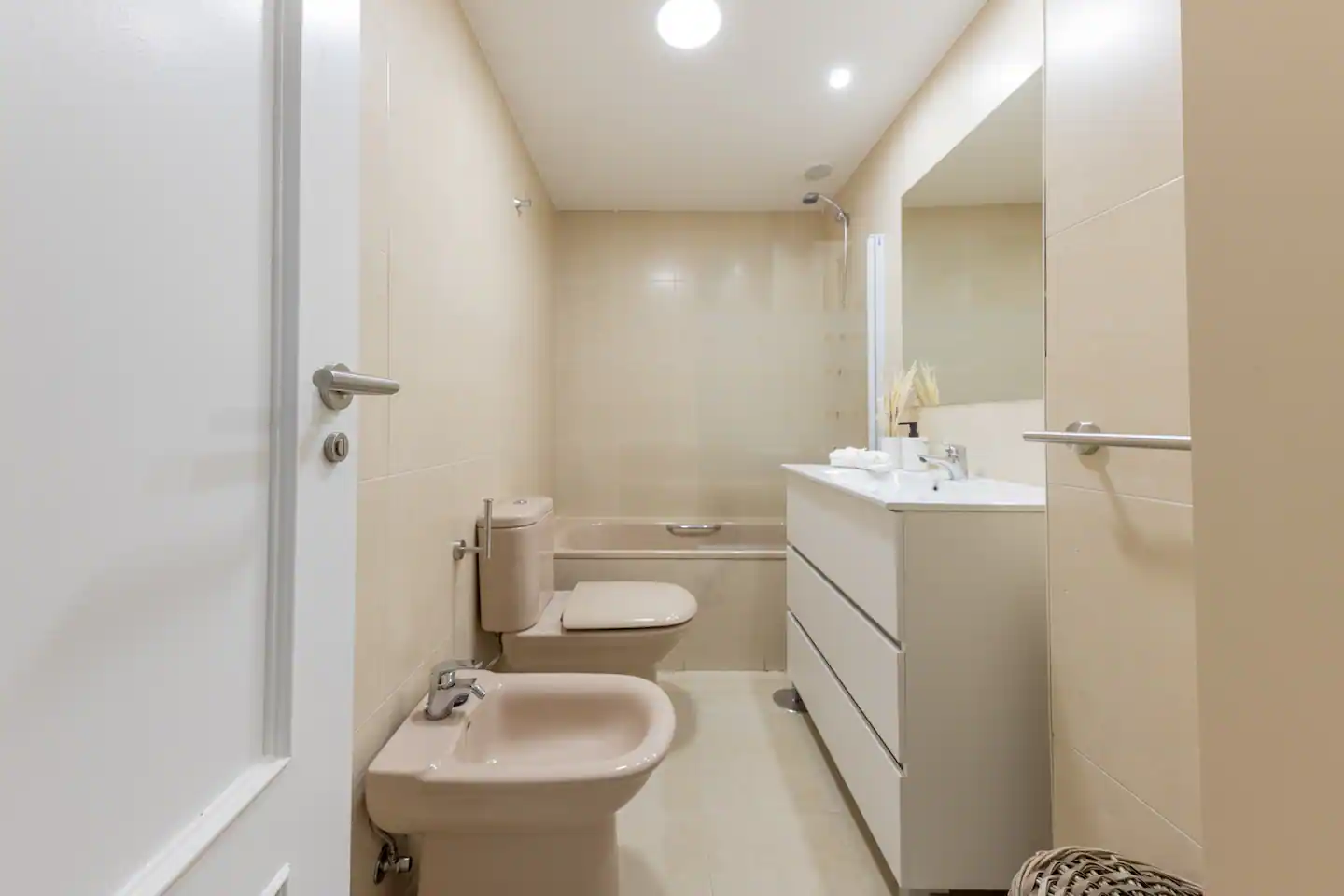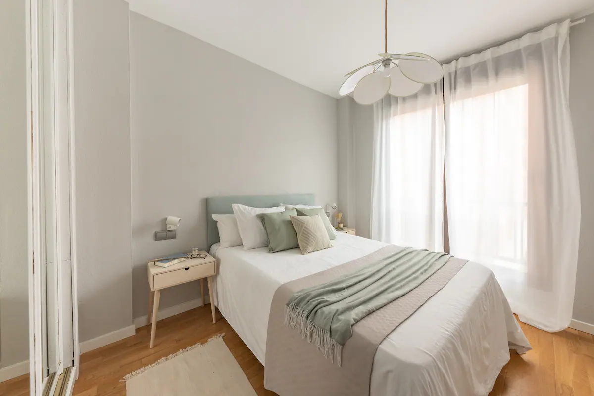 This apartment is located in a prime location near Madrid Barajas Airport, in the Corralejos area of Madrid. This residential area is known for being peaceful and secure, with many green areas and parks to enjoy the outdoors.