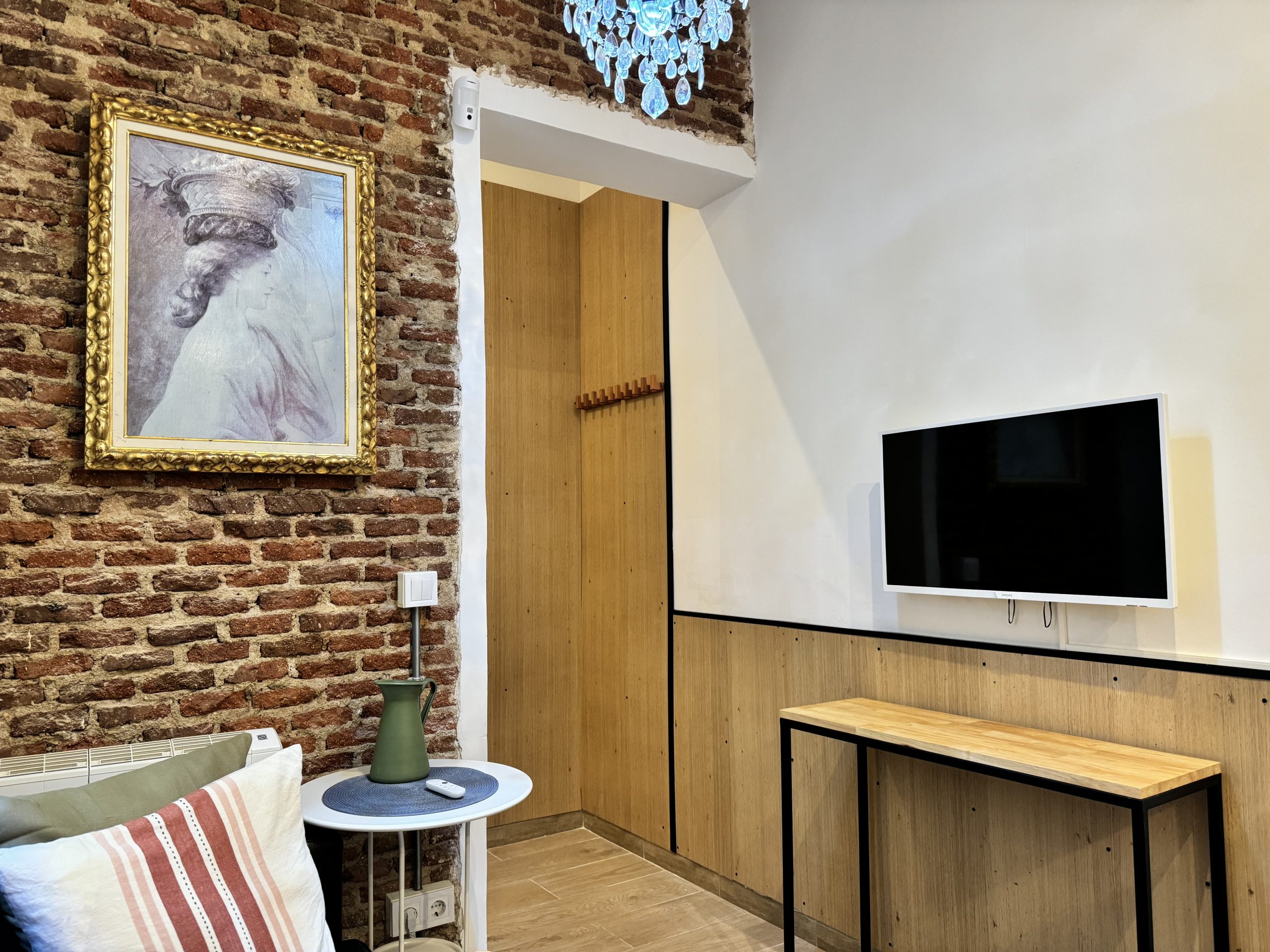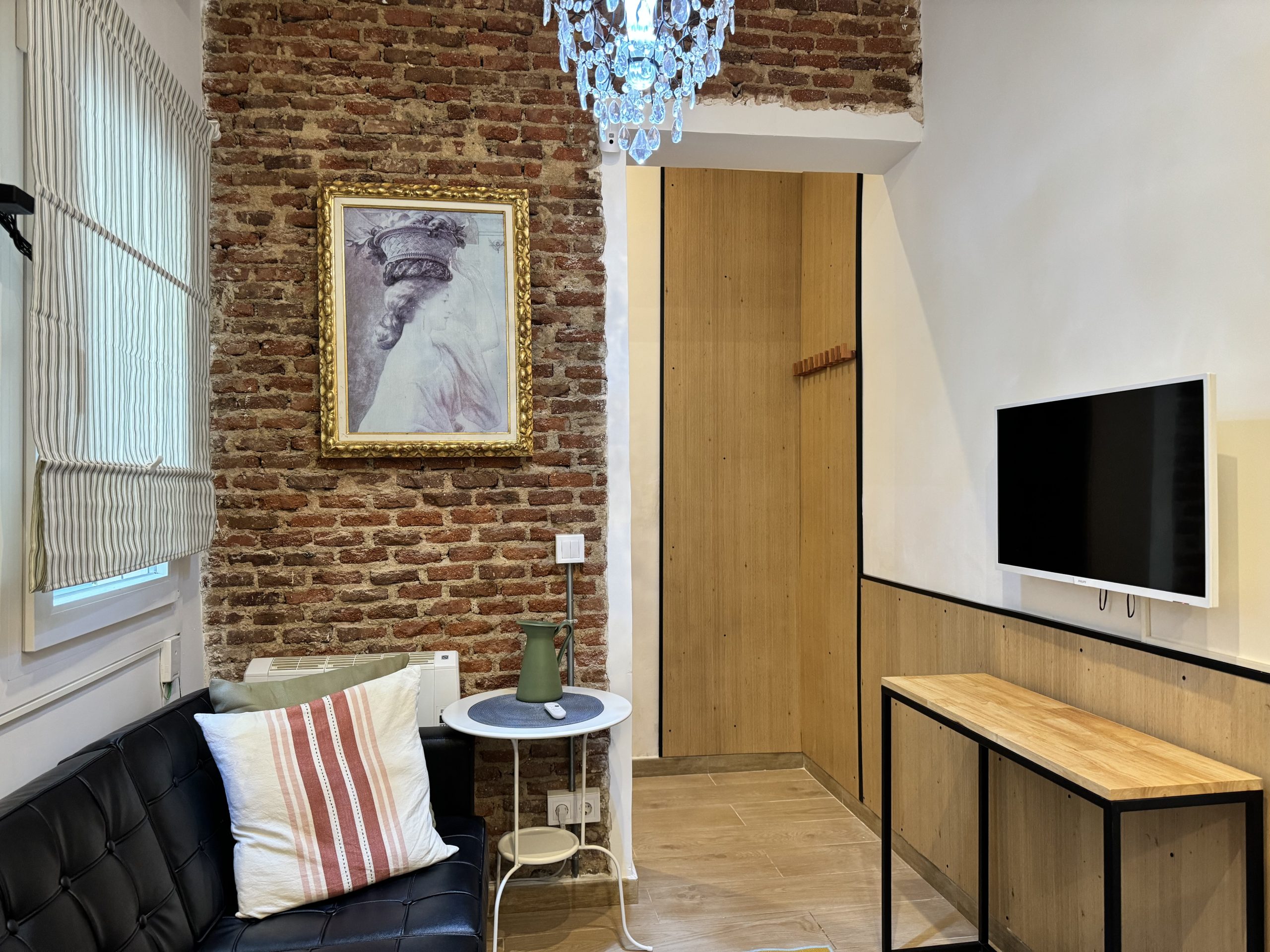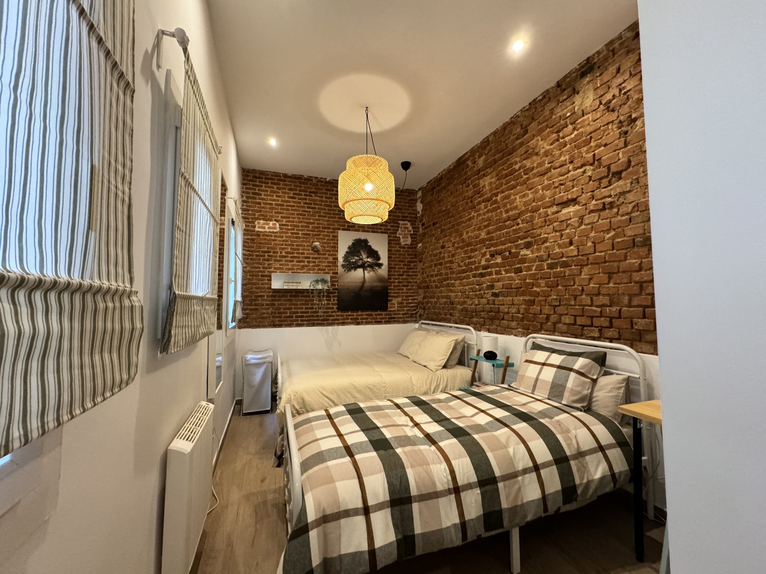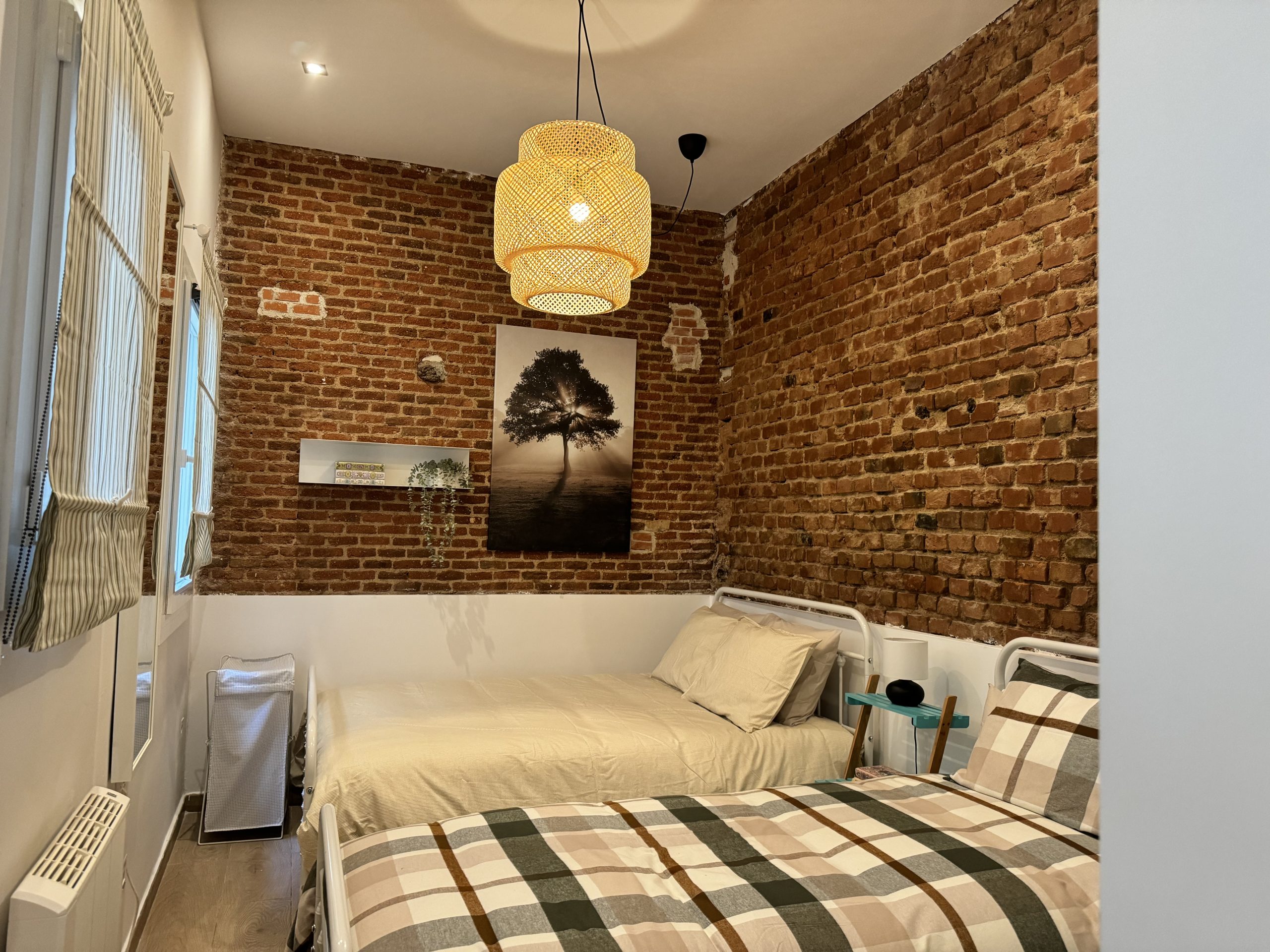 The apartment is located in the Bellas Vistas neighborhood in Tetuán, close to schools and universities such as the Polytechnic and Complutense University of Madrid. The city`s main tourist and historical attractions are just a few kilometers away. The building faces a beautiful park crossed by the old Amaniel Aqueduct, an ideal place for walking and enjoying the surroundings. With very high ceilings and exposed brick walls, this apartment offers an urban living experience with character and style.