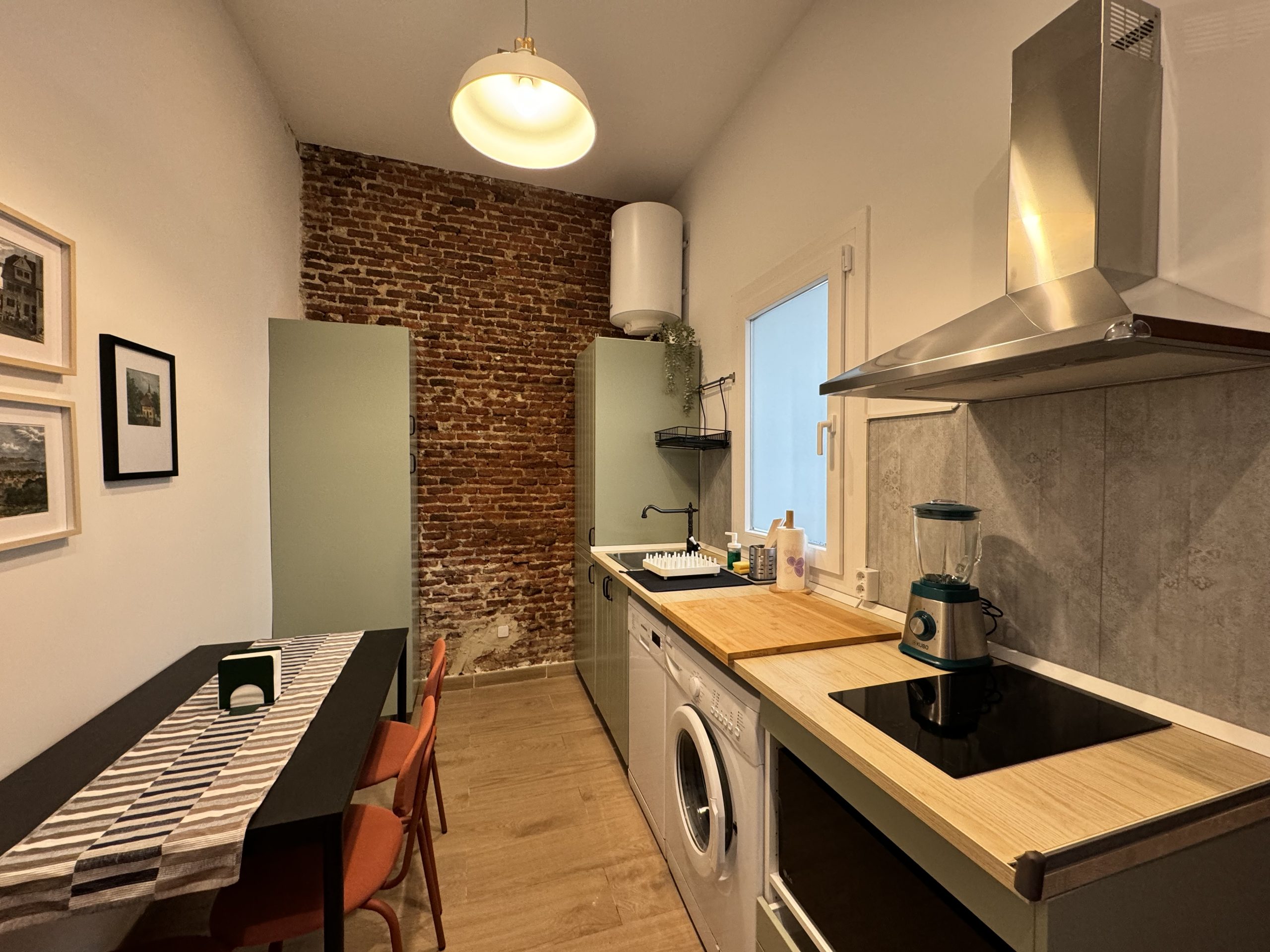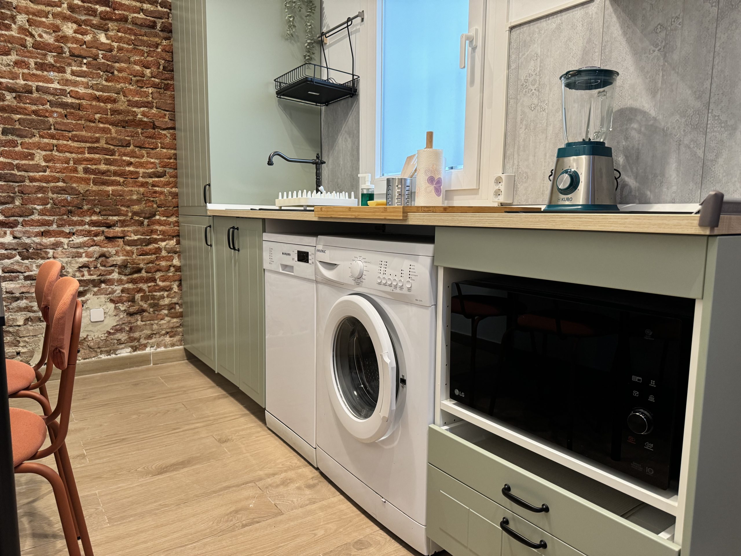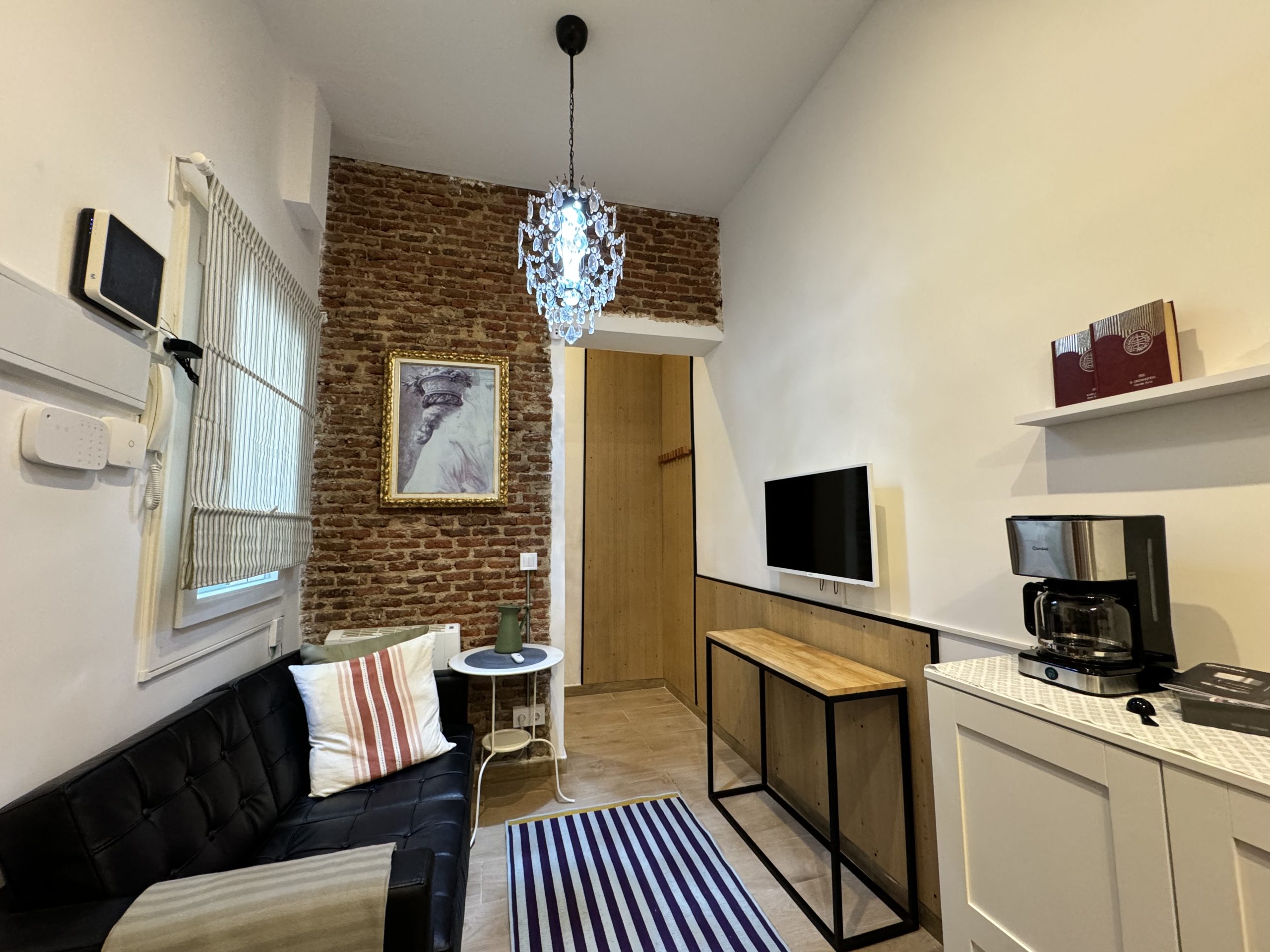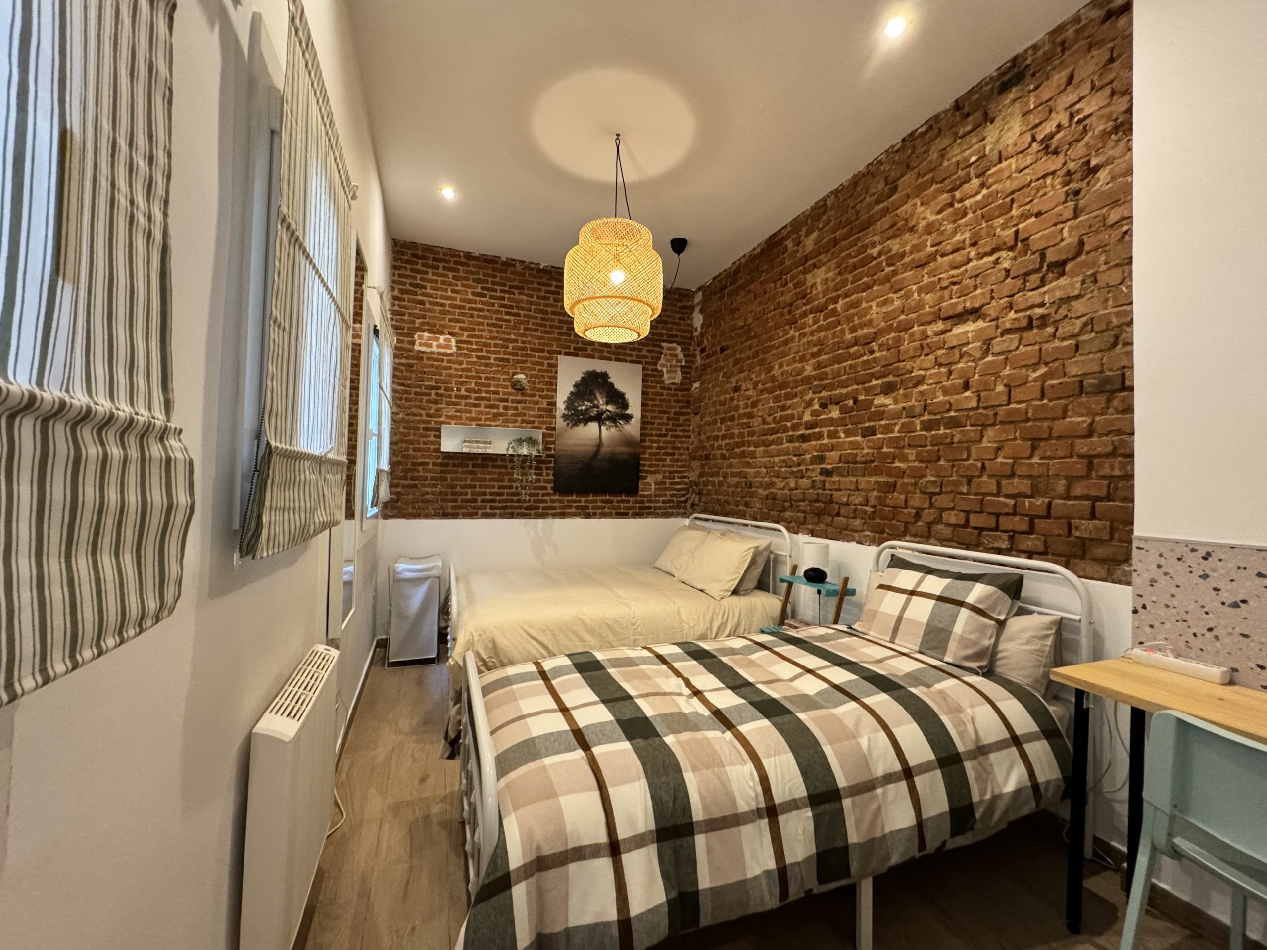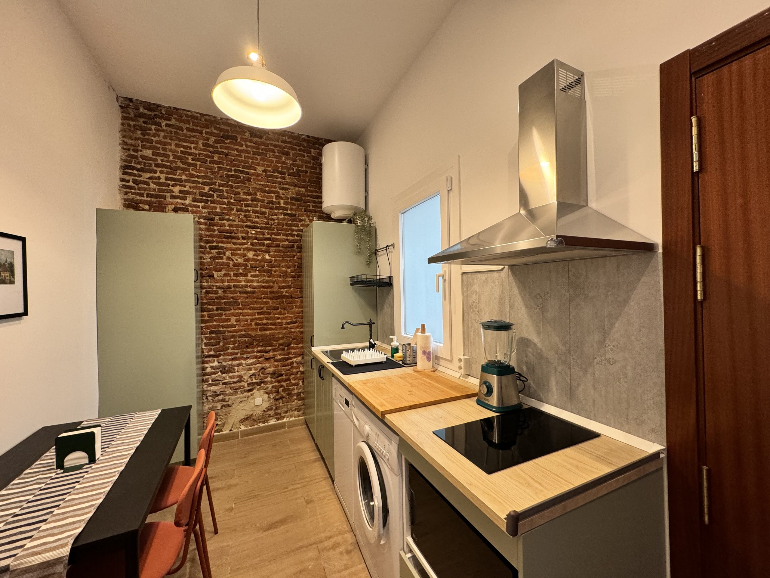 The apartment is located in the Bellas Vistas neighborhood in Tetuán, close to schools and universities such as the Polytechnic and Complutense University of Madrid. The city`s main tourist and historical attractions are just a few kilometers away. The building faces a beautiful park crossed by the old Amaniel Aqueduct, an ideal place for walking and enjoying the surroundings. With very high ceilings and exposed brick walls, this apartment offers an urban living experience with character and style.