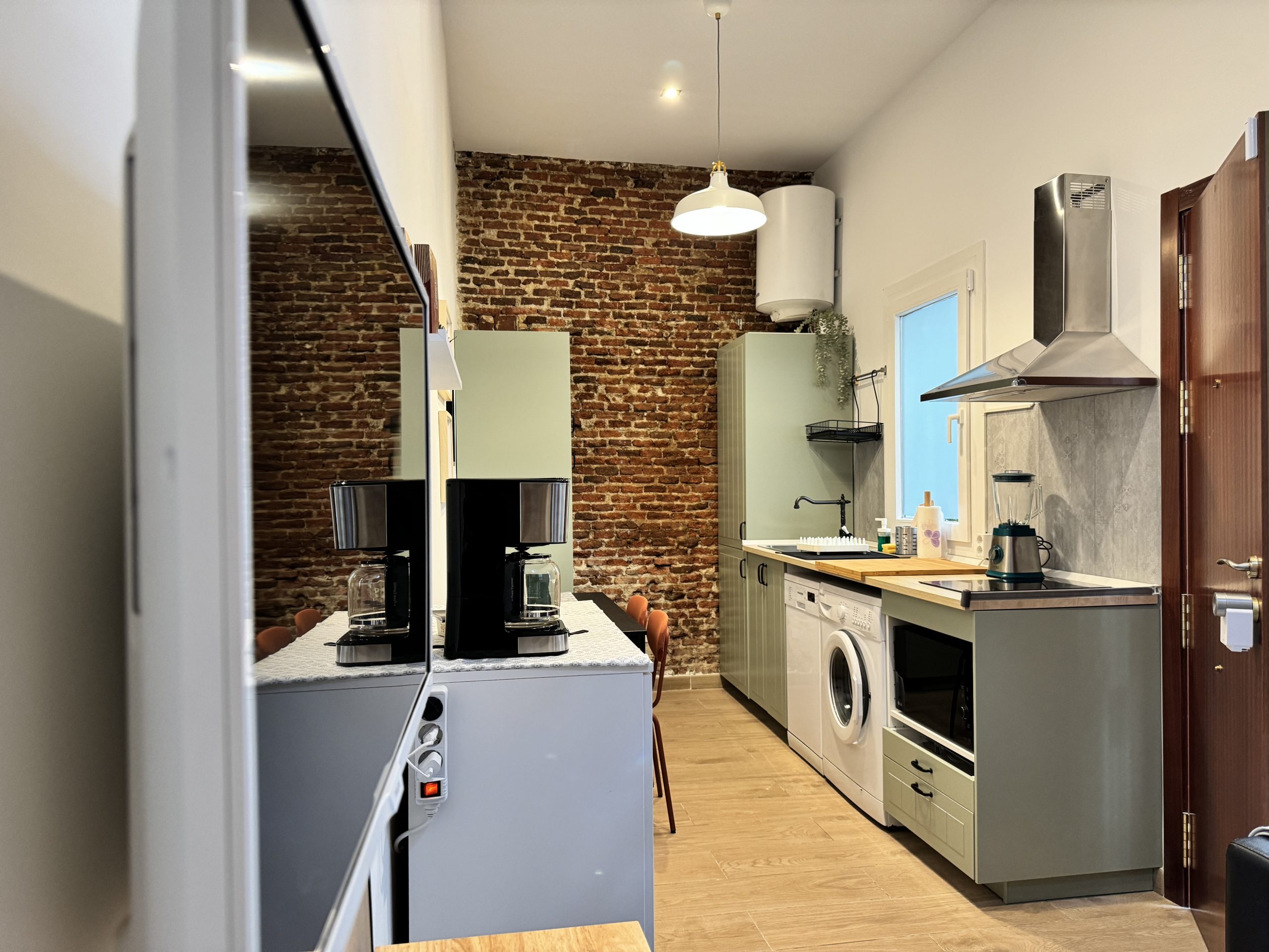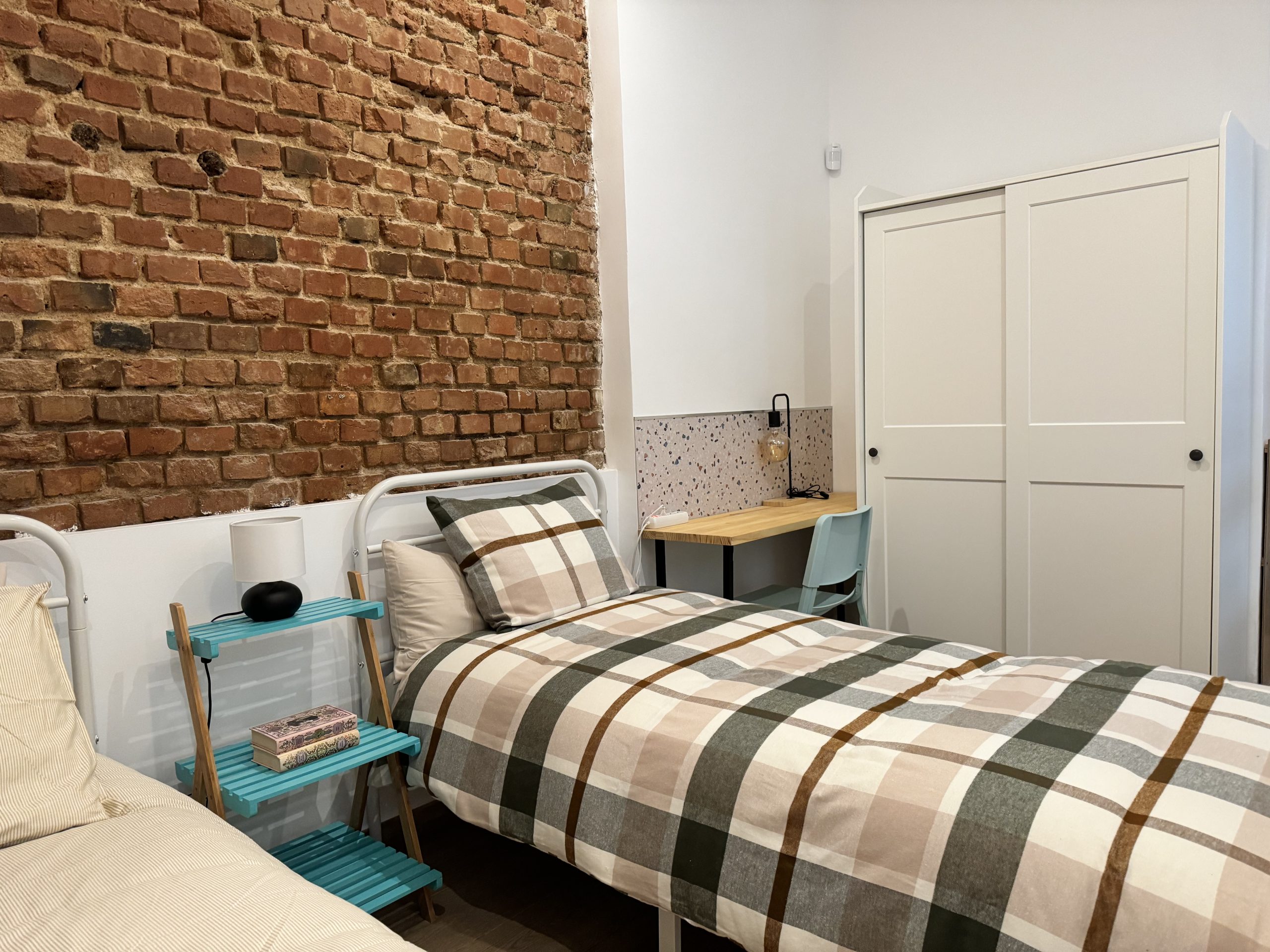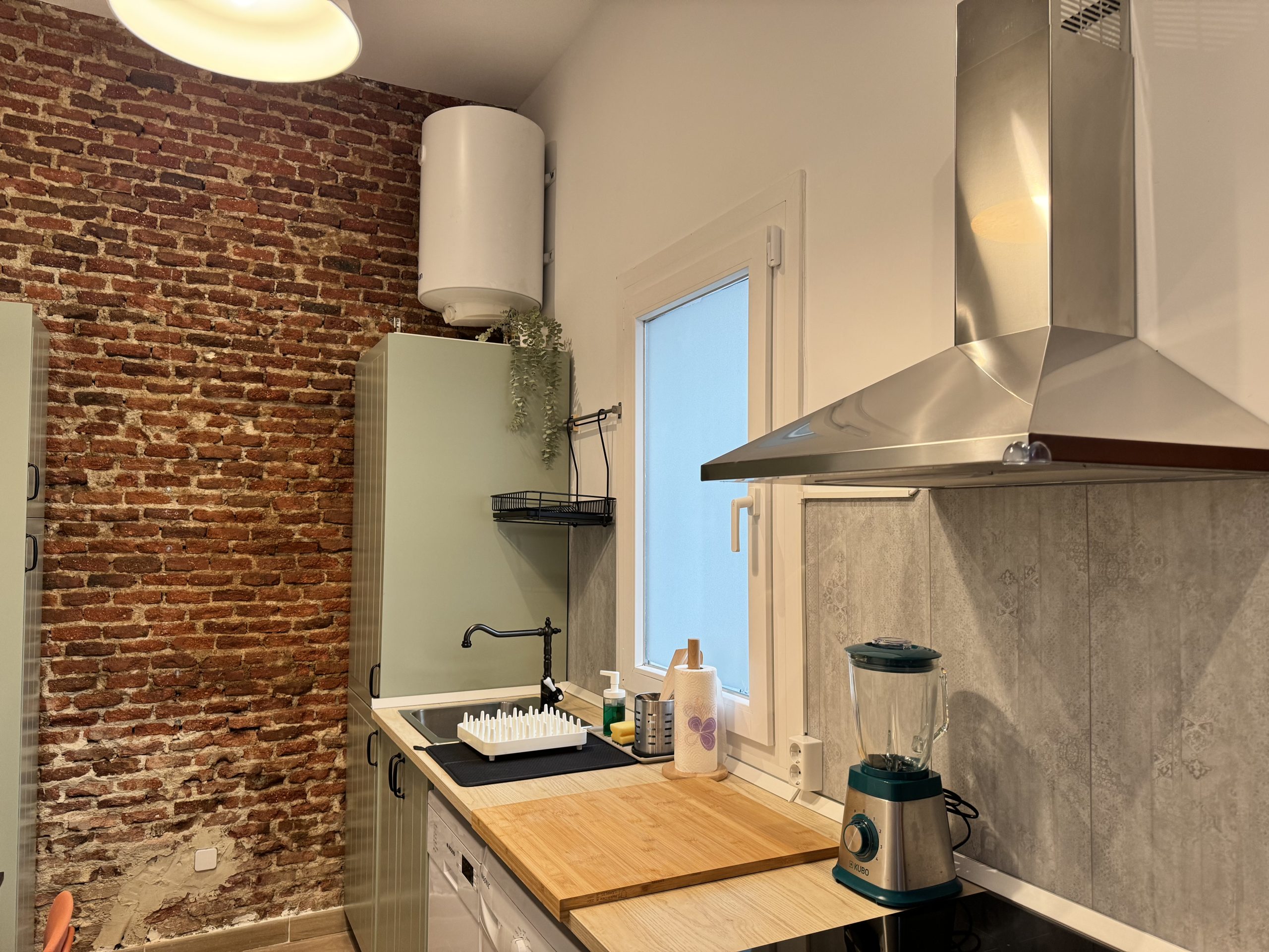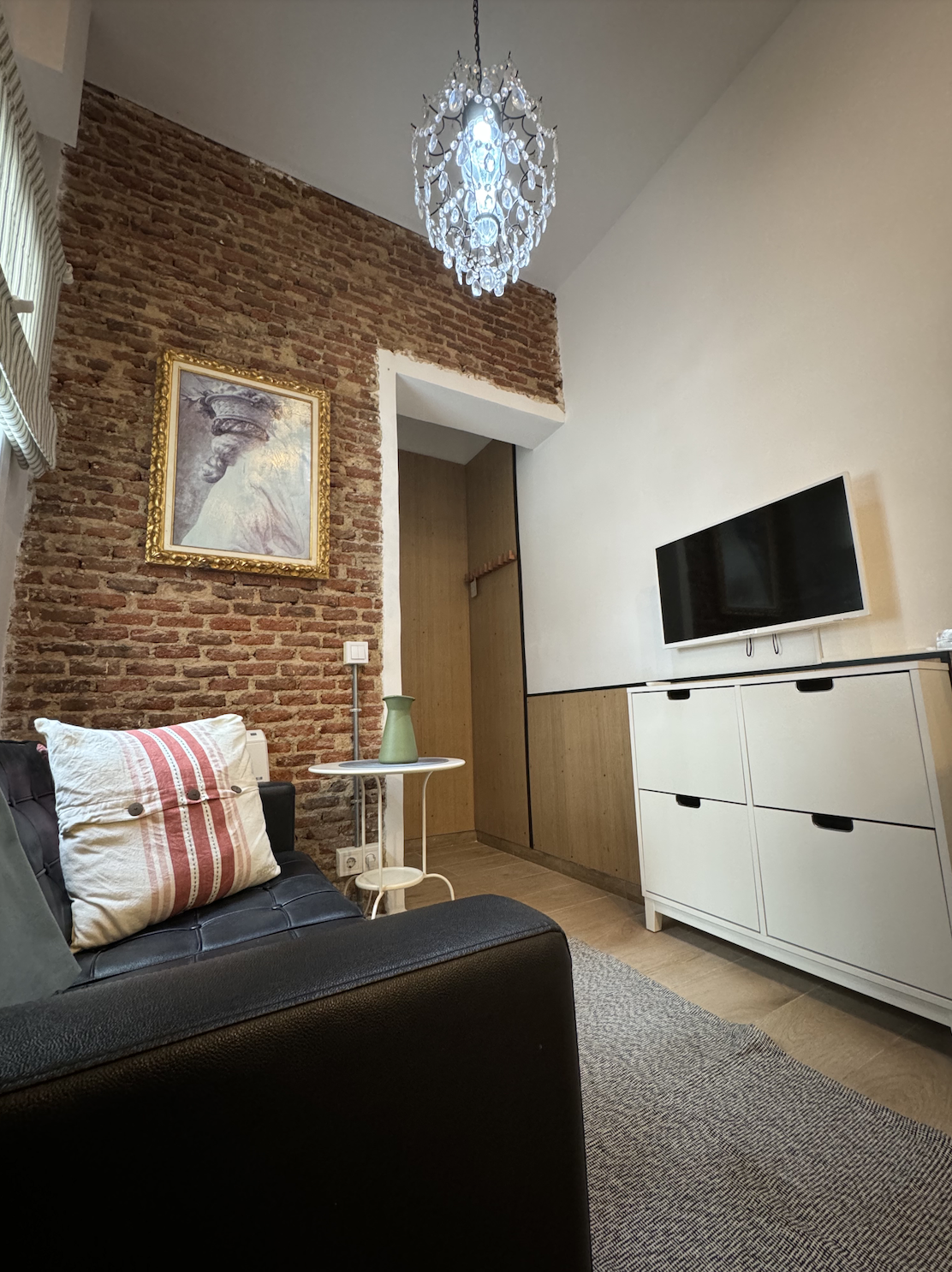 The apartment is located in the Bellas Vistas neighborhood in Tetuán, close to schools and universities such as the Polytechnic and Complutense University of Madrid. The city`s main tourist and historical attractions are just a few kilometers away. The building faces a beautiful park crossed by the old Amaniel Aqueduct, an ideal place for walking and enjoying the surroundings. With very high ceilings and exposed brick walls, this apartment offers an urban living experience with character and style.