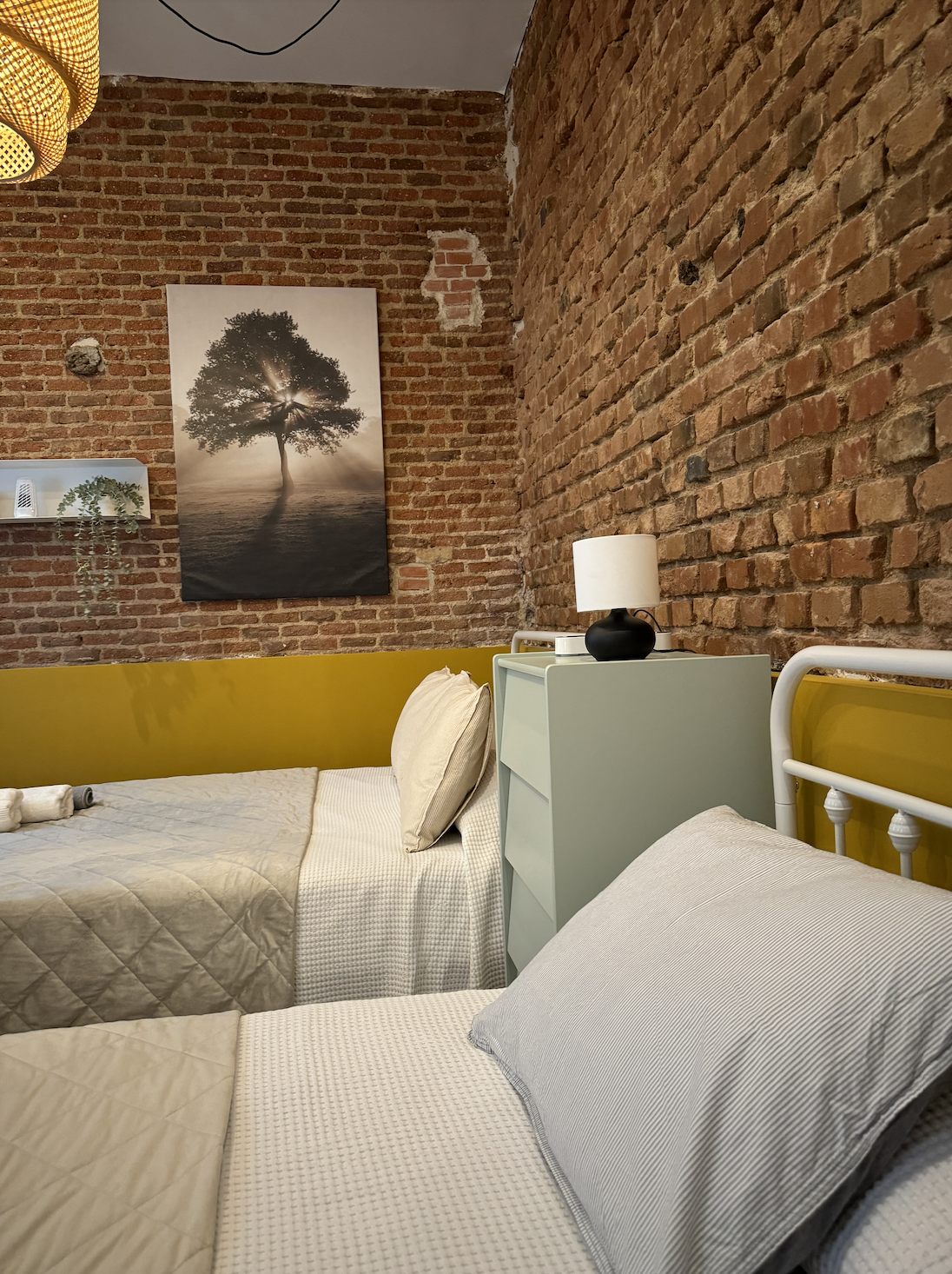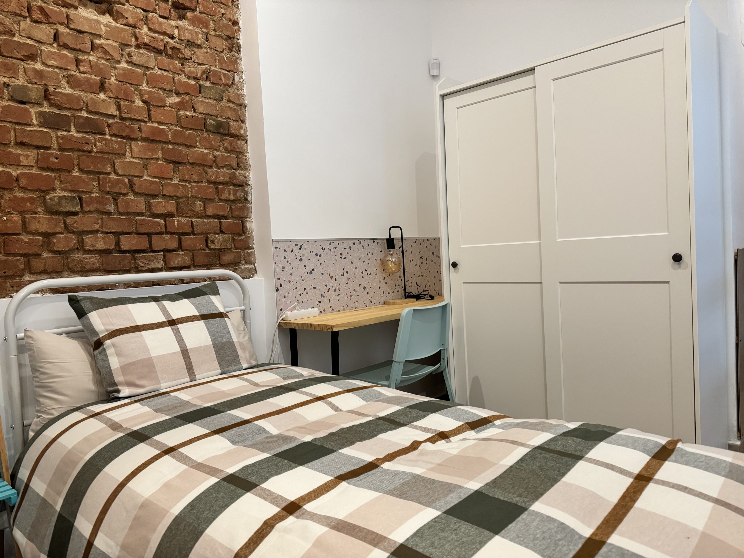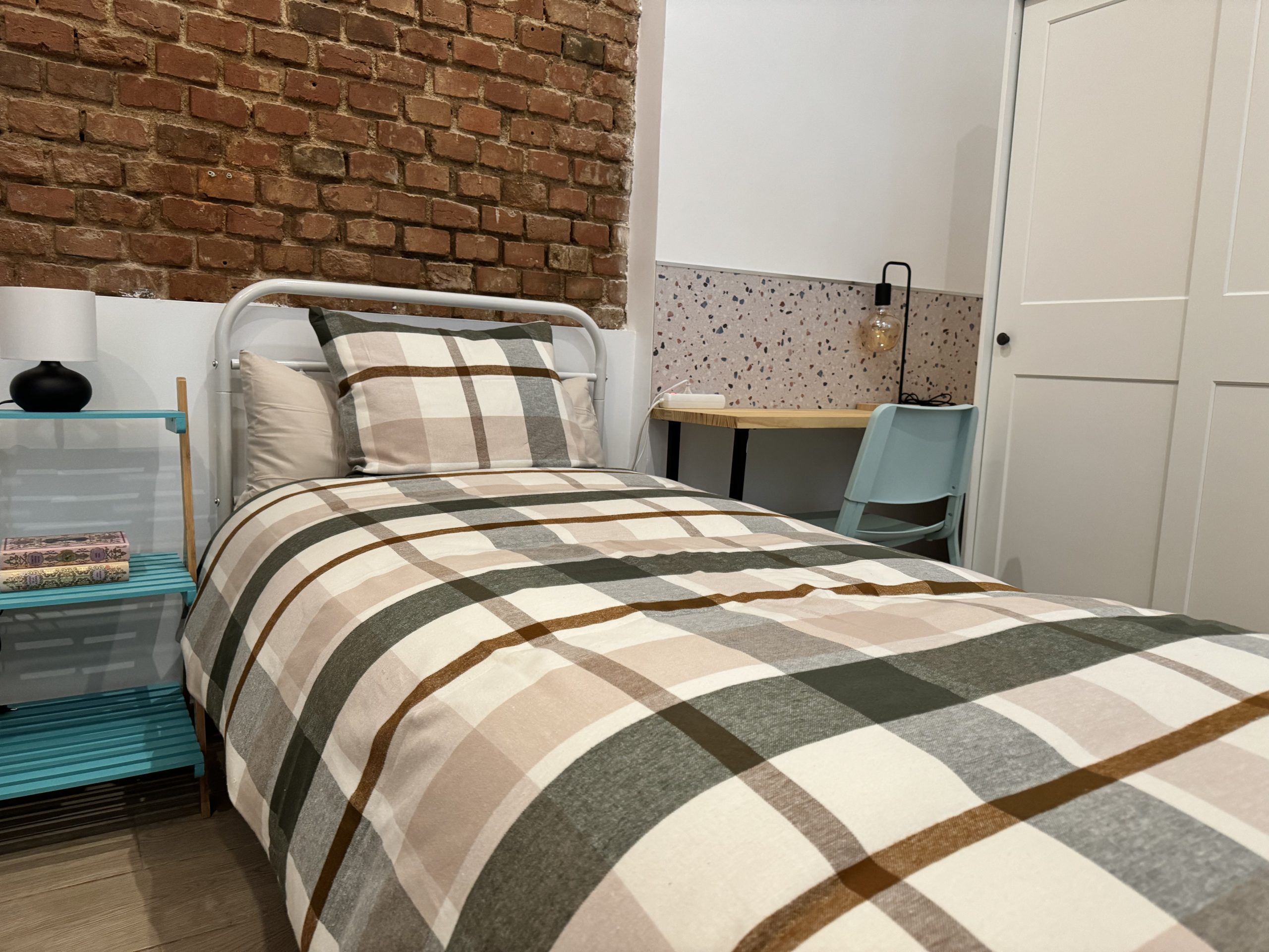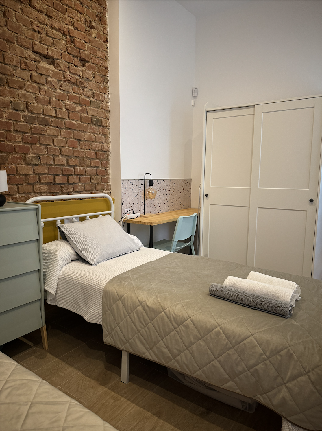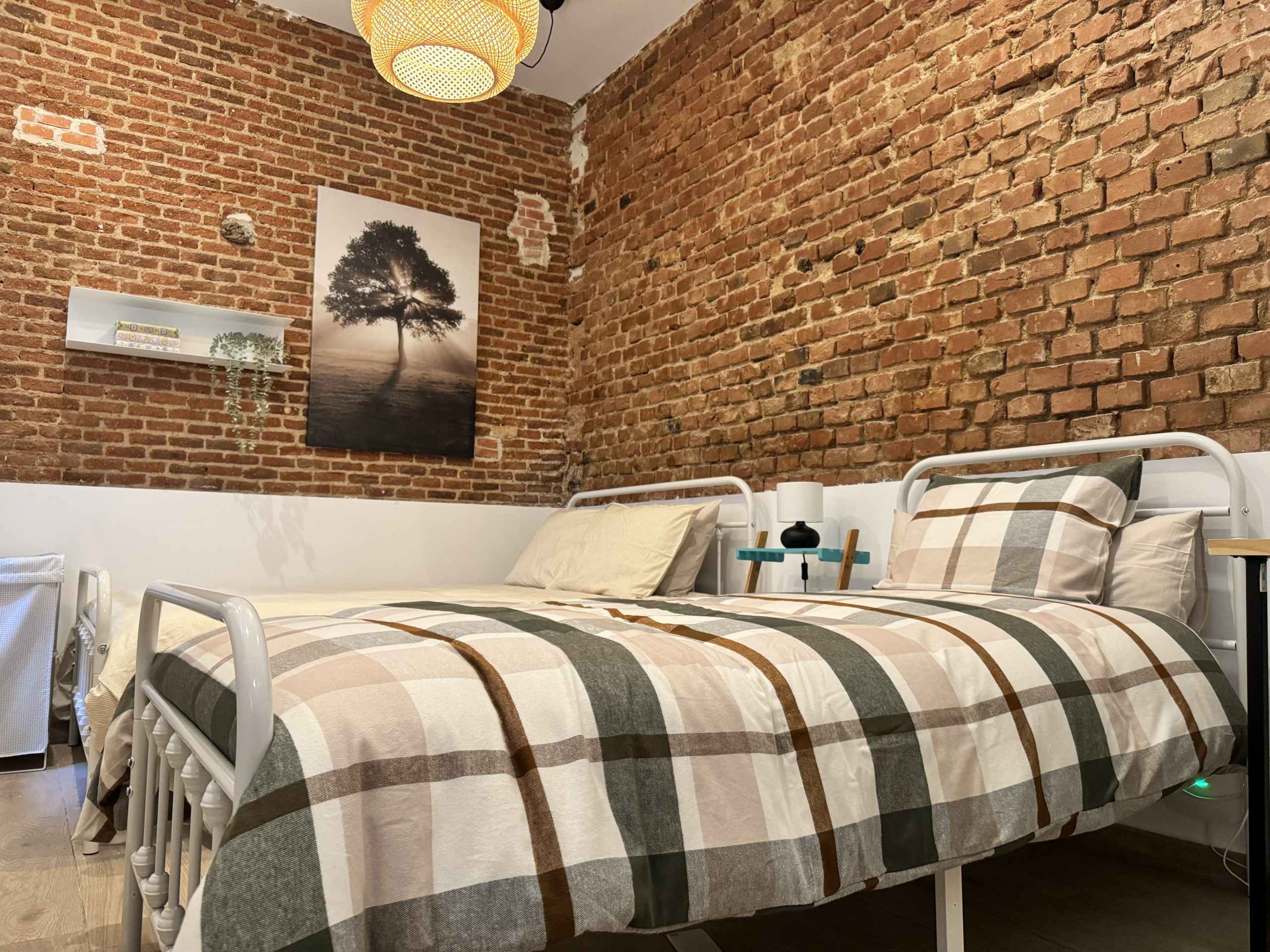 - One bedroom with a double bed and a single bed.