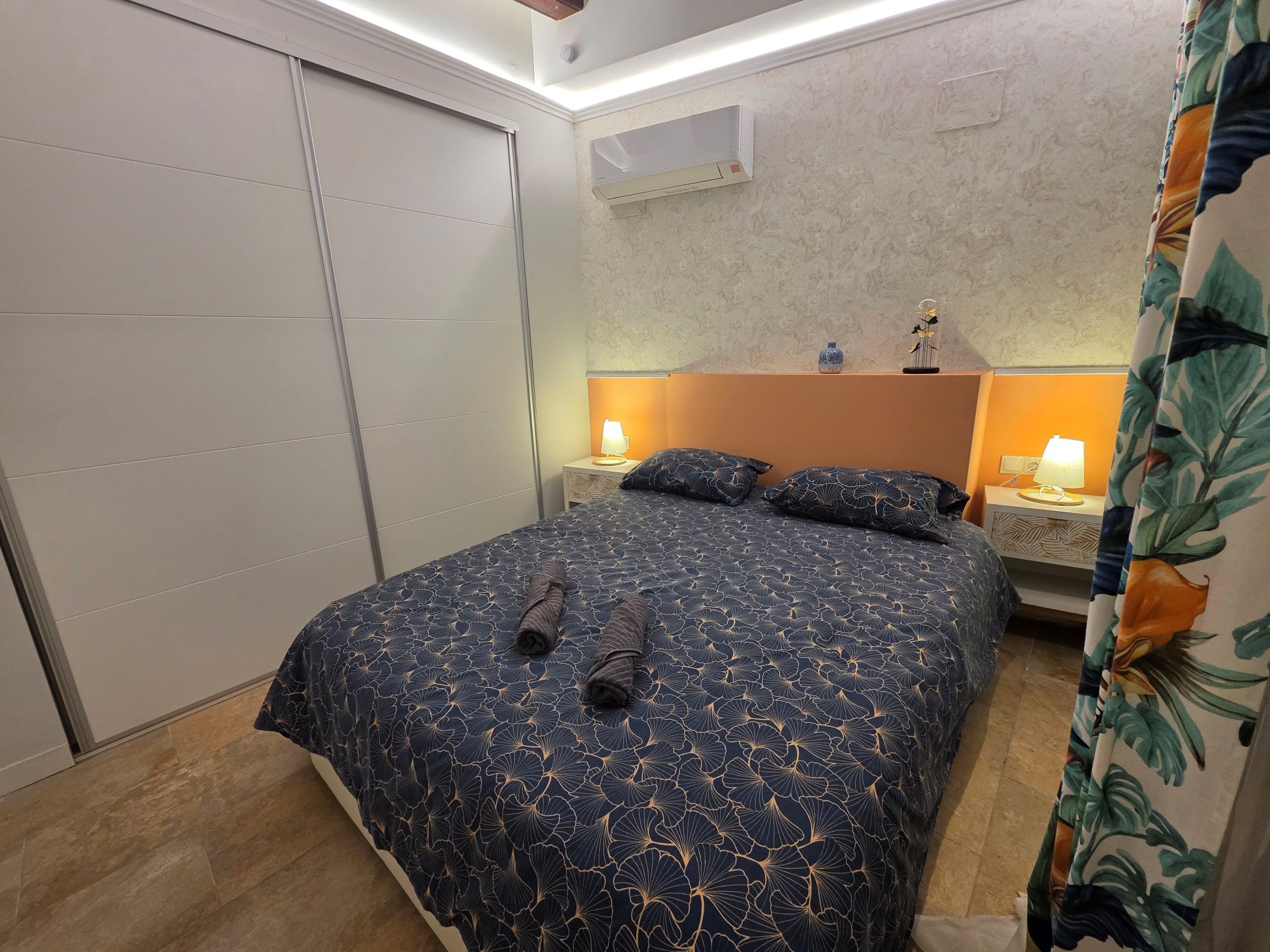 It has two bedrooms, the main bedroom has a double bed. Attached to the main bedroom you have an outside area where you can have your morning coffee.The second bedroom features a semi-double bed of 135 cm and a small desk, ideal for working from home.