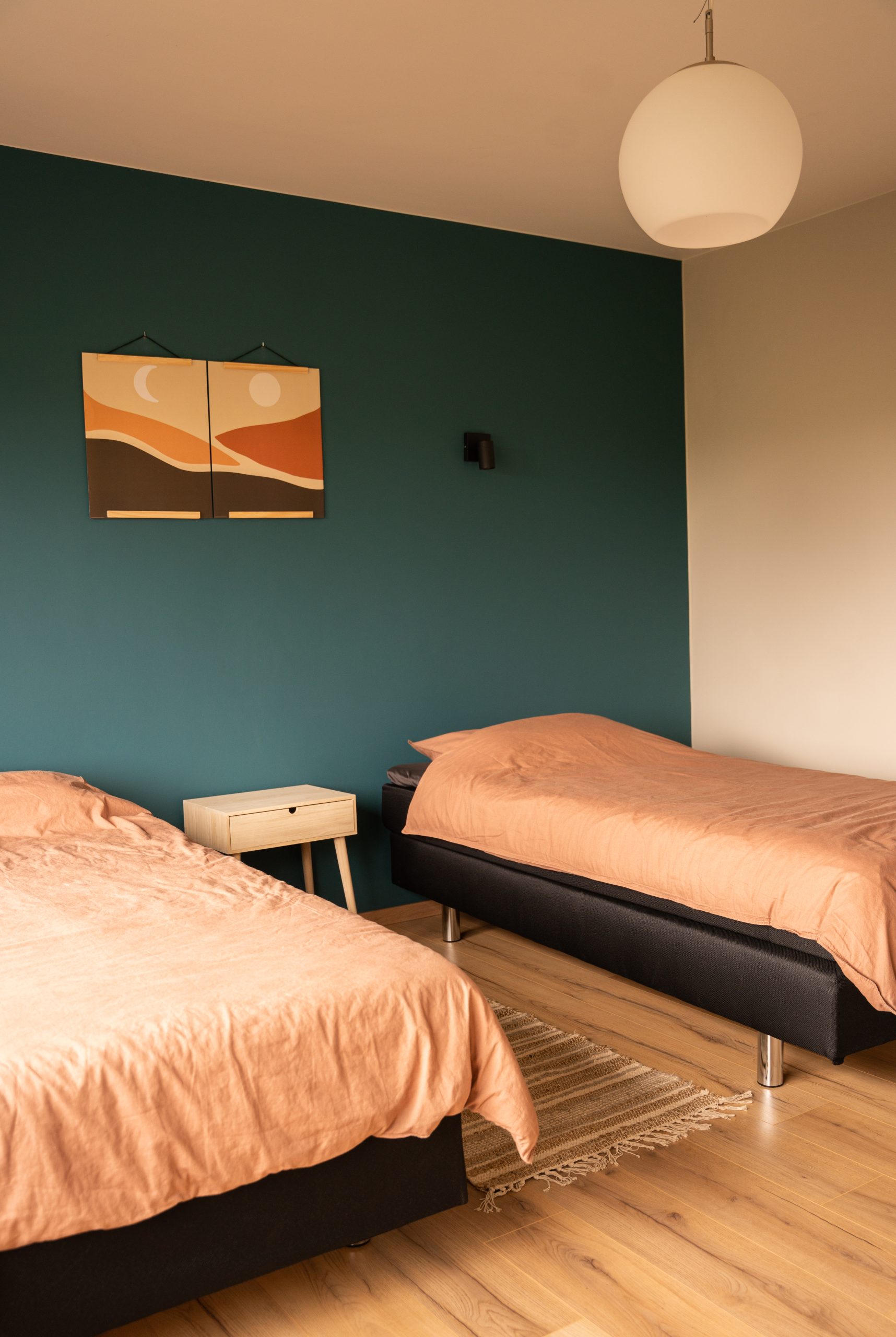 Located in the peaceful and quiet village Asbeek, this beautiful house features 2 spacious bedrooms with single beds, ensuring a comfortable and peaceful night`s sleep. Additionally, there is a third bedroom with a single bed and a desk, which is perfect for those who need to catch up on work or study.