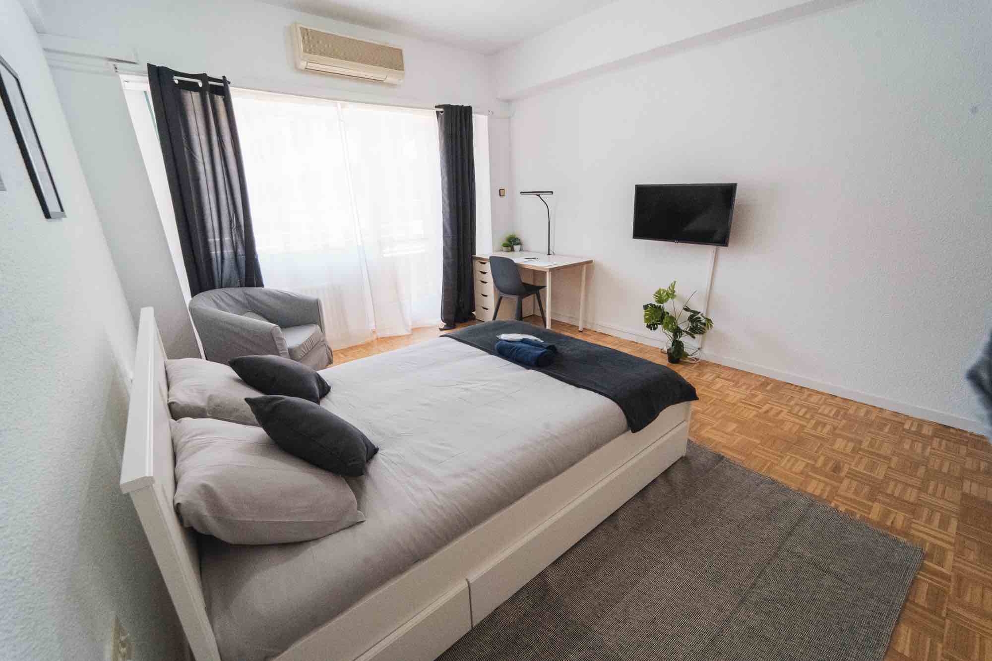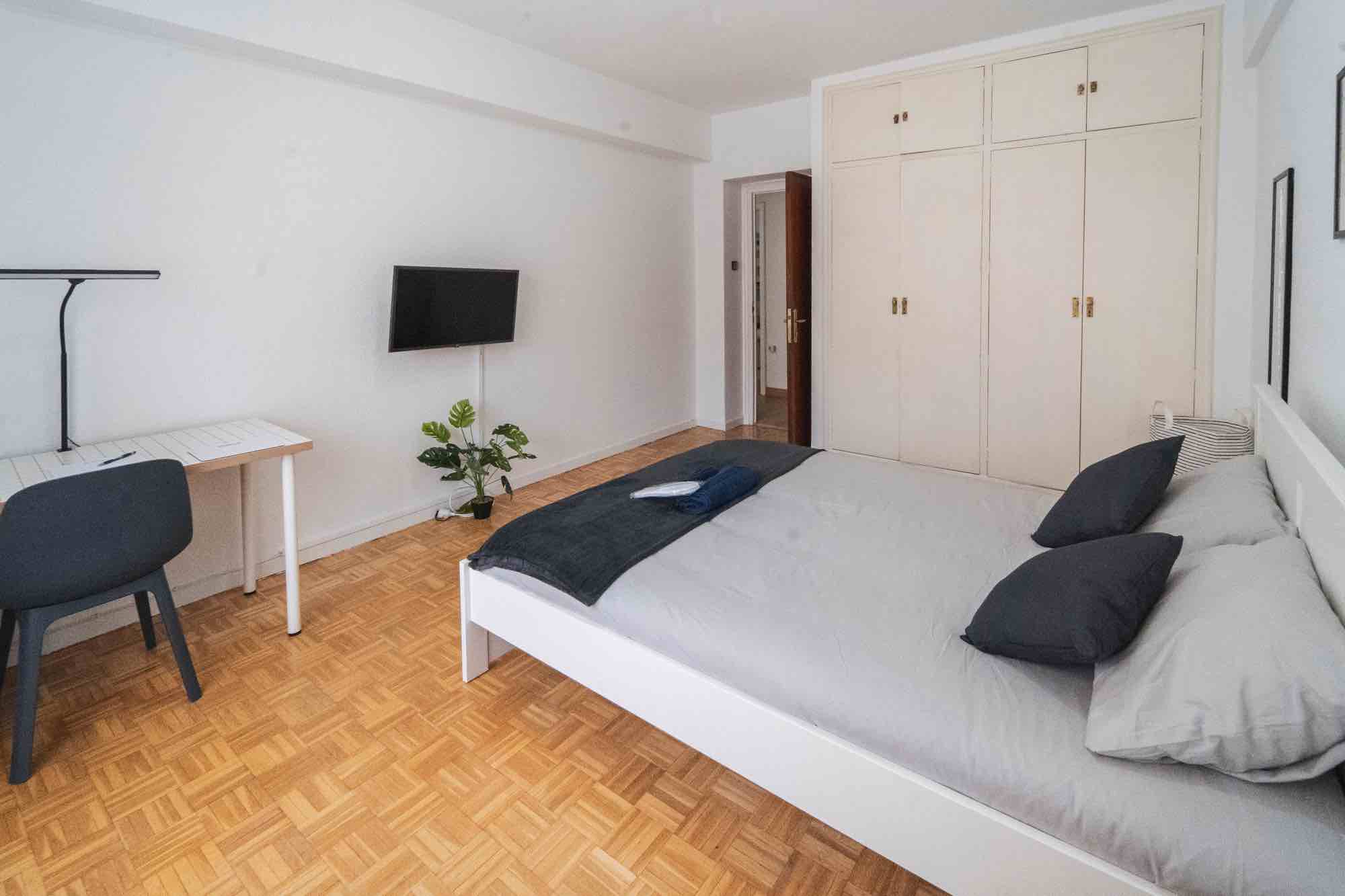 Coliving Madrid by Globexs (building Bernabeu) is situated in the Bernabeu area close to the Paseo de la Castellana, in the Chamartín district. The streets Concha Espina, Padre Damián, and Rafael Salgado surround the White´s domain. In the vicinity of the stadium are the most emblematic buildings of the capital, which constitute the "Manhattan of Madrid". This Globexs branded coliving is perfect for digital nomads who need a nice apartment to live and work in but not all for themselves. In this Coliving Madrid by Globexs, there are 3 bedrooms each one with its own key for privacy, only one person is allowed per bedroom. You have a choice between 3 comfortable bedrooms, here are the details of the London bedroom.