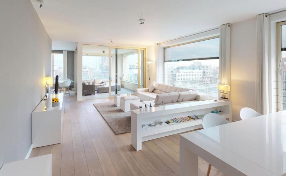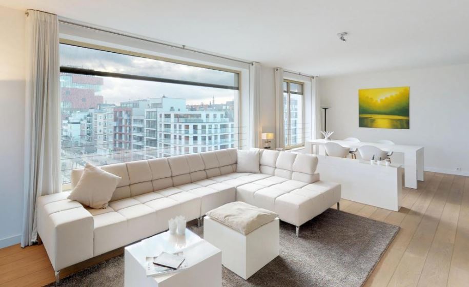 Westkaai 41 is a luxury expat rental in Antwerp. It is a fantastic and design-furnished apartment of 141 m² including winter terrace on the fifth floor in the first of the famous Westkaai-towers of "het Eilandje". These towers embody the development of this vibrant "Eilandje". The marina and many unique restaurants and bars provide a permanent holiday feeling. The light-flooded living space adjoints a beautiful winter terrace of 18 m². The MAS is the eye-catcher of a breathtaking view! The living space leads to a perfectly integrated kitchen with all the common appliances. This Bulthaup kitchen matches the style of the rest of the apartment: stylish and sleek. From the night hall you walk through to the guest toilet, wardrobe, 2 bedrooms and bathroom.