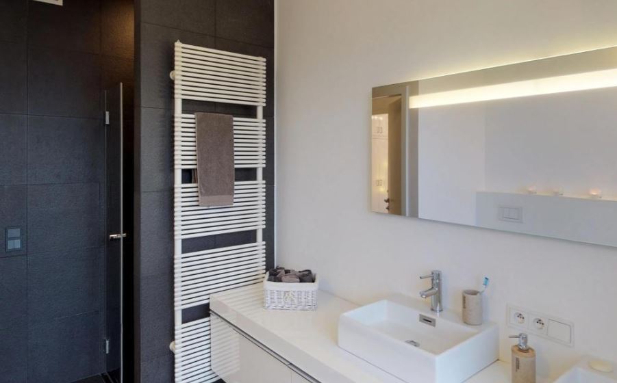 In the master bedroom (18 m²) you wake up with a stunning view on " ´t Eilandje" and the Schelde. The guest room (10.5 m²) has spacious built-in wardrobes and foldable wall-mounted beds for 2 persons. All the rooms have floor heating. The spacious design bathroom (10 m²) contains 2 sinks, bath, shower and toilet.
