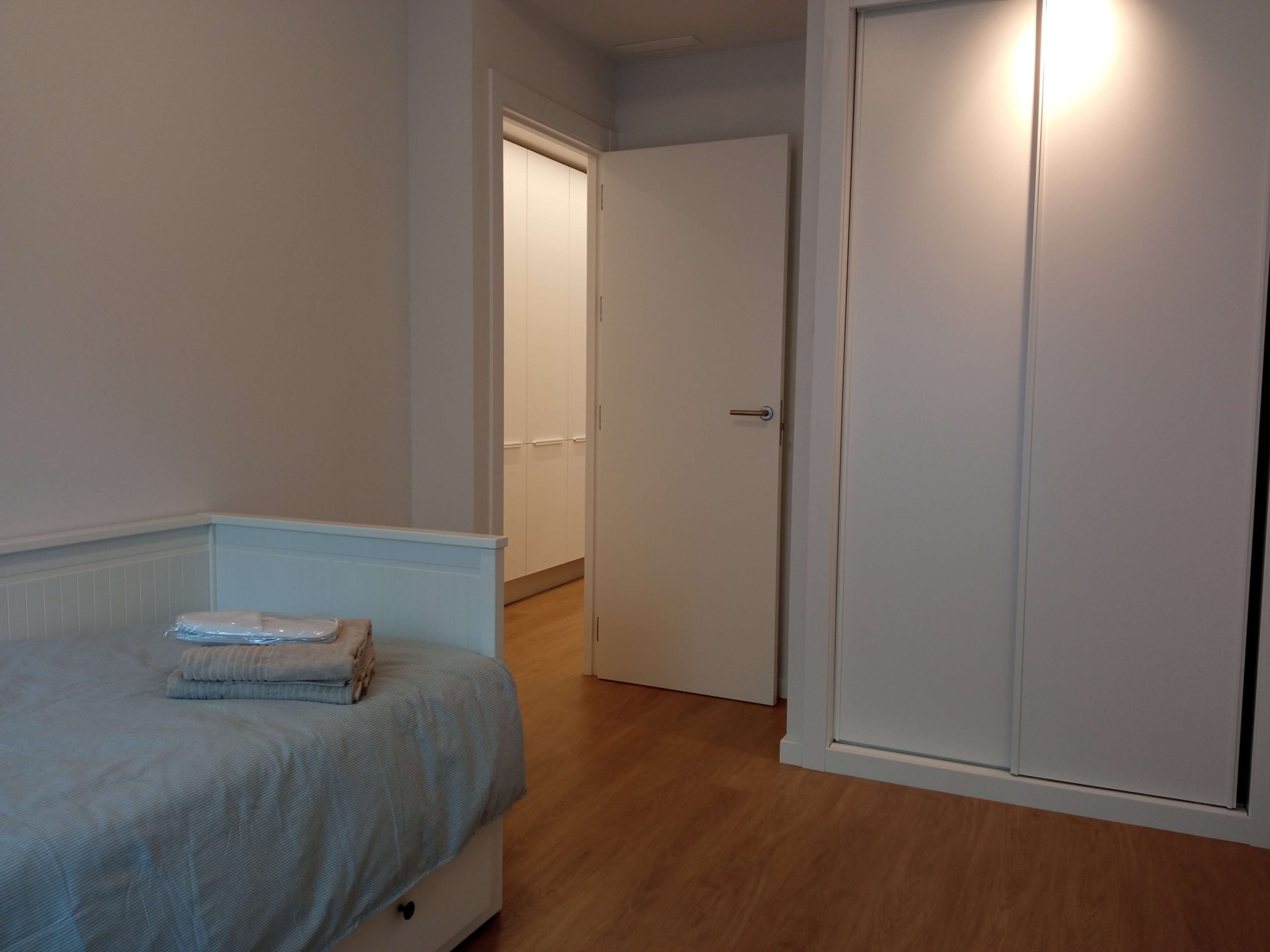 The apartment is located near the center of Valencia, near Finca Roja. It´s in a new building and comes furnished with contemporary appliances. It features a double bedroom with an attached bathroom that has a shower. The apartment has white and wooden furnishings, offers storage space, and includes bed linens, towels, and WIFI in the price. Also has a small balcony with street view.