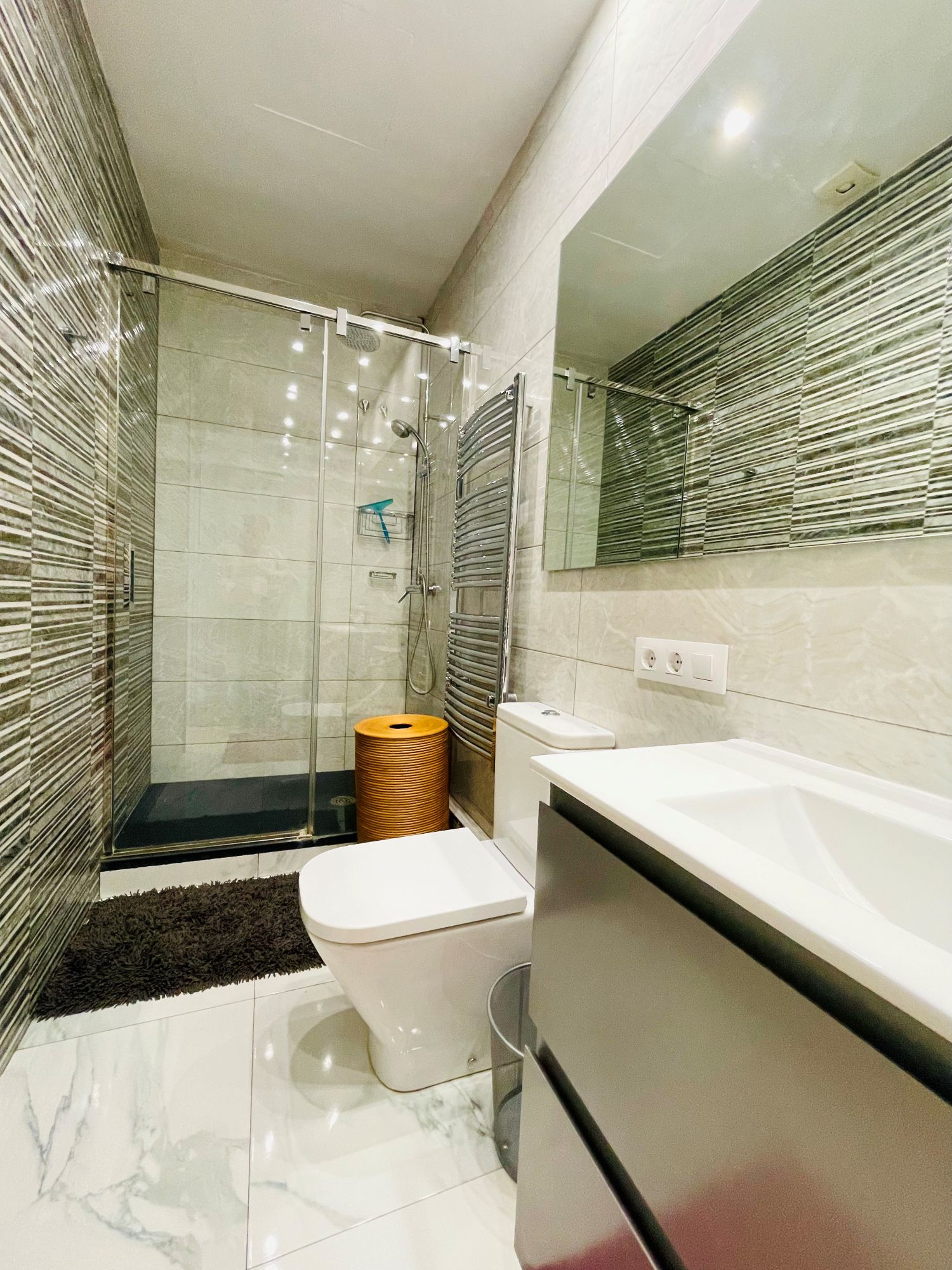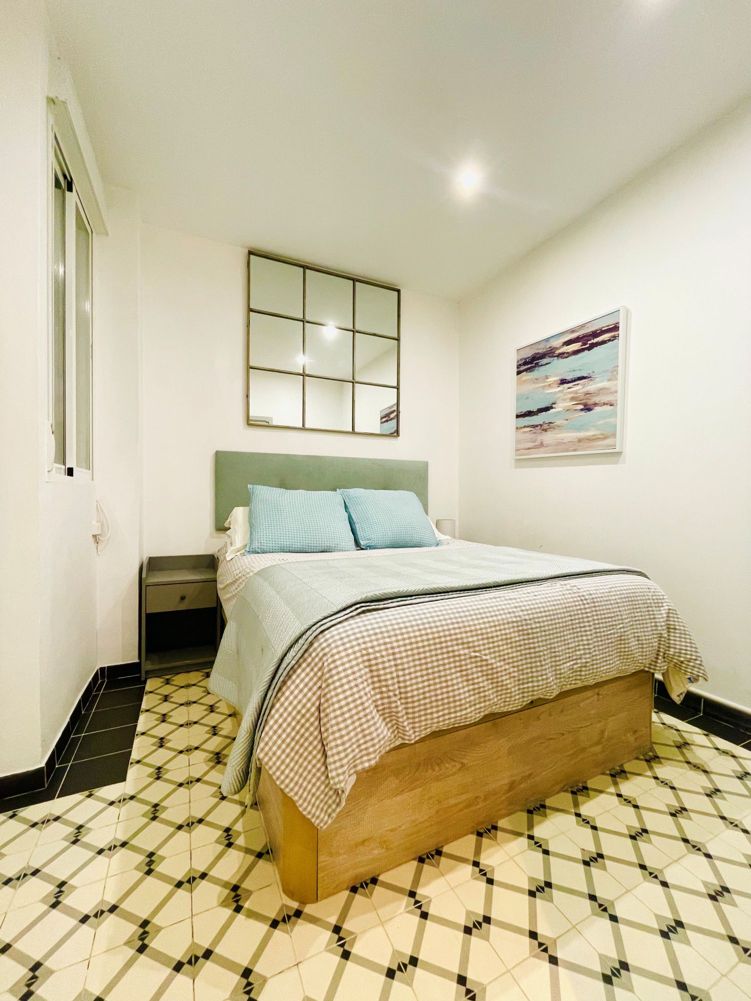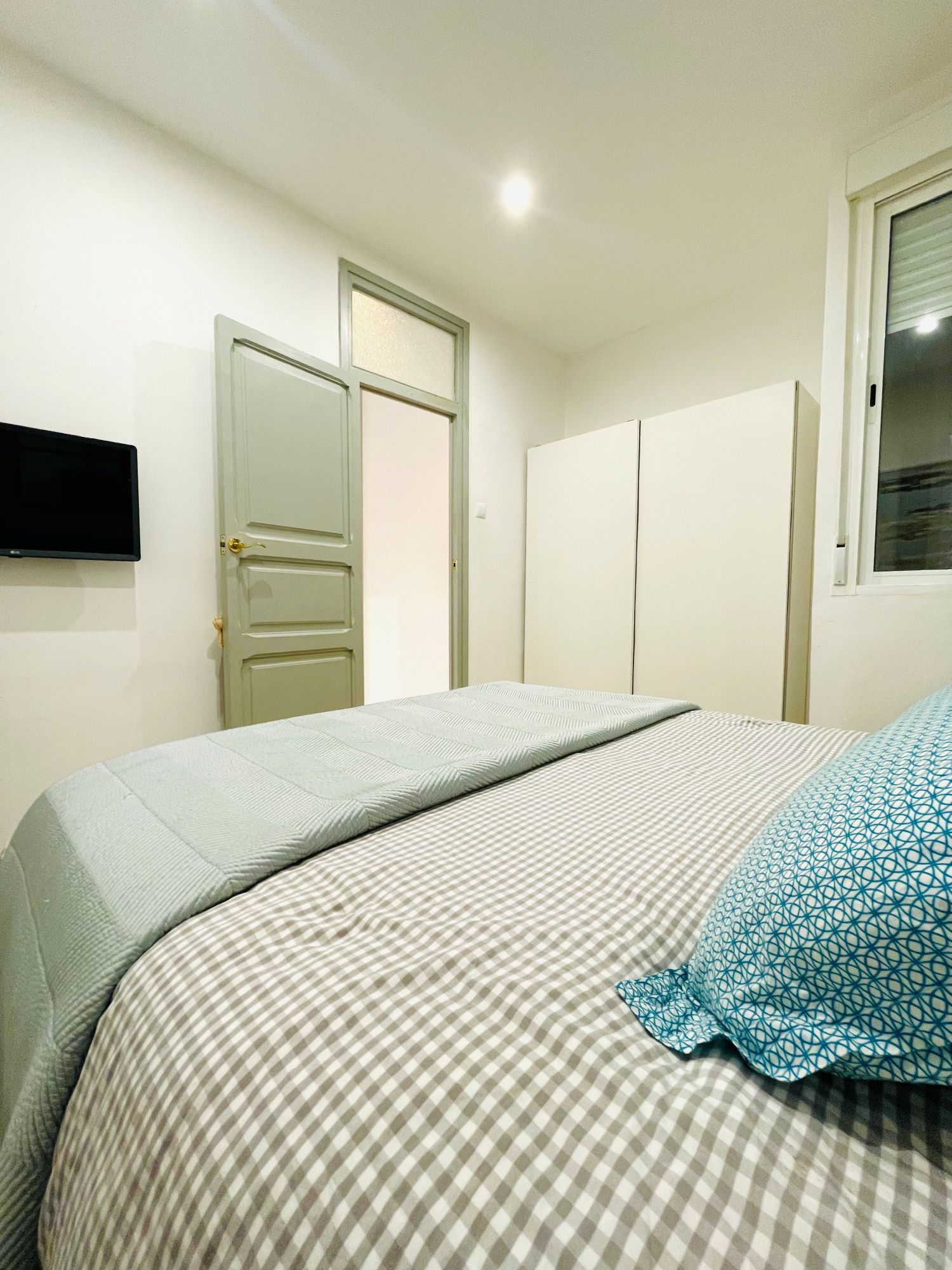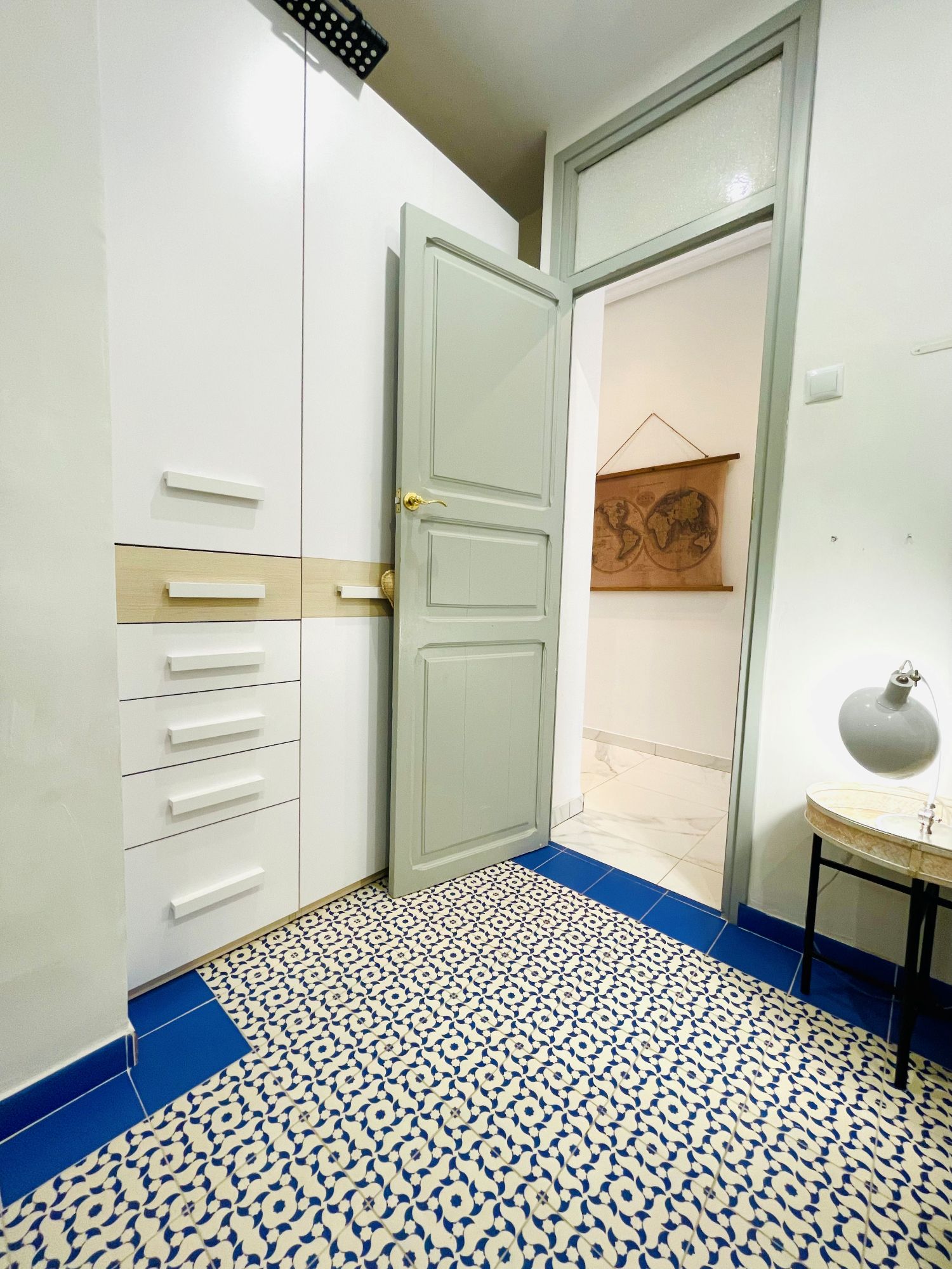 Matias Perello is a lovely expat apartment in Ruzafa. It is an entry ready apartment in Valencia. It has two bedrooms. The first bedroom comes with a bunk bed, a desk and a large closet. The master bedroom comes with a double bed, large closet and also a TV. The bathroom has a walk-in shower, washing basin and of course, a toilet.