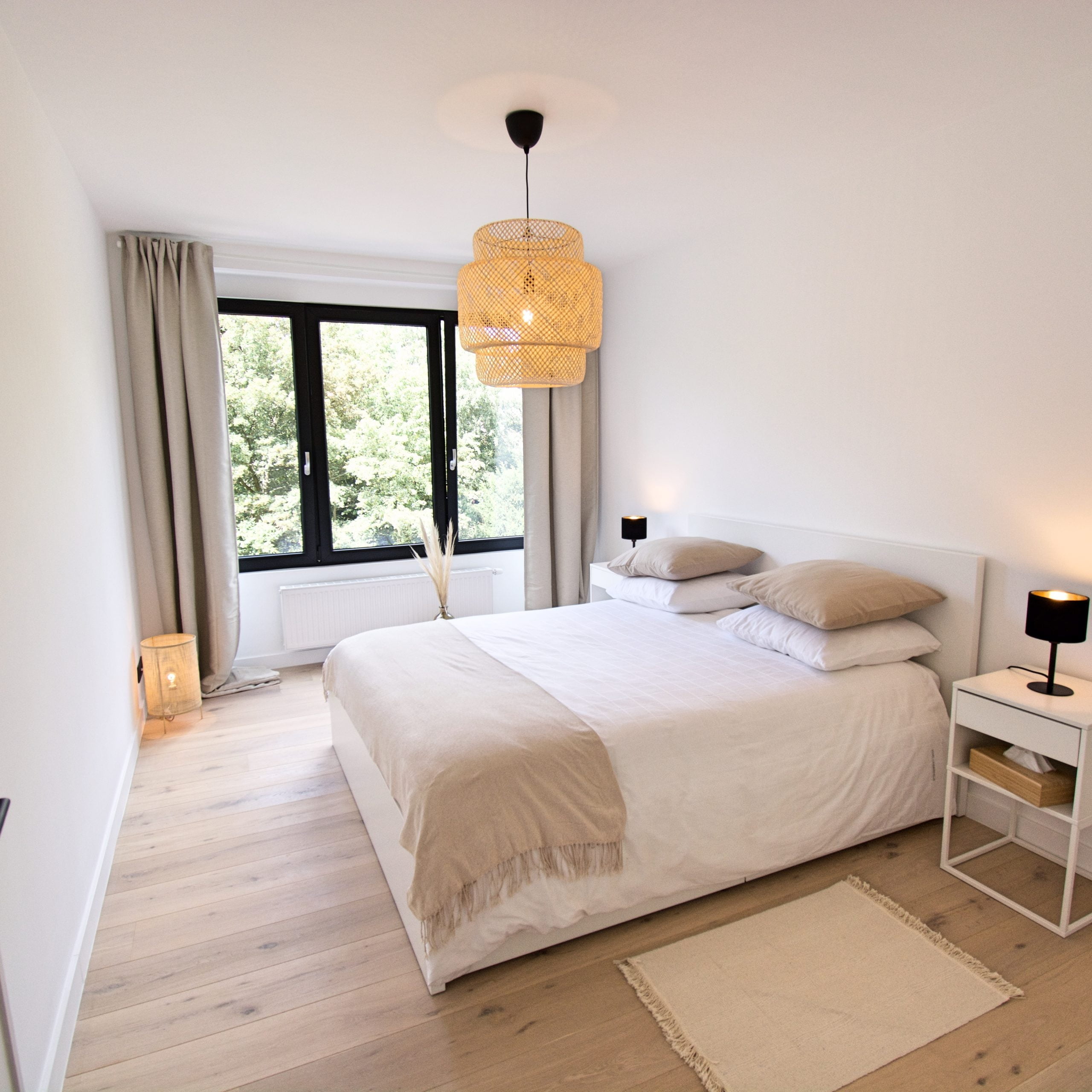 Coreman is a modern home in Antwerp for expats, located in the south area of the city. It concerns a 85m² recently renovated apartment with excellent distribution. Upon entering the entrance hall, your attention is immediately captured by the beautiful and high-quality parquet floor, which has been completely extended throughout the entire apartment.