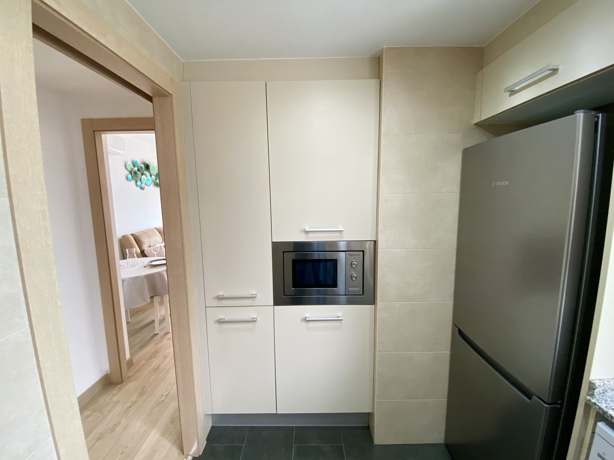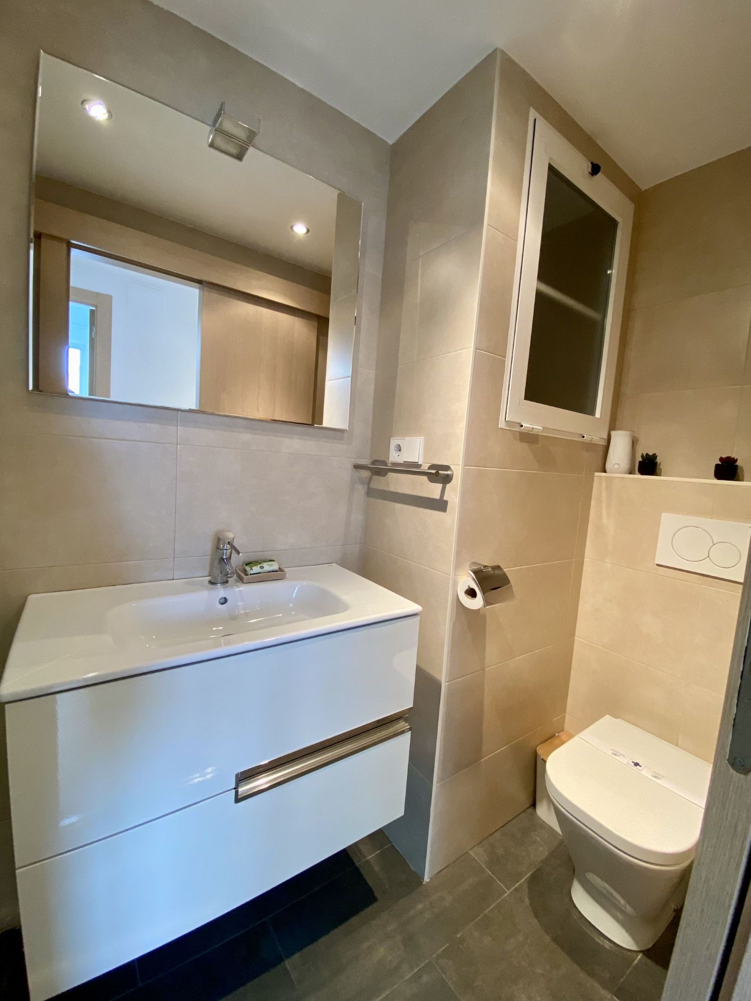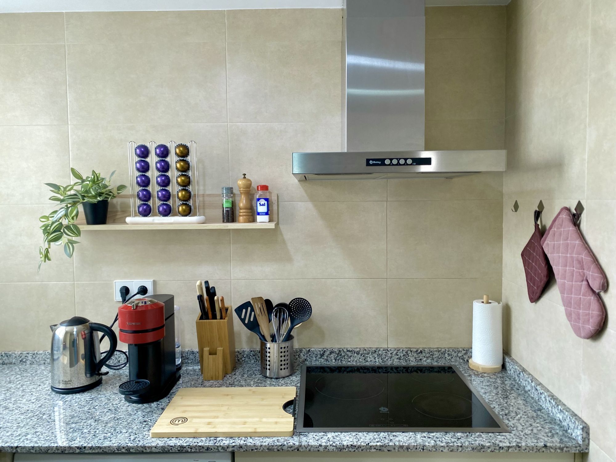 Perfectly situated, this gem of a property boasts exceptional value, making it an ideal choice for those looking to enjoy the true essence of Spanish living. There is one bedroom with double bed, one bedroom with single bed, and a third room prepared with desk and ergonomic chair for your daily work time.