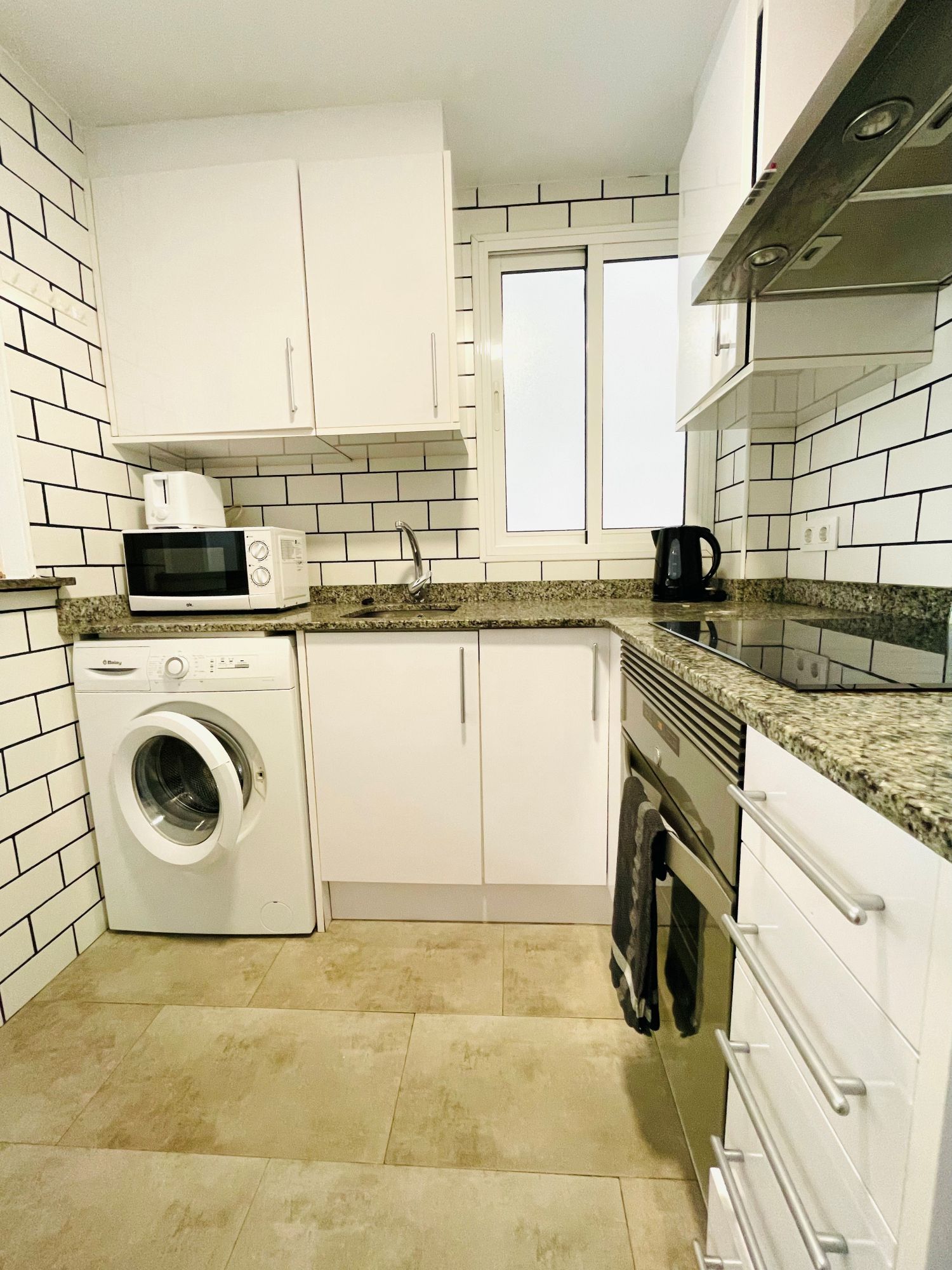 Looking for a decent, practical, and quality home for your temporary stay in Valencia? This bright, spacious, and completely furnished temporary home, give you what you need. The master bedroom has a large king-size bed, the kitchen features a cooking island, a microwave, a coffee machine, and even a washing machine. It has all the ingredients you need to create a fantastic meal. The open plan kitchen creates an open and spacious vibe.