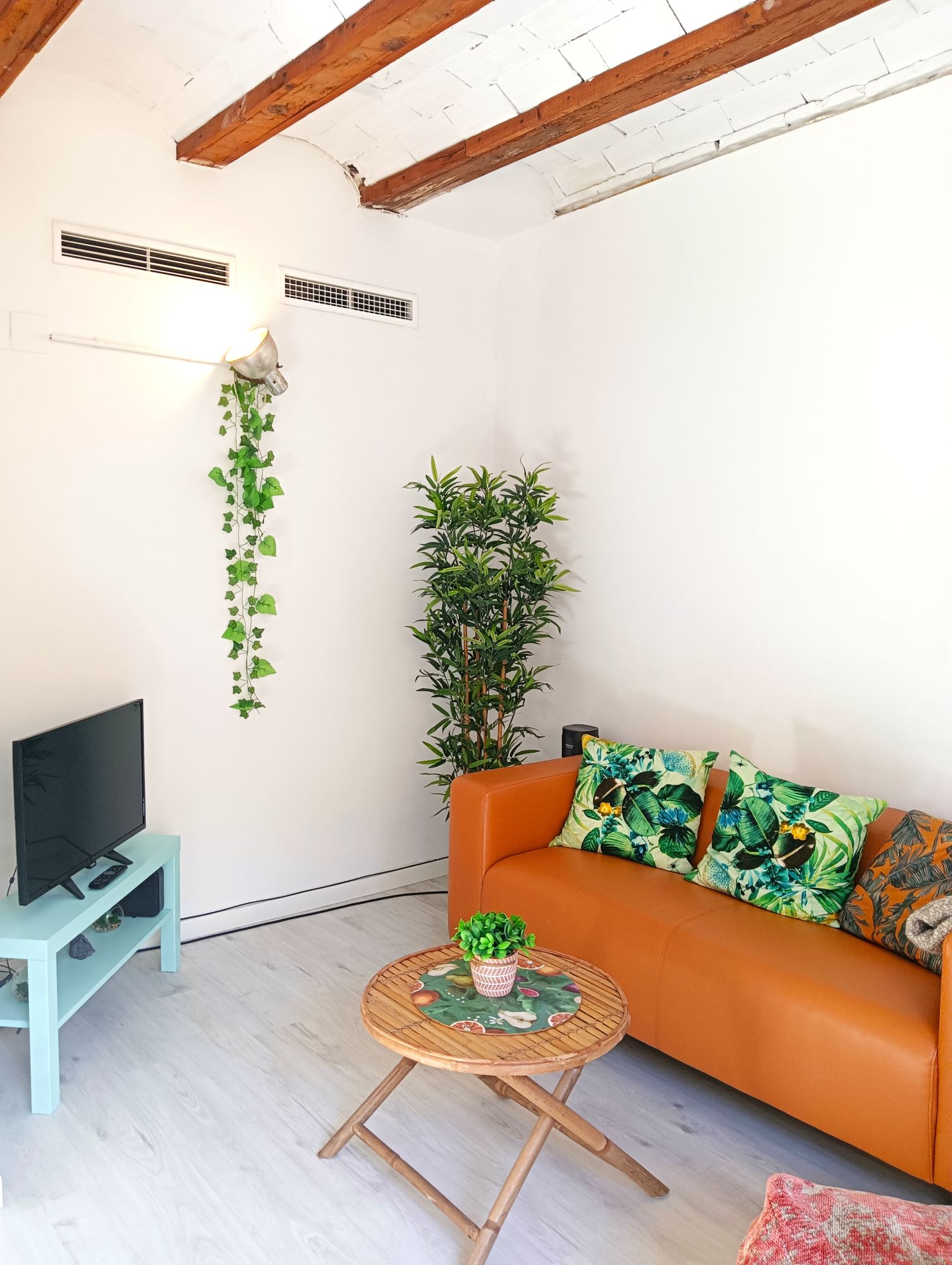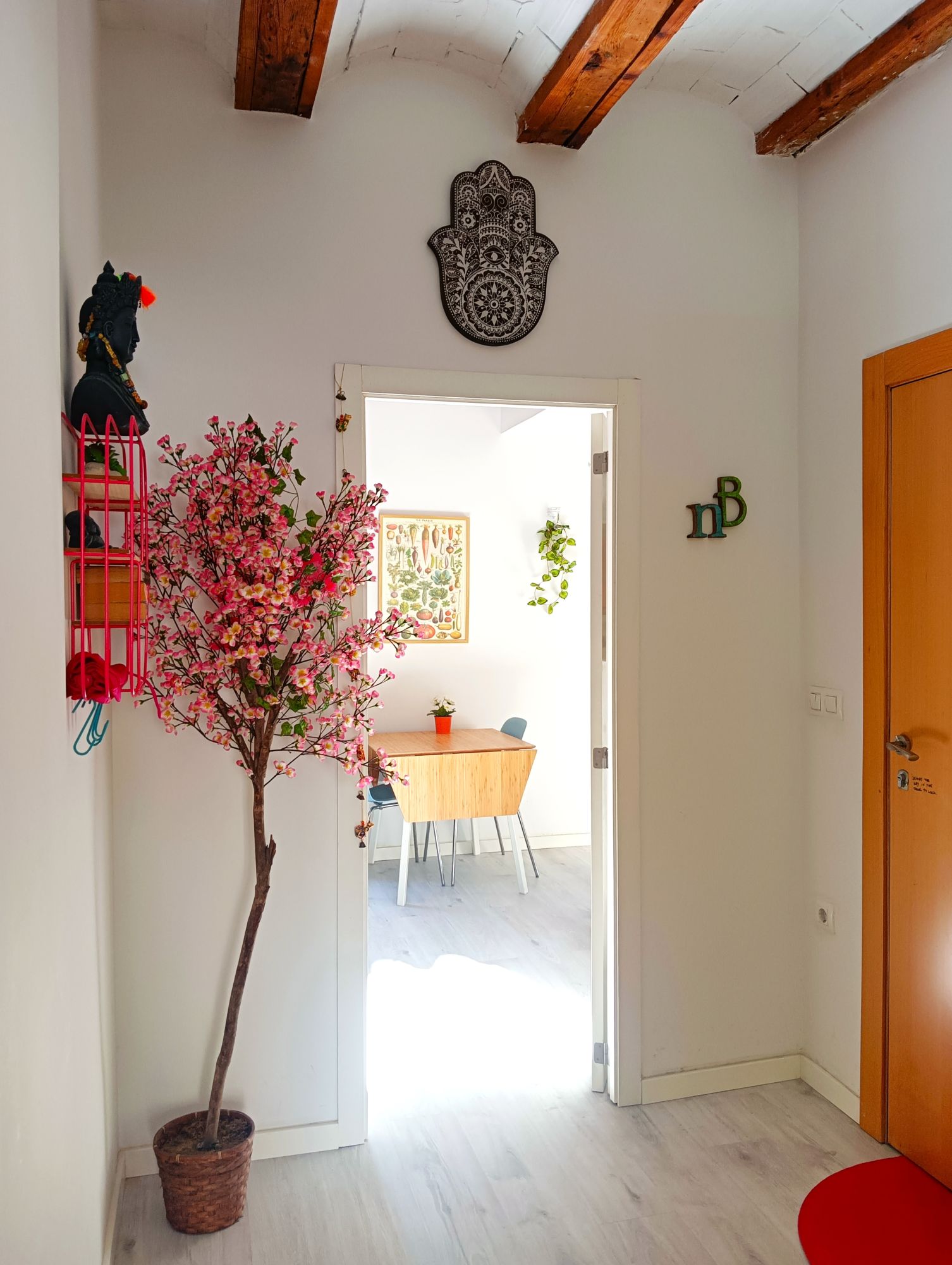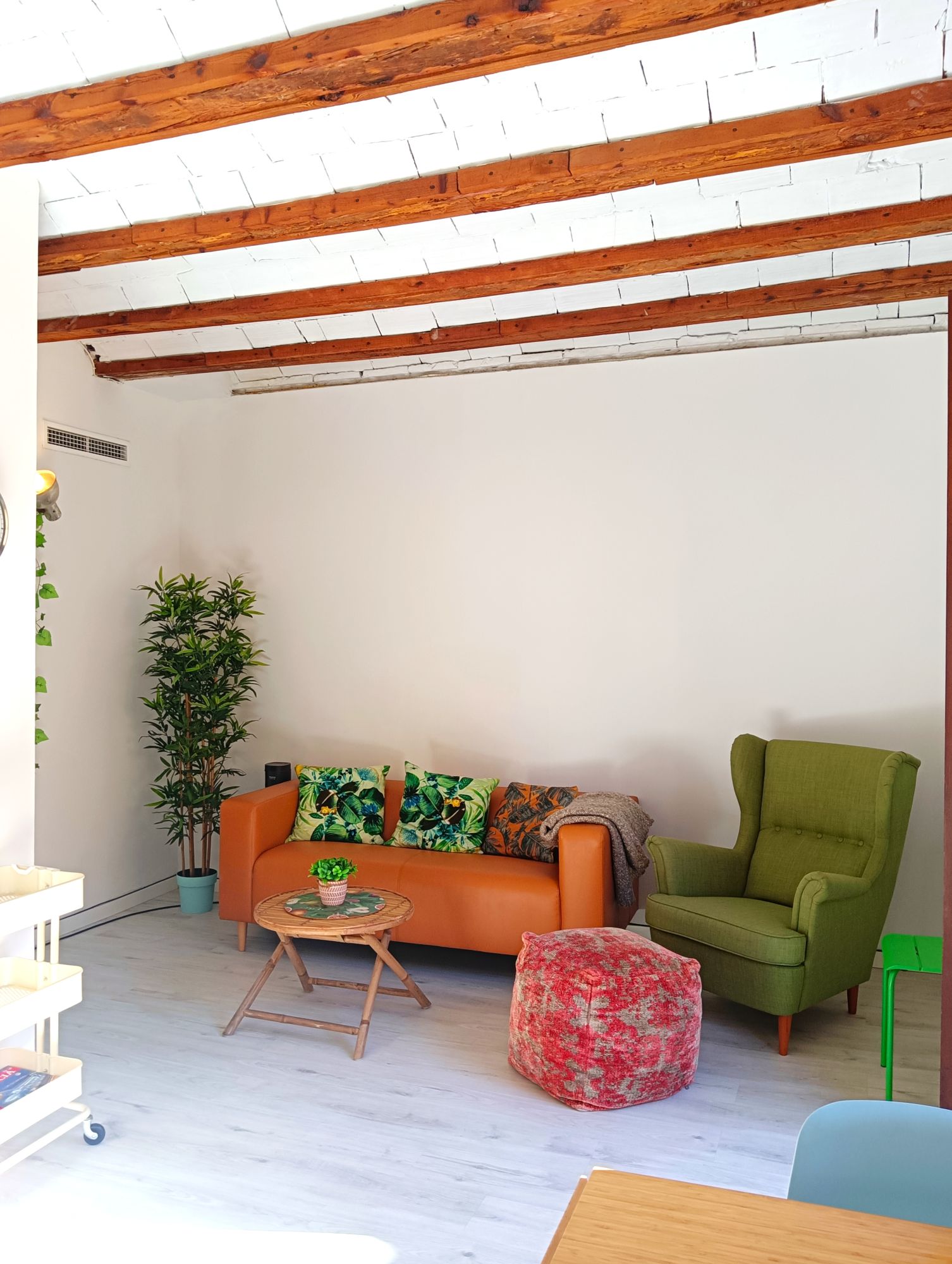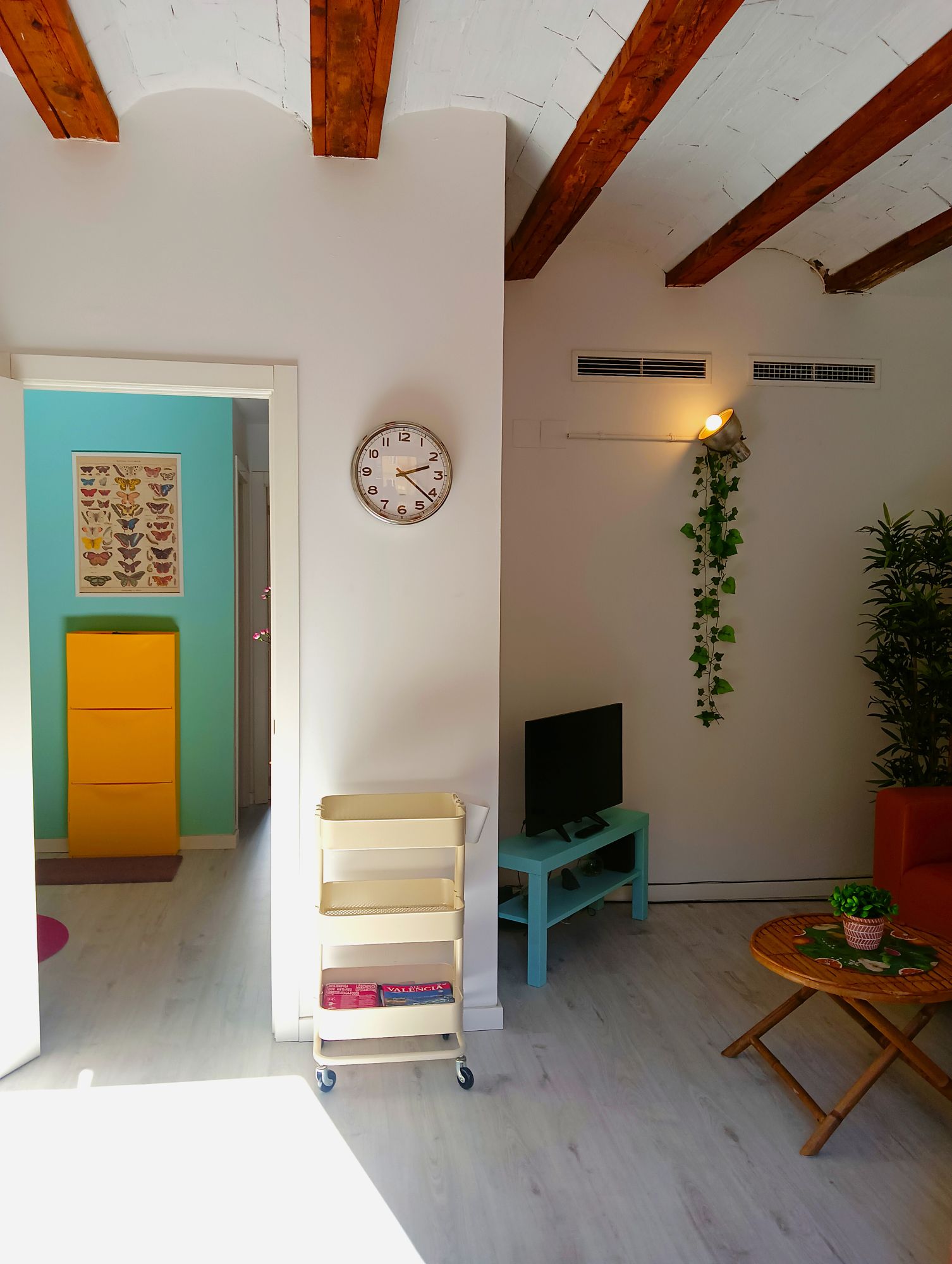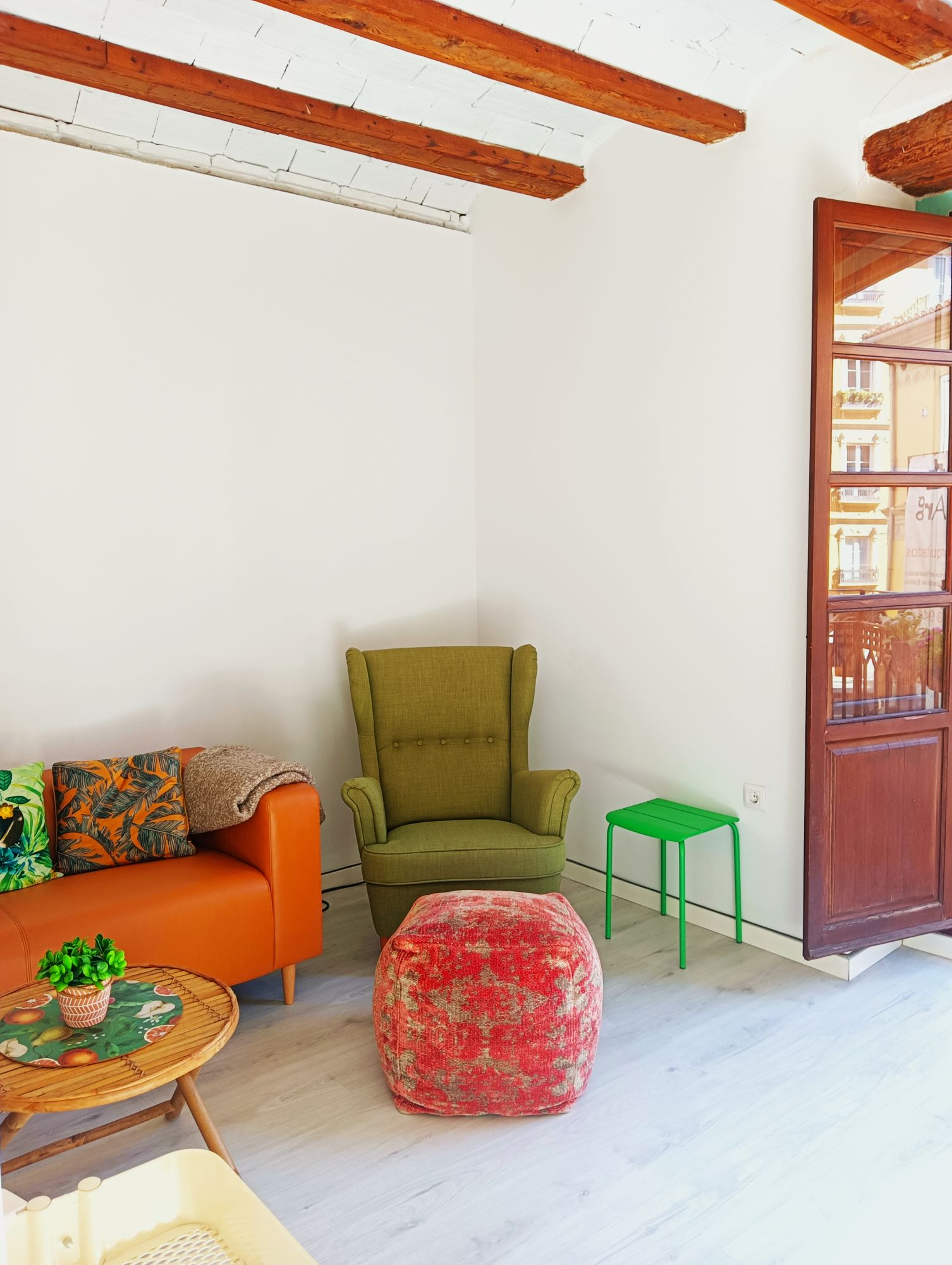 This charming and character-filled apartment on Calle Padre Jofre is ideal for professionals and digital nomads seeking a temporary home in Valencia. The property is fully furnished and well-suited for those relocating or working temporarily in the city. Located on the first floor of a typical Valencian building without an elevator, it features an authentic design with wooden ceiling beams and long windows that flood the space with natural light.