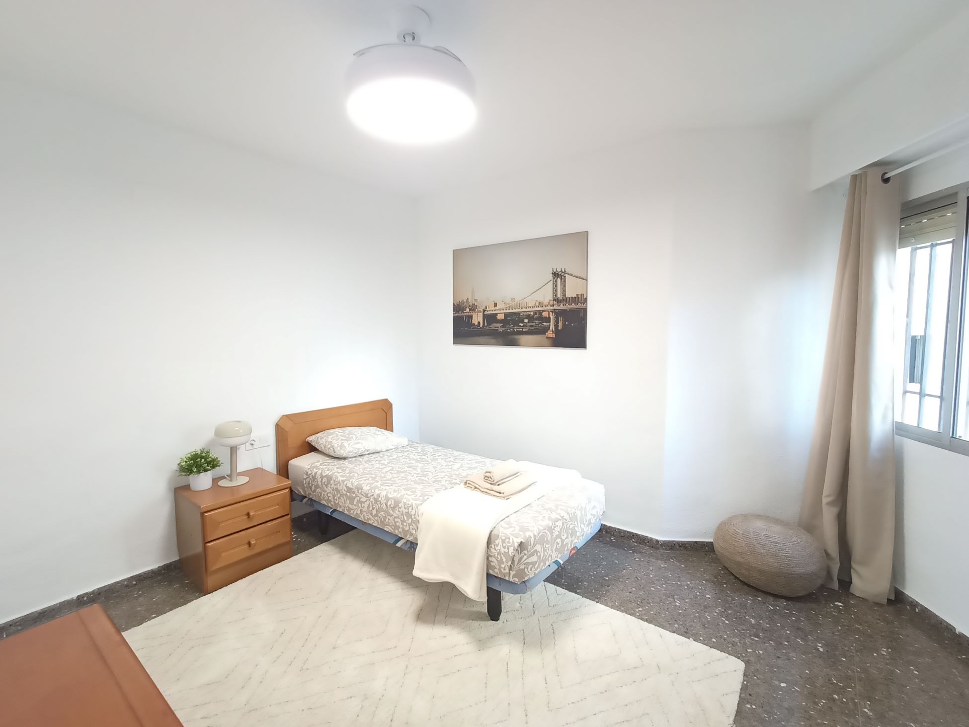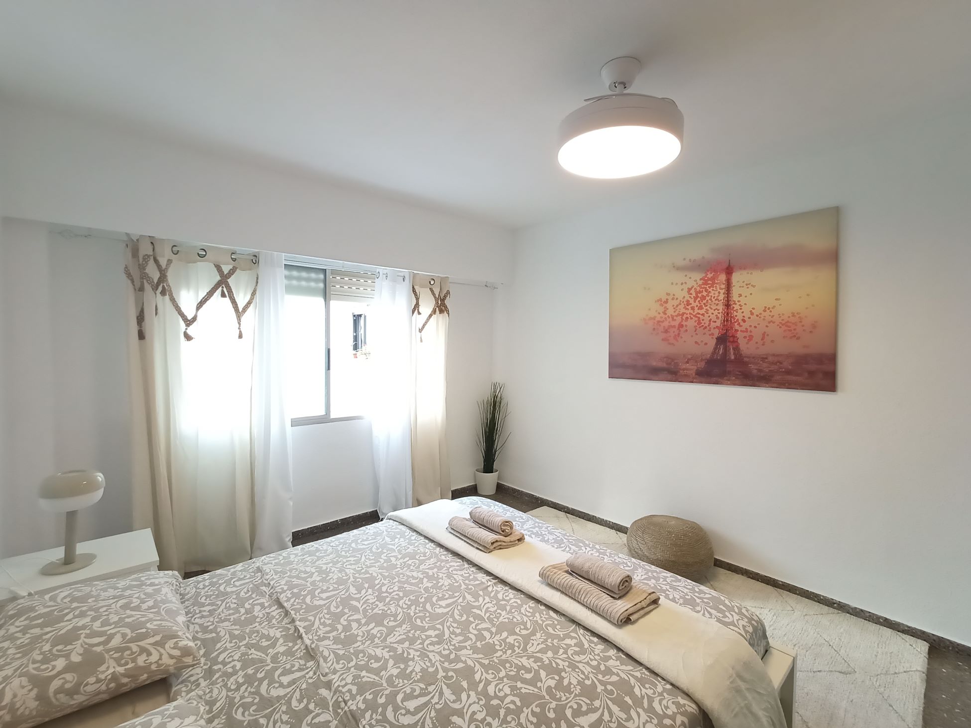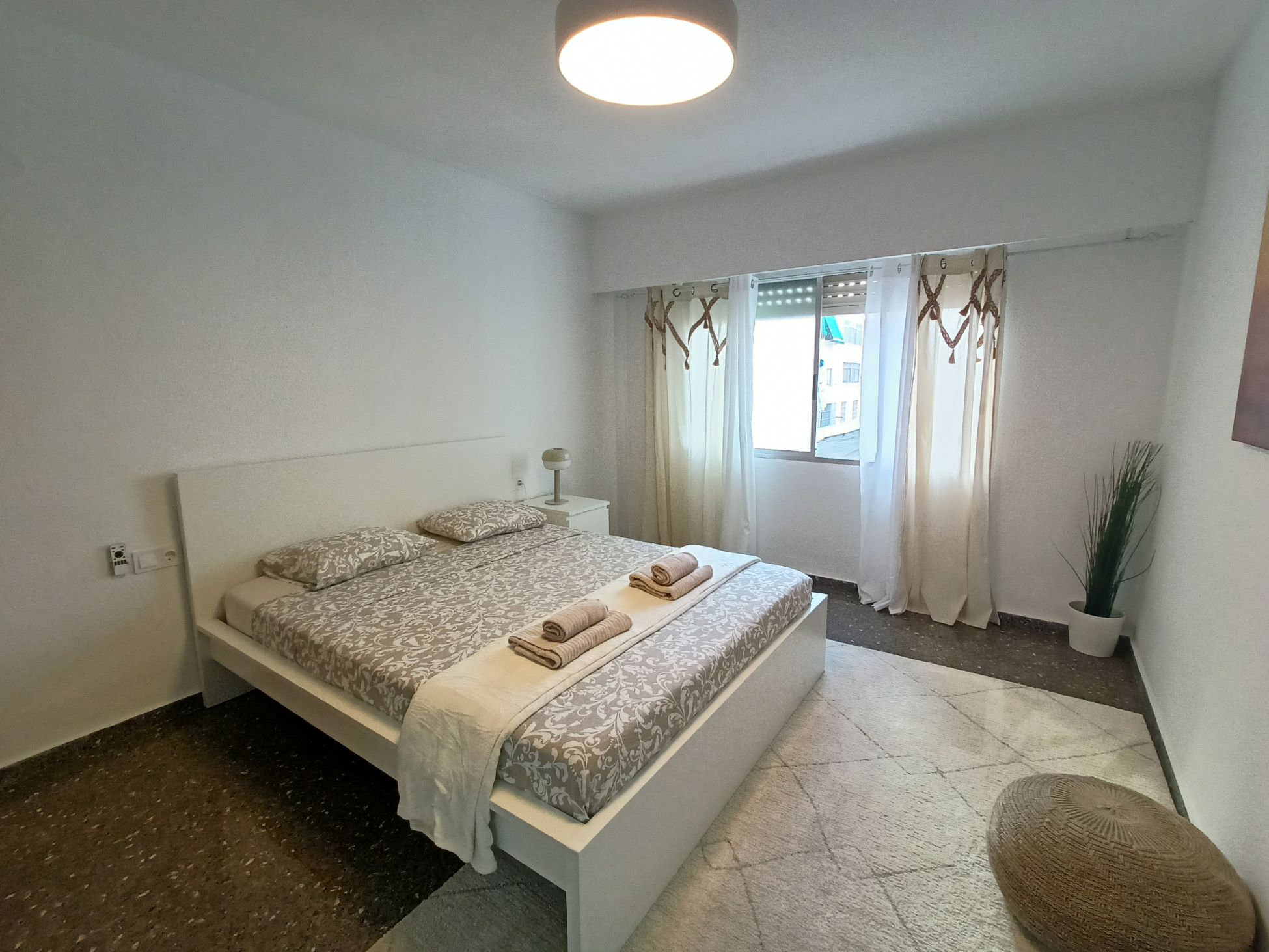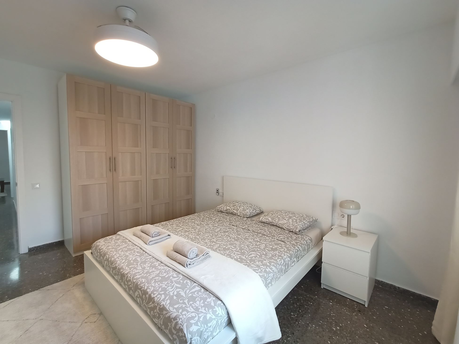 Pertegas apartment for rent in Valencia is situated in a very nice area of Valencia, close to the famous El Corte inglés in Avda de Francia, at only 9 minutes by car to the beach, 15 minutes to the Plaza del Ayuntamiento and city center. This apartment has a master bedroom with a double bed and 2 individual bedrooms for 1 person each with a desk and chair. An office room with a desk, chair, and shelf is ready to be used. There are 2 bathrooms with bathtub and shower. The living and dining rooms are in the same open space, fully equipped with TV, Wifi, Air conditioning, one large sofa, and two individual sofas. It has a wonderful terrace balcony with a table and two chairs to enjoy the incredible Valencia weather. The kitchen has all you might need during your stay: microwave, oven, coffee machine, as well as appliances necessary to prepare your daily meals.
