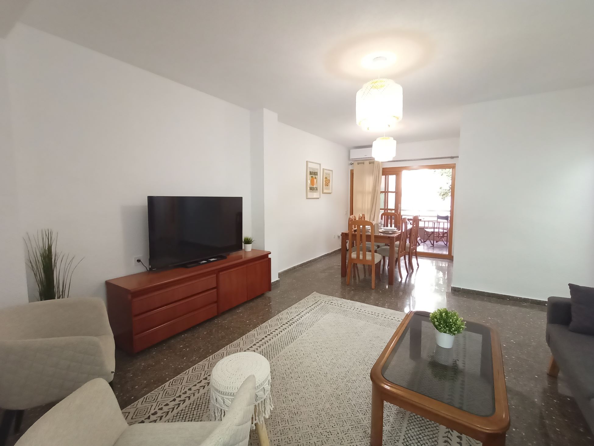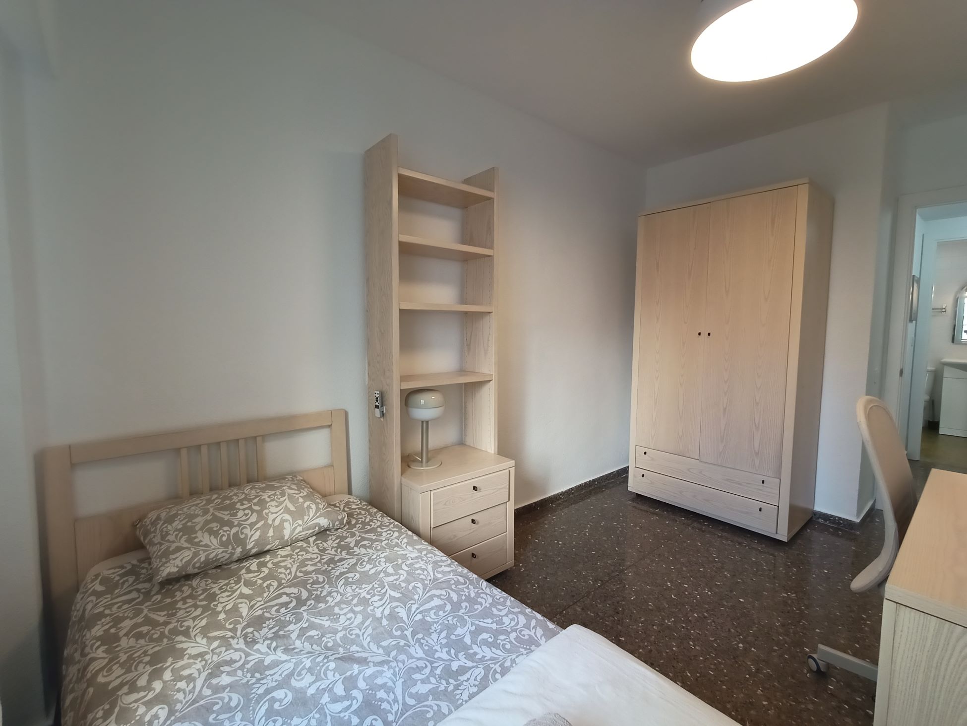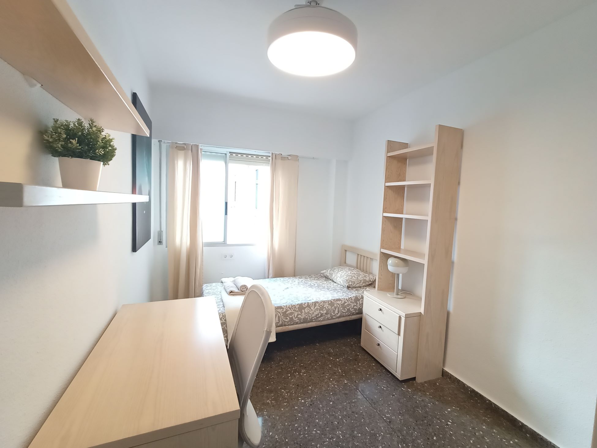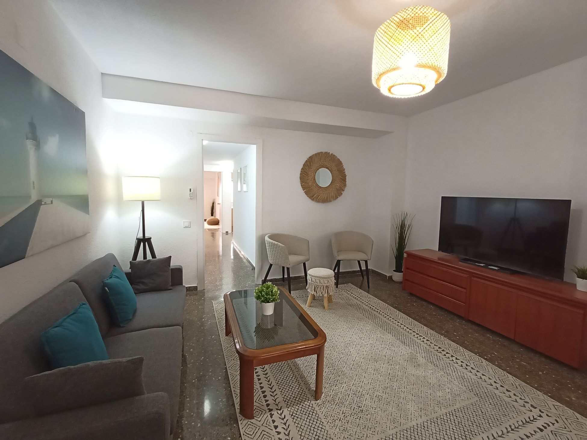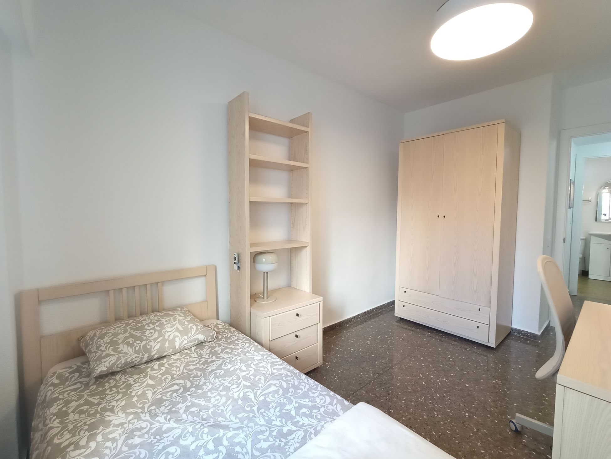 Pertegas apartment for rent in Valencia is situated in a very nice area of Valencia, close to the famous El Corte inglés in Avda de Francia, at only 9 minutes by car to the beach, 15 minutes to the Plaza del Ayuntamiento and city center. This apartment has a master bedroom with a double bed and 2 individual bedrooms for 1 person each with a desk and chair. An office room with a desk, chair, and shelf is ready to be used. There are 2 bathrooms with bathtub and shower. The living and dining rooms are in the same open space, fully equipped with TV, Wifi, Air conditioning, one large sofa, and two individual sofas. It has a wonderful terrace balcony with a table and two chairs to enjoy the incredible Valencia weather. The kitchen has all you might need during your stay: microwave, oven, coffee machine, as well as appliances necessary to prepare your daily meals.