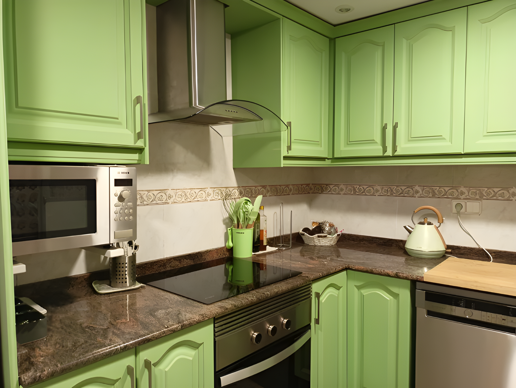 - Fully equipped kitchen with oven, dishwasher, microwave, and kettle