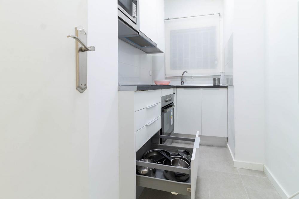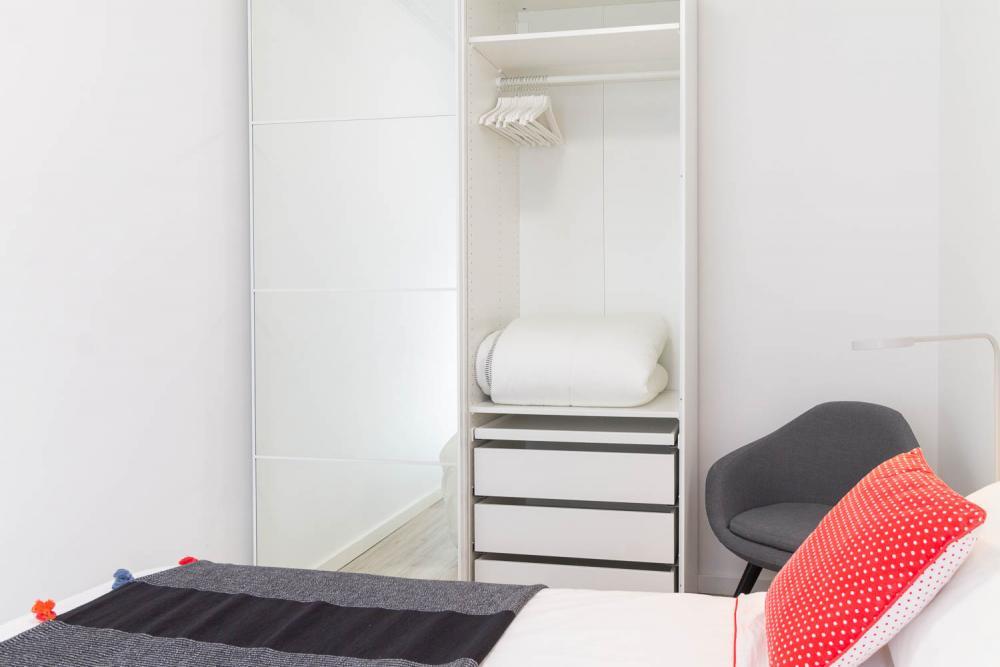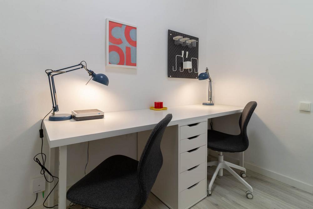Silla is a rental apartment for expats in Barcelona. This furnished flat near the Sagrada Familia has everything you could wish for in layout, amenities, and design. Whether you are looking for a short or mid-term stay, you will feel right at home in this truly enticing setting. Natural light is evenly spread throughout the room and offers a sense of freedom and space. One bedroom has a double bed, you can turn the other one into an office. The kitchen is well stocked with everything you need, but you will enjoy your freshly made morning coffee on the terrace most.