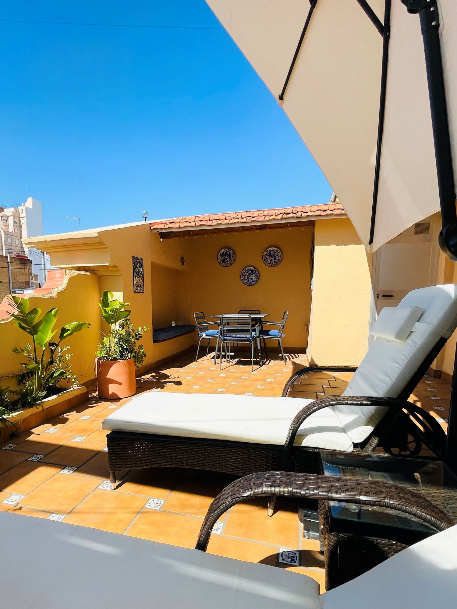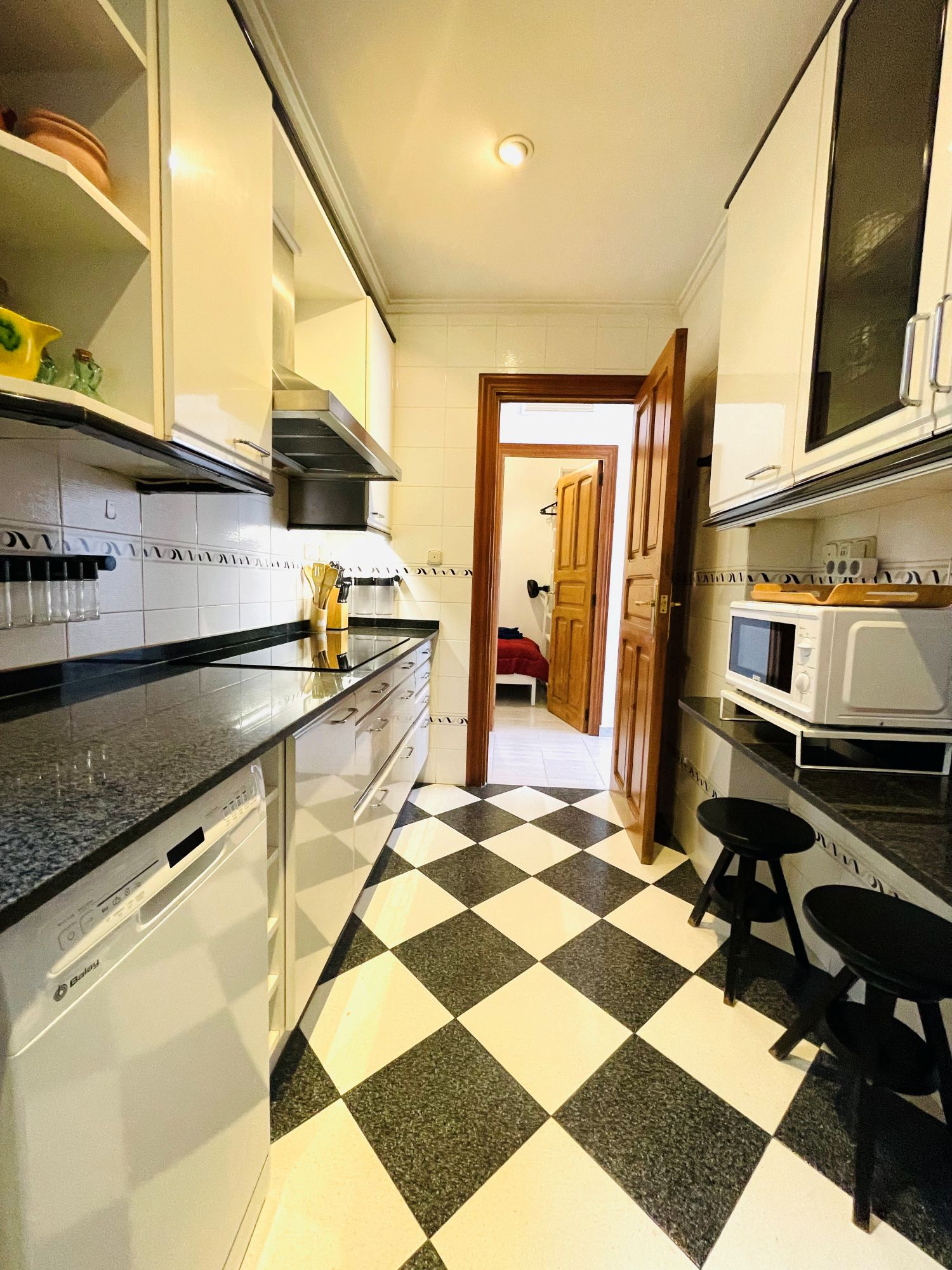 This stylish and fully furnished apartment on San Valero is an excellent choice for expats, business professionals, and digital nomads looking for temporary housing in Valencia. Designed for comfort and flexibility, this 90m² apartment offers a modern living space with a private terrace, perfect for enjoying the Mediterranean climate. Situated on the 6th floor with an elevator, the apartment provides a peaceful retreat while being well-connected to the city´s vibrant life. The apartment features two bedrooms, one with a double bed and the other with a single bed, making it ideal for individuals or professionals in need of comfortable accommodation. The bathroom comes with a bathtub, and the kitchen is fully equipped with modern appliances, including a washing machine, dishwasher, oven, and microwave. The main bedroom is air-conditioned, ensuring a comfortable stay. Additional amenities include WiFi, TV, heating, and an iron. The spacious private terrace is a highlight, providing a relaxing outdoor space with great city views.