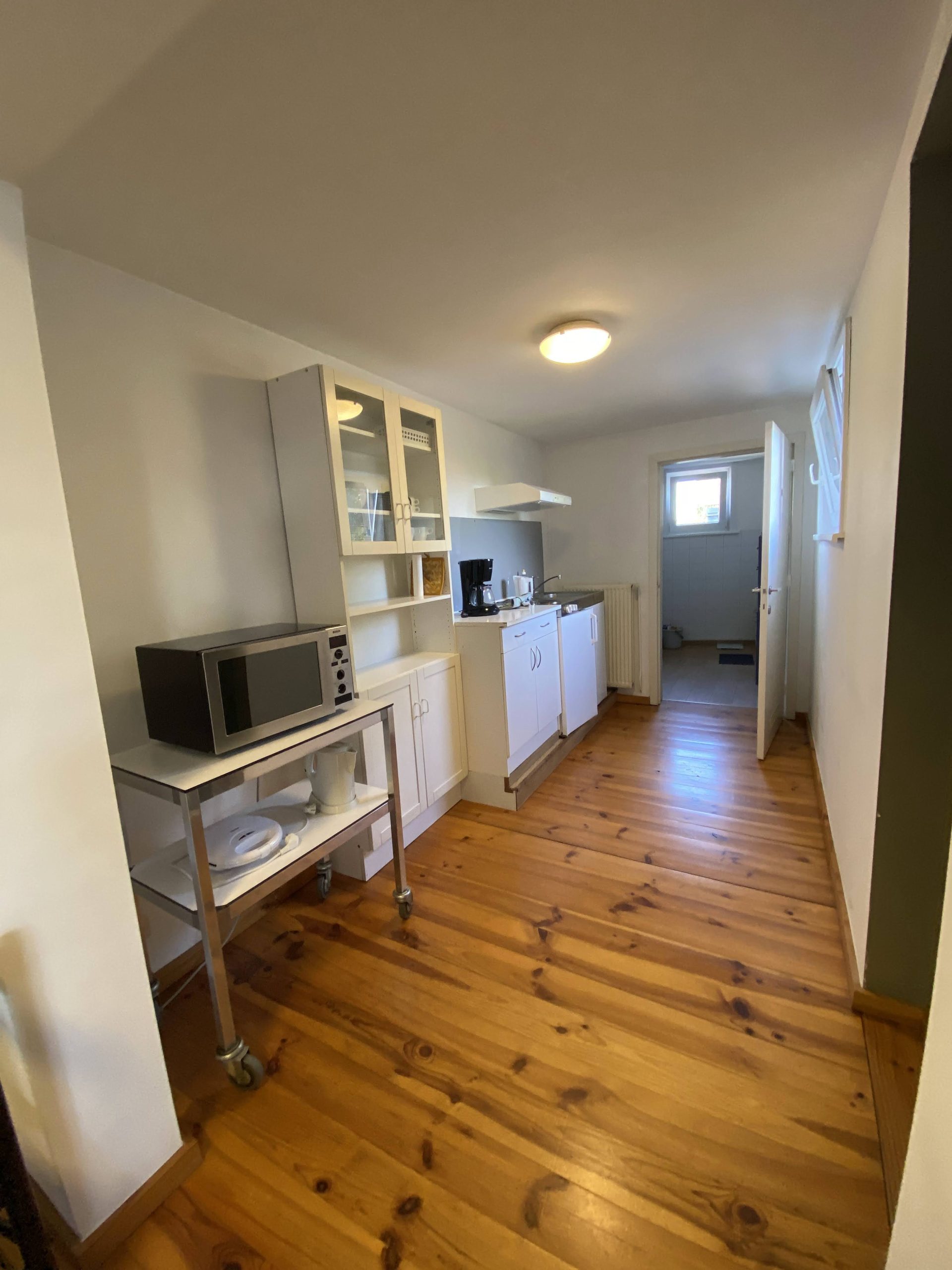 The kitchen is small but has everything you may need during your stay here. Time to get cooking! Afterwards you can eat your meals at the dining table that can seat up to 4 people.