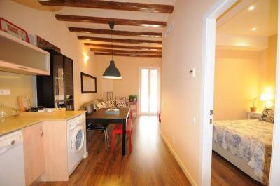 Your new home in Barcelona is beautifully furnished, nicely renovated, and has a high comfort level. Everywhere in the house, well-placed decorative elements make it a welcoming home for your stay in your Barcelona home. Our favourite? The traditional well-preserved wooden beams on the ceiling. You will certainly enjoy the layout of the apartment.