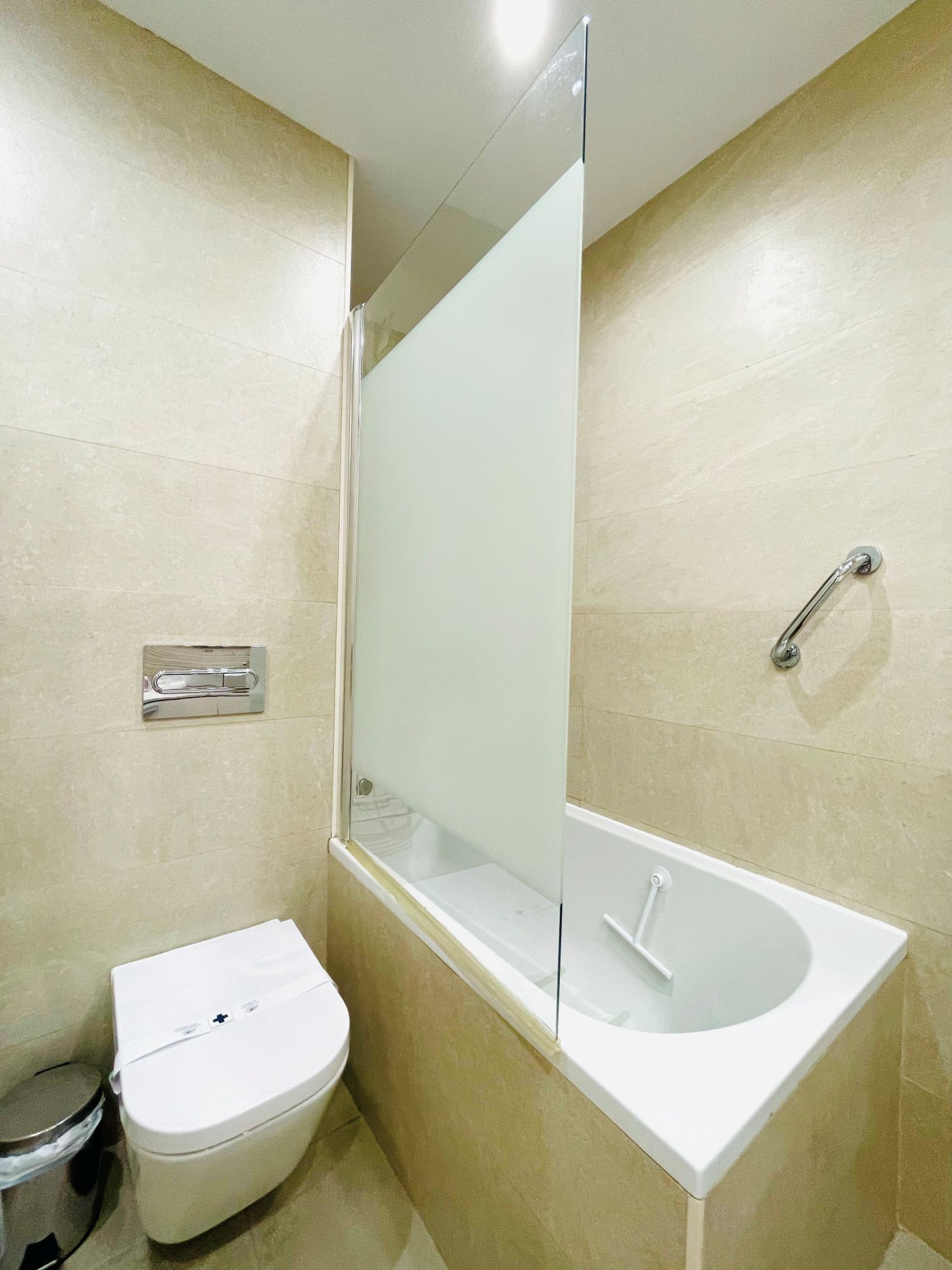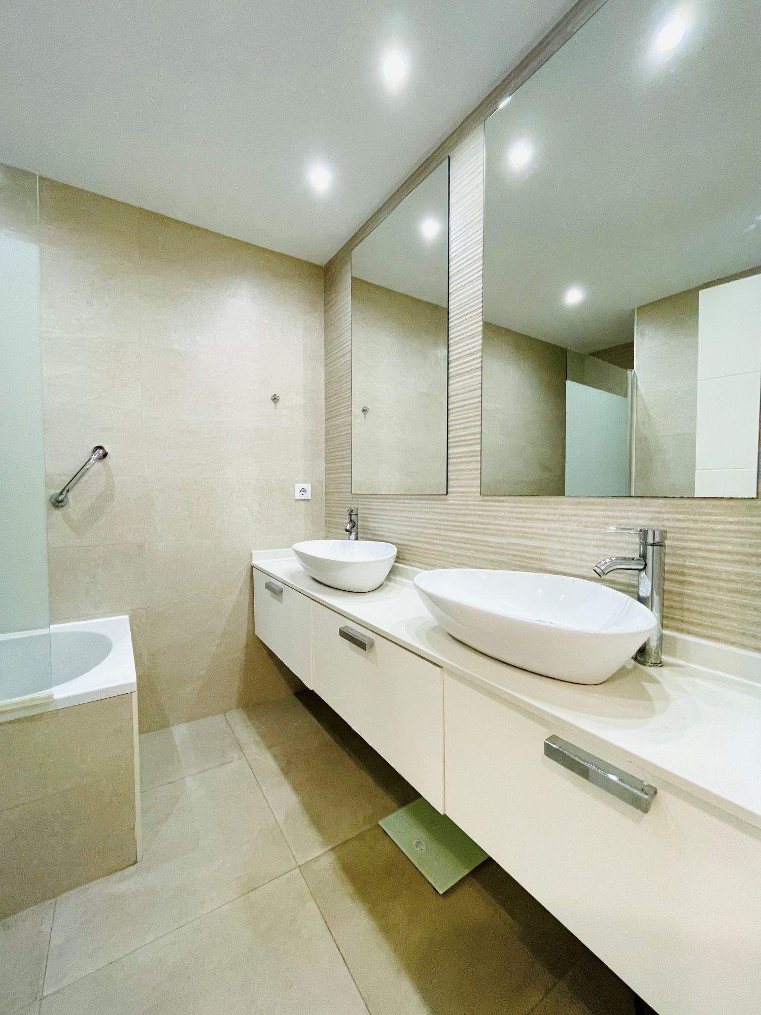 The kitchen is huge. You will have a lot of counter space to prepare some amazing meals. The kitchen is large enough to involve multiple people in the cooking process. The kitchen comes completely equipped with all appliances and kitchenware. The master bedroom is spacious and comes with a double bed. You will find ample wardrobe space. Next to the master bedroom, you will have a guest bedroom that has a bed sofa that can be turned in to a smaller double bed. This room also doubles as the office with a stunning view of the city. The third bedroom comes with a double bed as well.