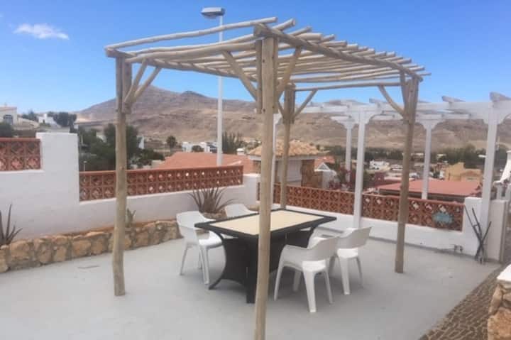 This villa is located in Tuineje. Tuineje is a Canarian municipality in the province of Las Palmas (Spain). It is located in the southeast of the island of Fuerteventura. You have everything that you may need nearby. There are shops, supermarkets, bars. In other words is this the perfect location for remote workers to explore the island and get around town.