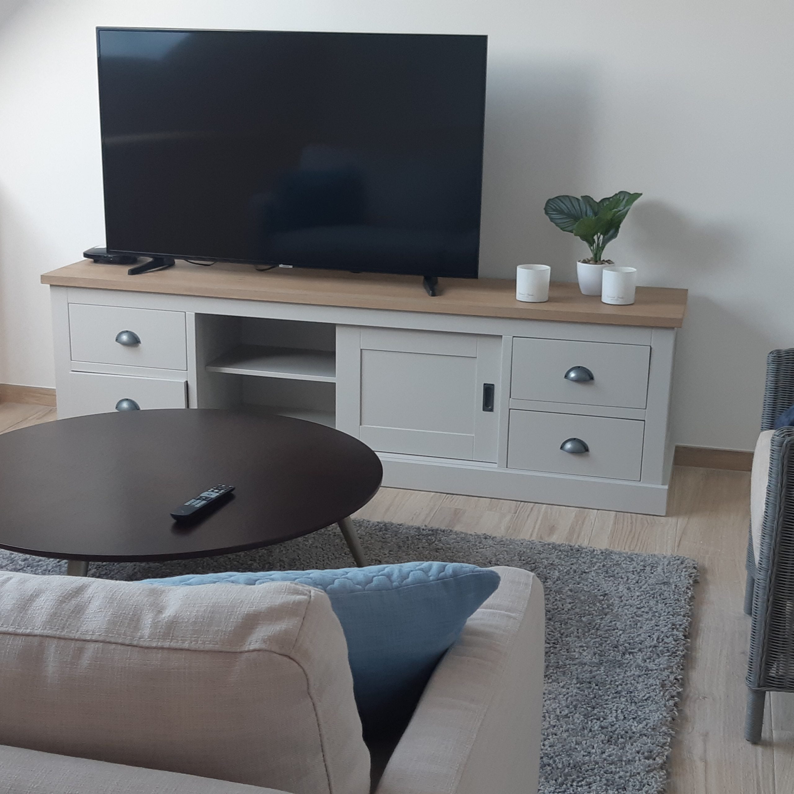 - Duplex style: upstairs is the living area: sofa´s and TV