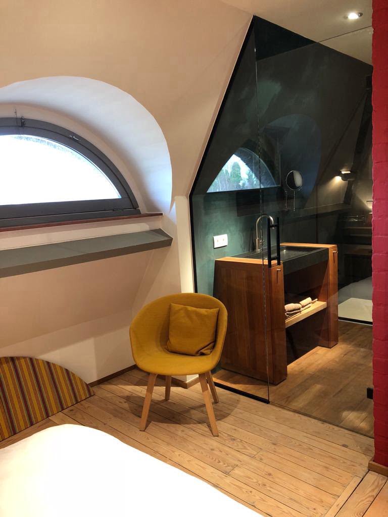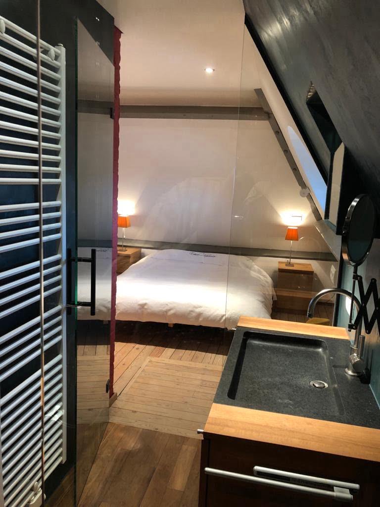 Georges Torla es un apartamento de lujo para expatriados en Gante. Tiene un dormitorio principal con cama doble. El dormitorio tiene un baño privado, un baño de diseño. El baño tiene un lavabo y una ducha a ras de suelo.